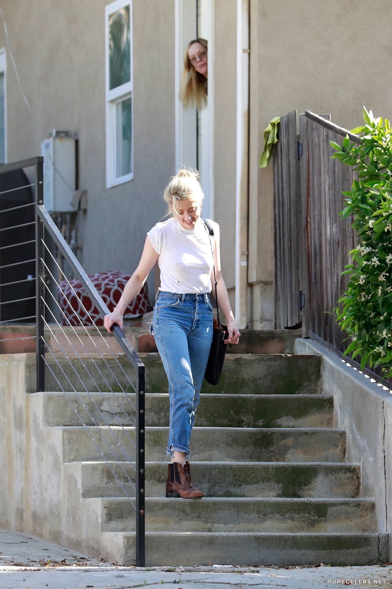 Now, going for a walk without wearing a bra, is a popular trend of many celebrities. The popular actress Amber Heard also decided to keep up with the trends and went for a walk braless. Beautiful juicy boobs of the actress with hard nipples were very clearly visible through the translucent white blouse that she wore. It’s impossible to resist this hot blonde!