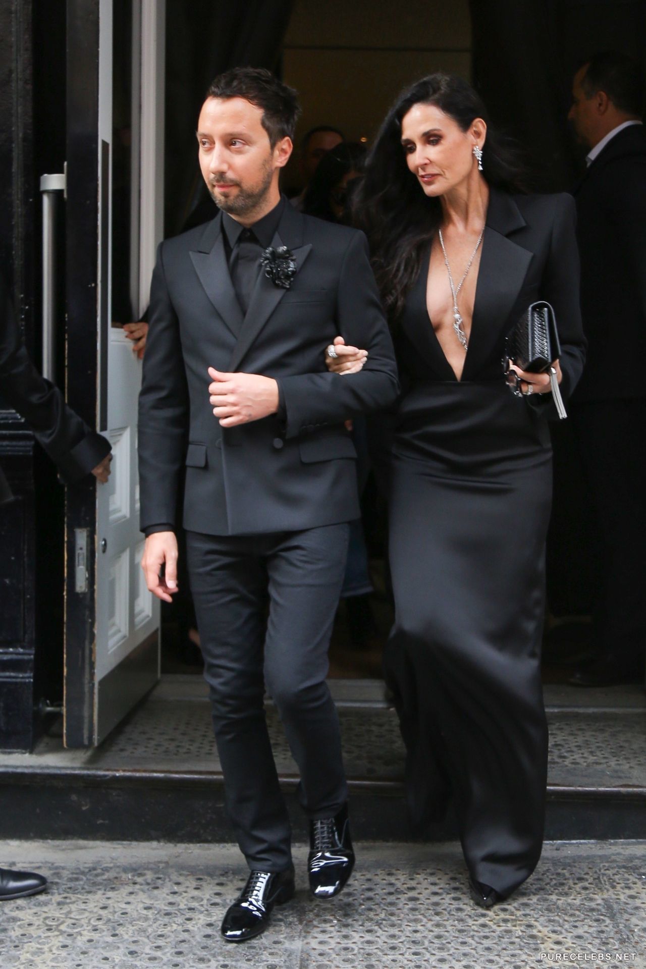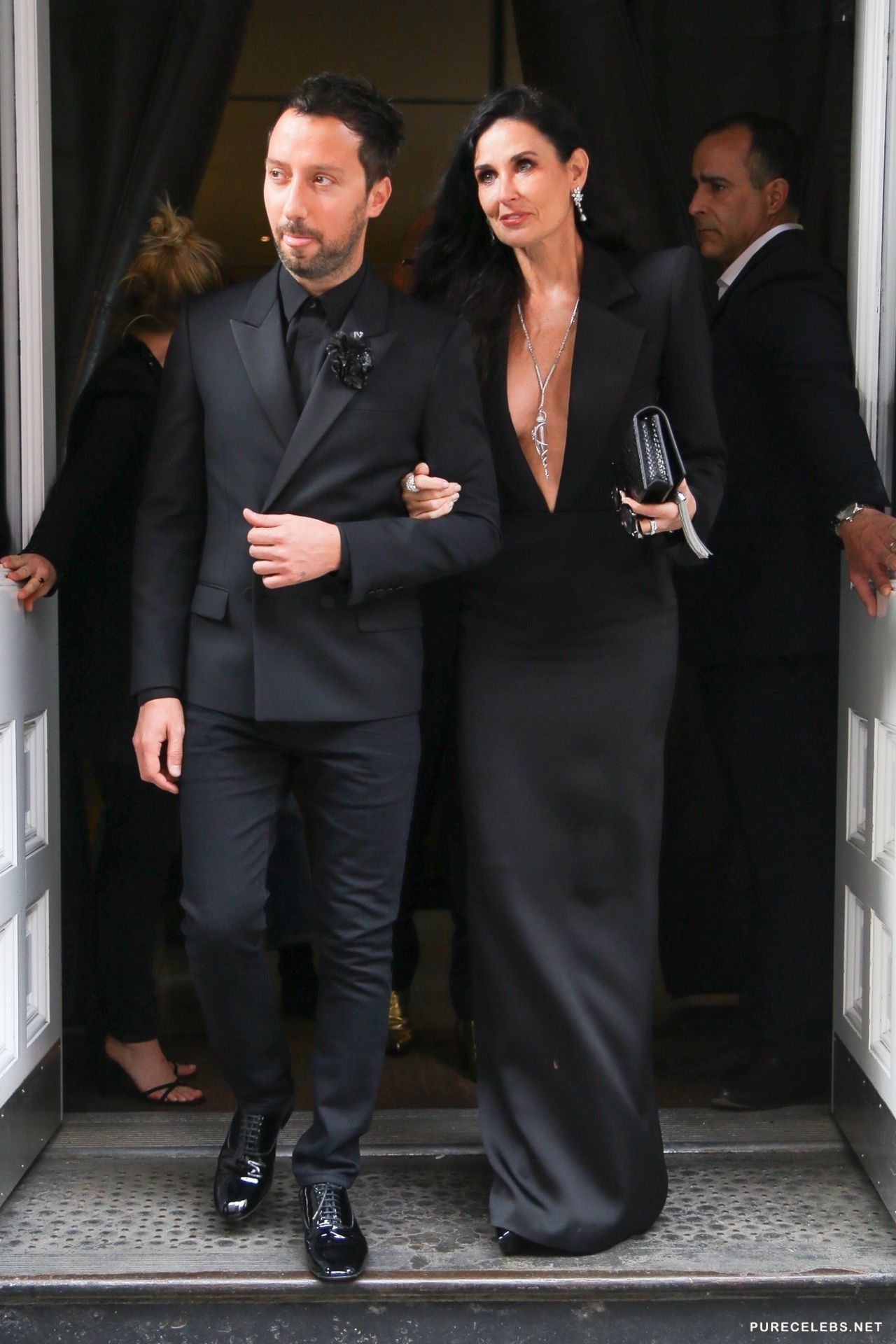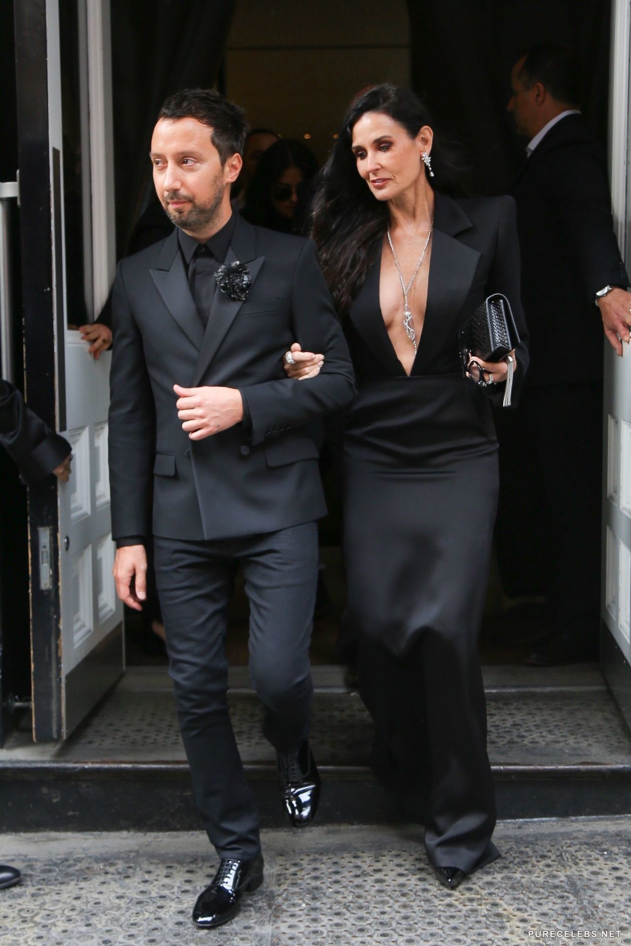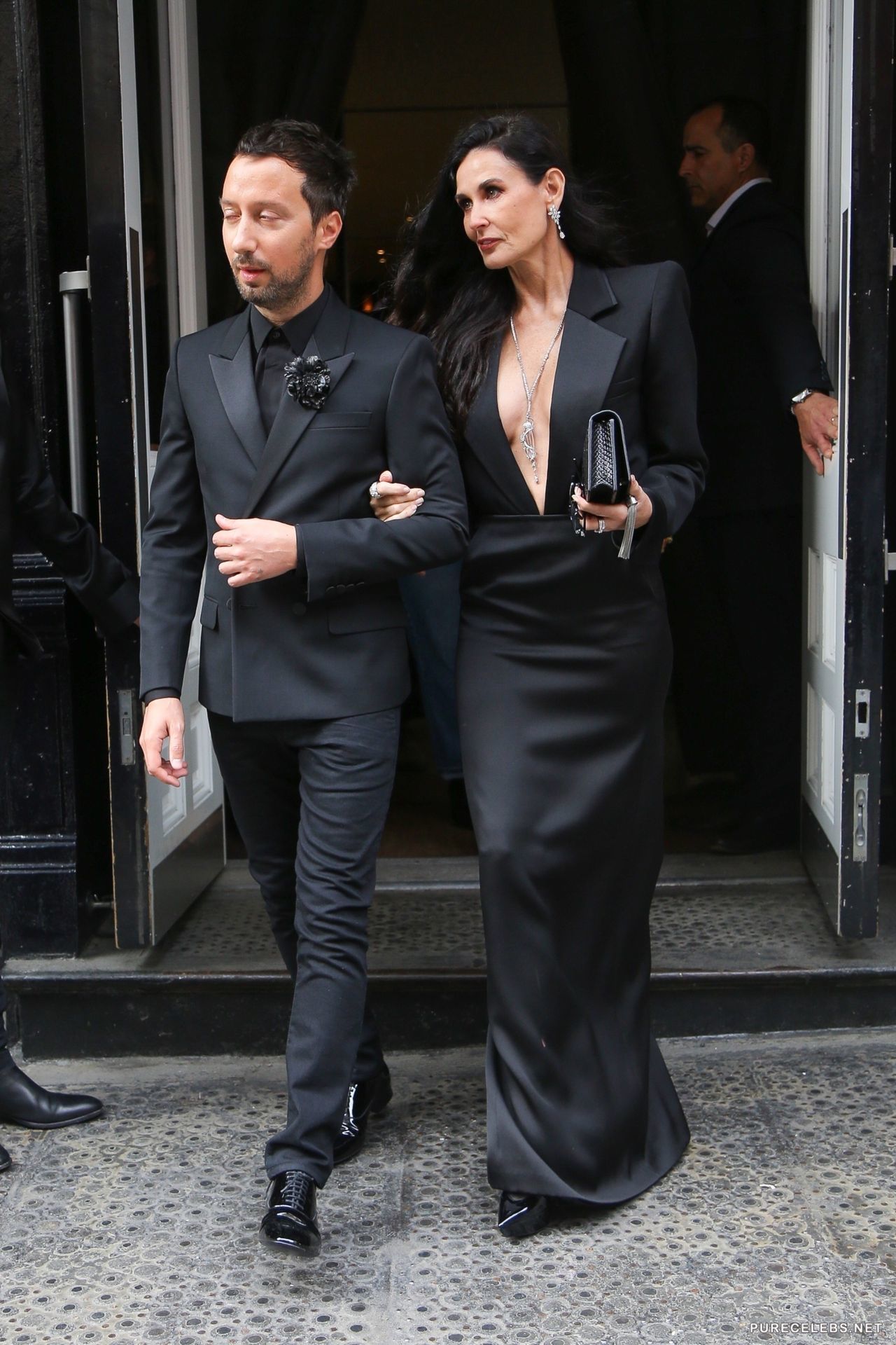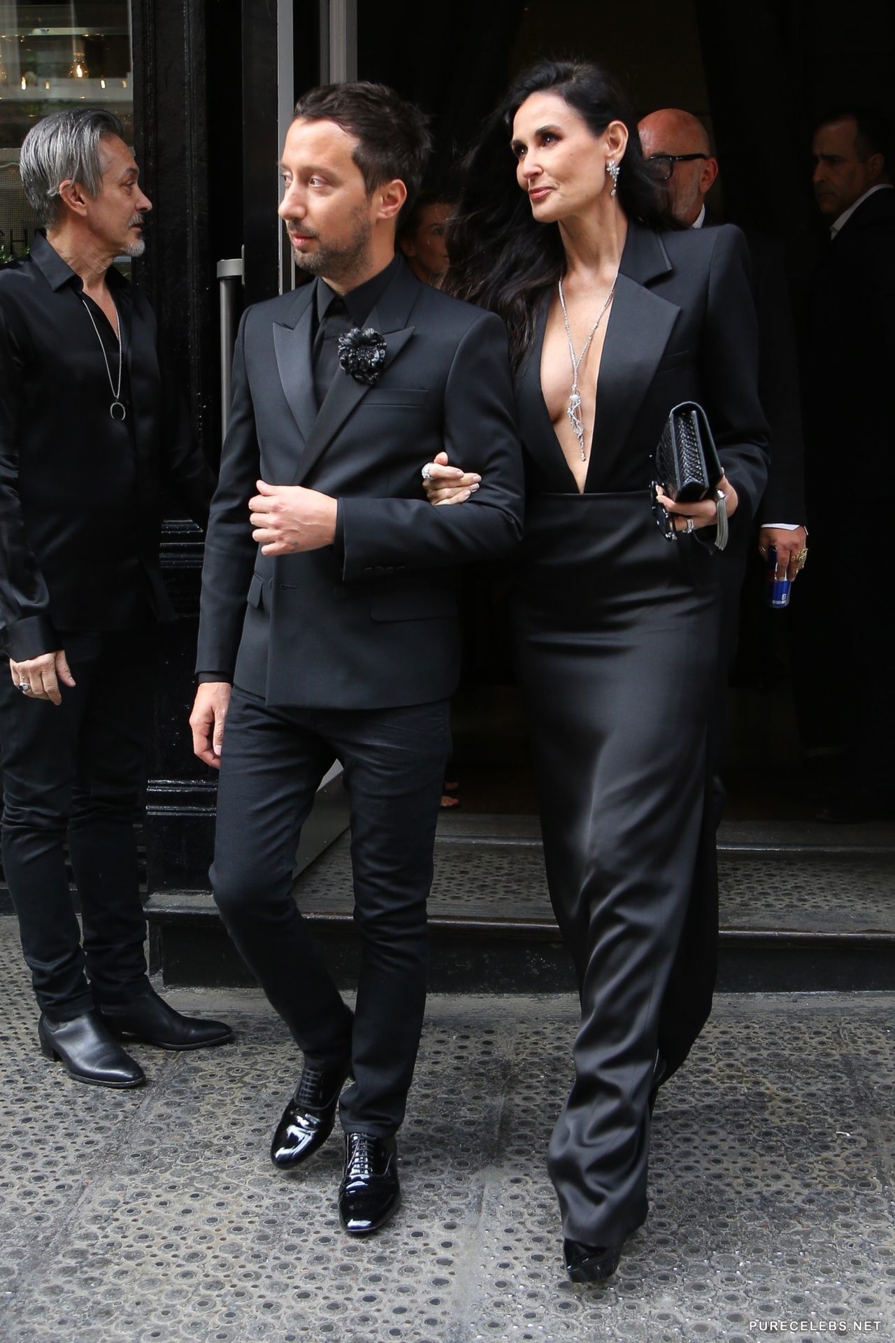 Stunning American actress Demi Moore never ceases to amaze on her beauty and also remains a model of elegance and style. Recently, she was caught by paparazzi in a tight-fitting black suit that beautifully emphasized her slim body. Her jacket had a very deep cleavage that showed the sides of her amazing boobs, and the pendant that she hung on her neck drew even more attention to her breasts.