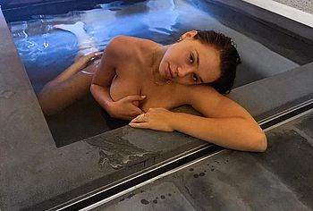 Hot sexy model Alexis Ren decided to please her subscribers with very provocative photos of how she takes a bath. Internet celebrity posed completely naked with wet flowing hair and defiantly looking into the camera. It looked very seductive when she covered her naked sweet boobs with her hand. This girl really knows how to attract the attention of the public.