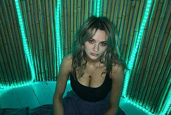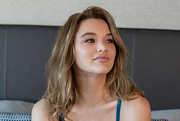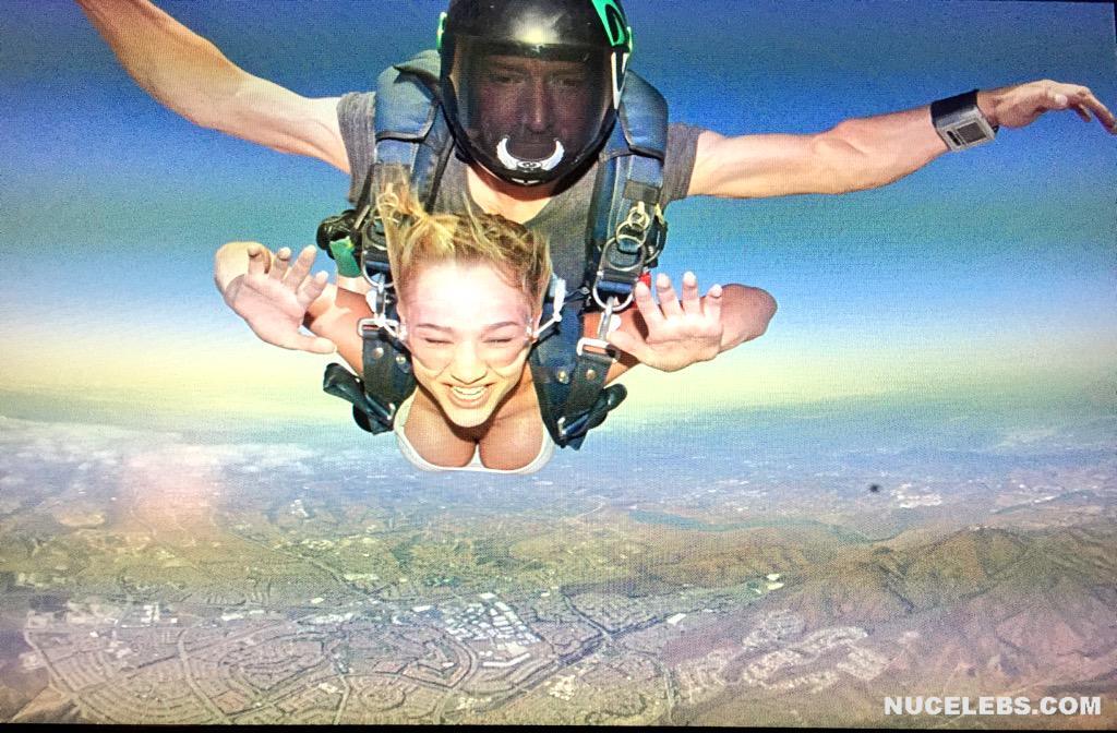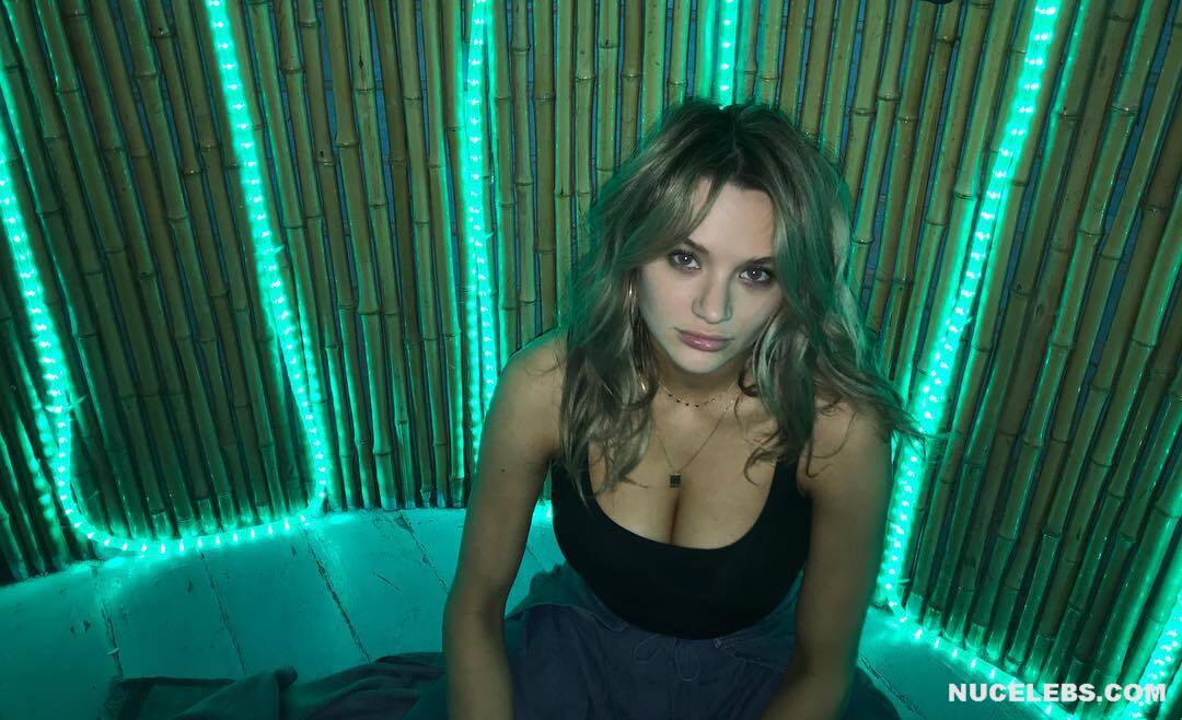 Hunter King is in no hurry to flaunt her nude tits, although in some of the pictures she seems to be ready to do so. For example, check out the photo in which this blonde poses in an unbuttoned blue shirt. Oh, Hunter King was braless and the sides of her nude boobs peeked seductively out of the blue fabric. And here is another photo in which this celebrity poses topless and in blue jeans. Also, this actress often showed off her awesome bust in films. You will definitely drool looking at her tits in a blue lace bra during the scene on the bed.