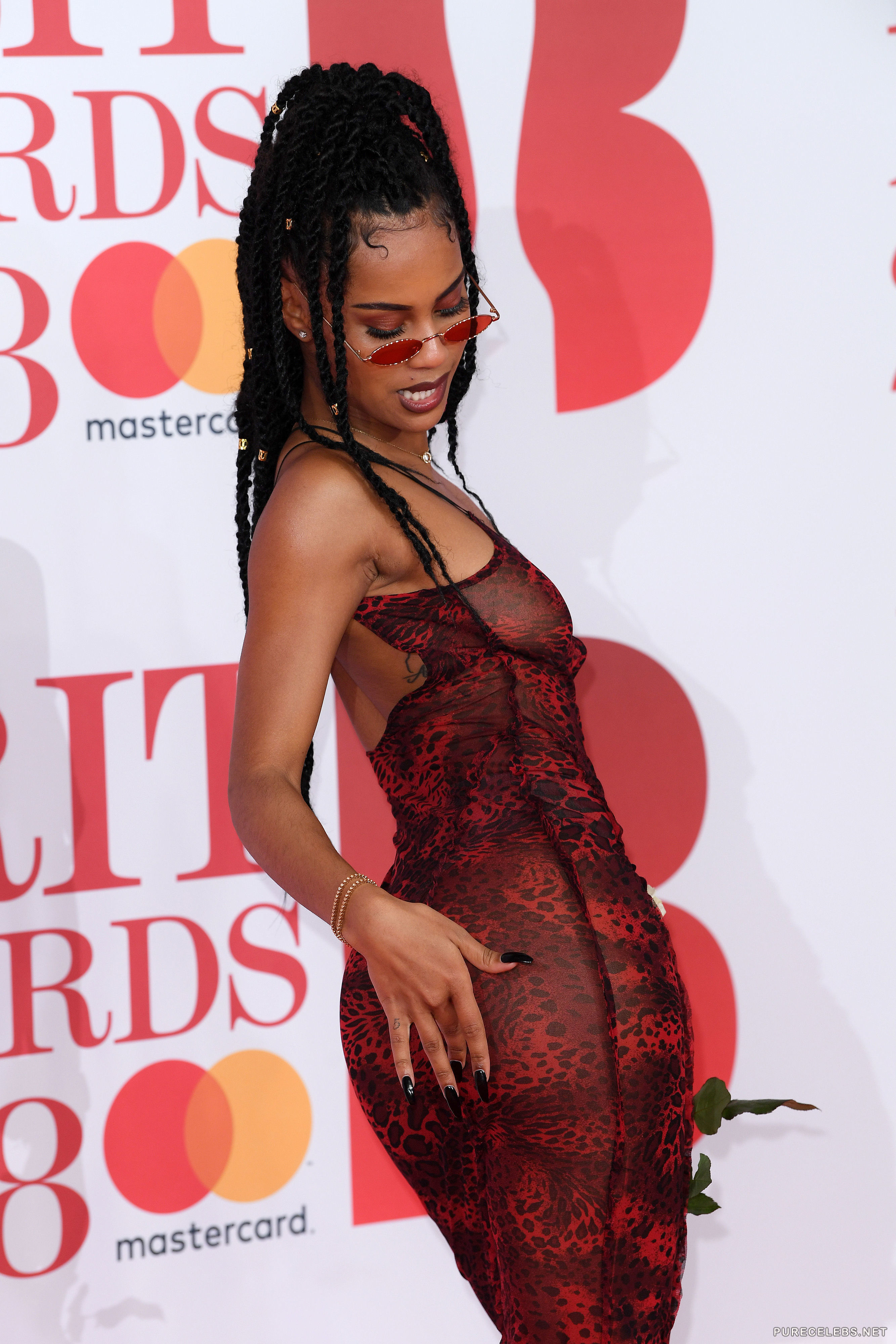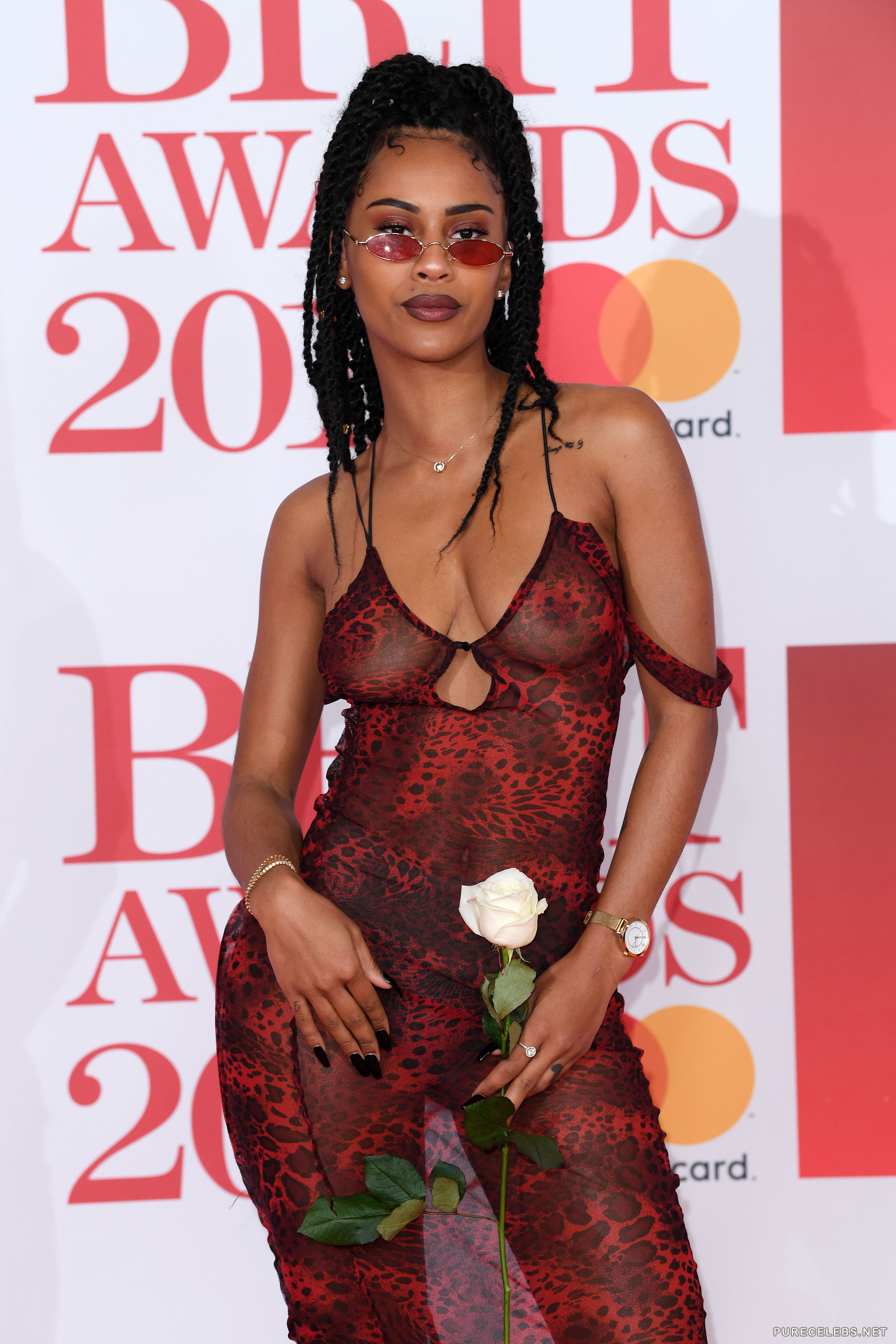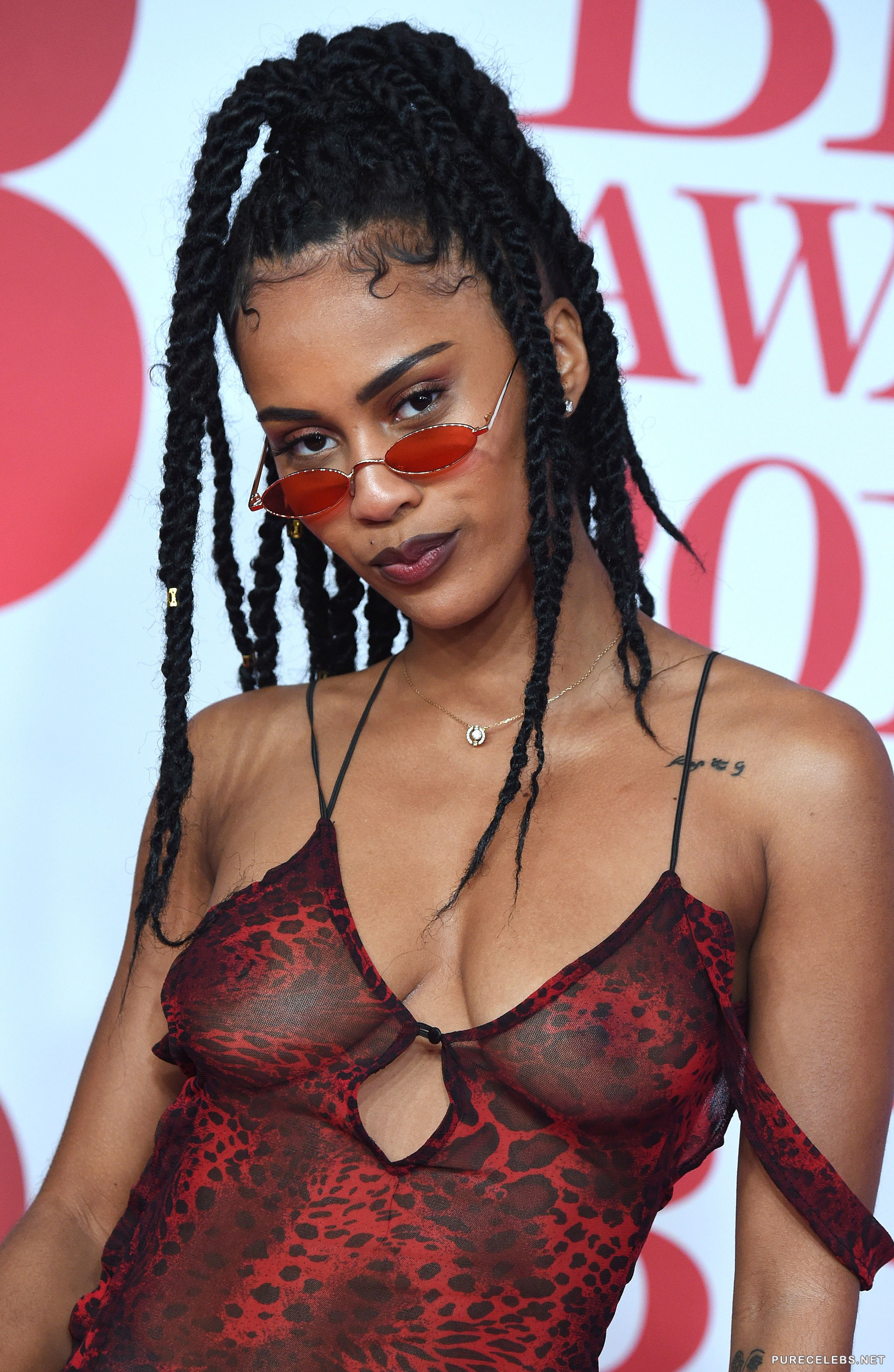 Controversial rap singer IAMDDB attended the 2018 Brit awards and she remained true to her slutty reputation by wearing a completely sheer black and red dress, with her boobs hanging out for everyone to see. The celebrity started her night by posting selfies of herself with bottles of champagne, and displaying her plump naked booty. Later photographers greeted her on the red carpet and were more than happy to give her the attention she craves.