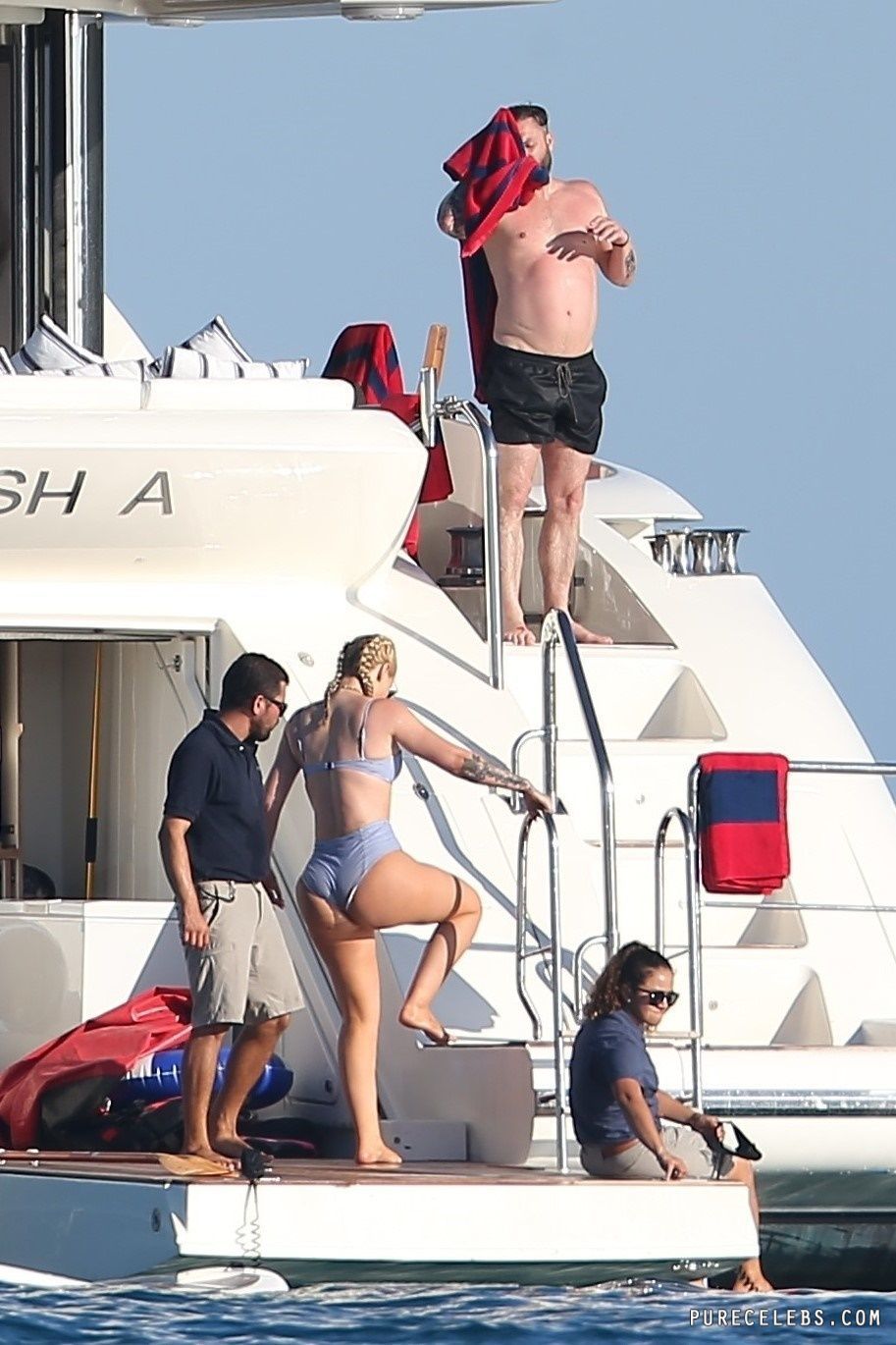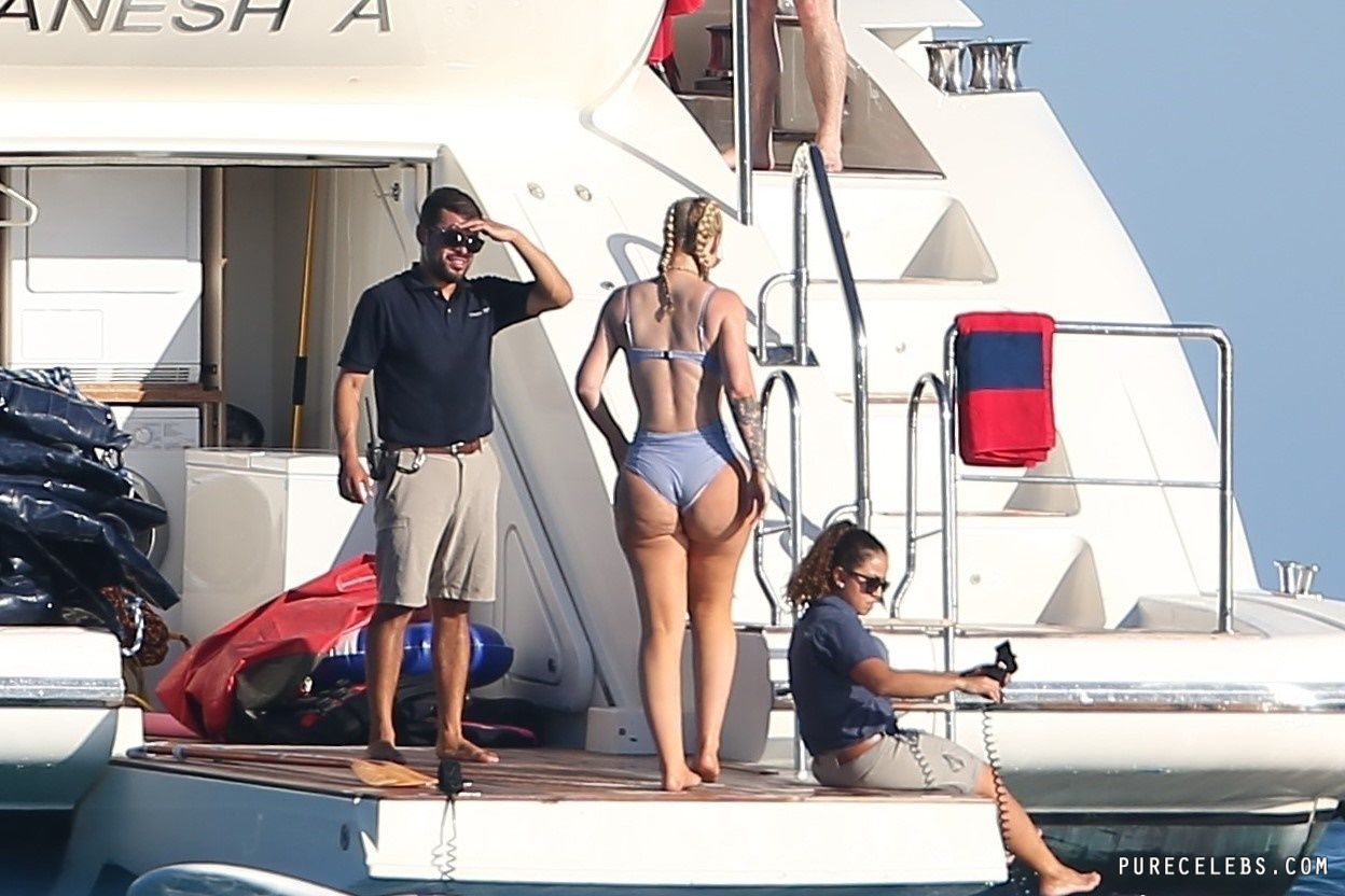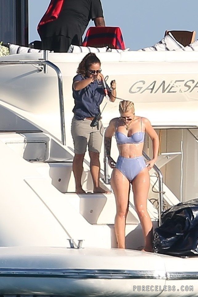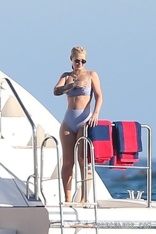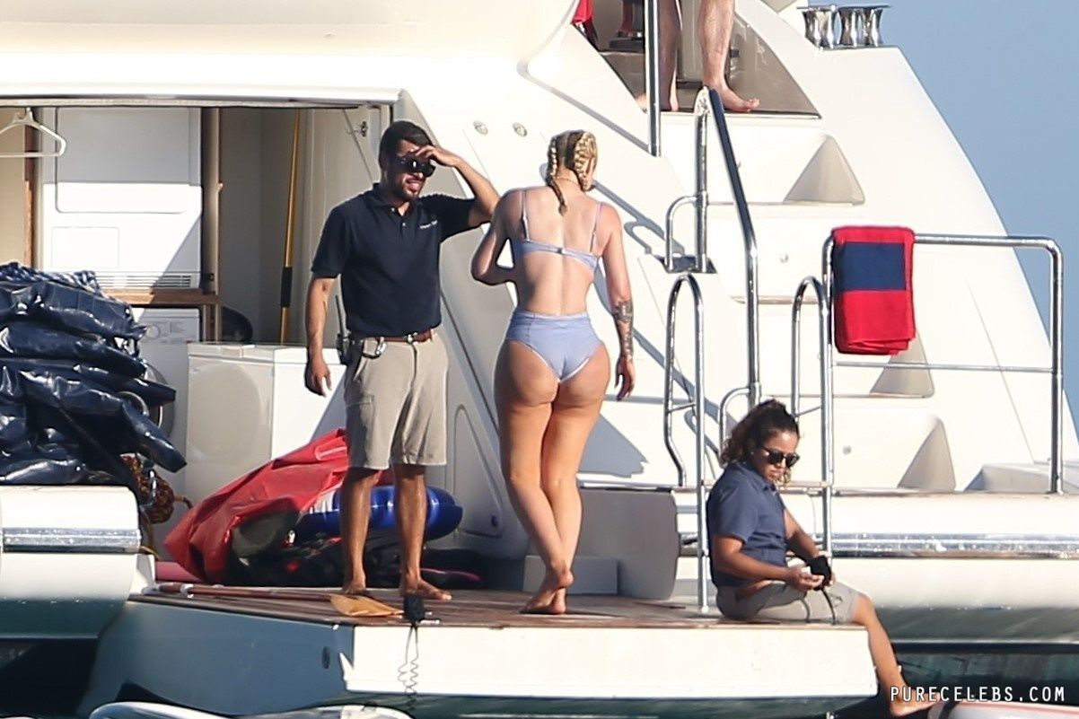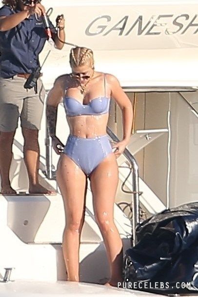 Paparazzi dream of catching Australian-American rapper Iggy Azalea nude, but so far they managed to take her pictures in a bikini. The girl had a great time relaxing on a yacht. The celebrity was wearing a blue bikini that perfectly emphasized her figure. Her awesome breasts looked very sexy in a blue bra. And her butt in wet tight panties was so chic and chubby! I wouldn’t mind spanking her lush buns!