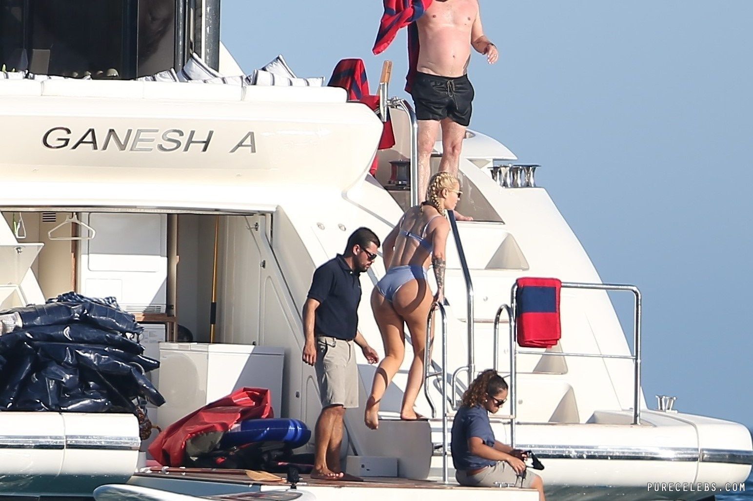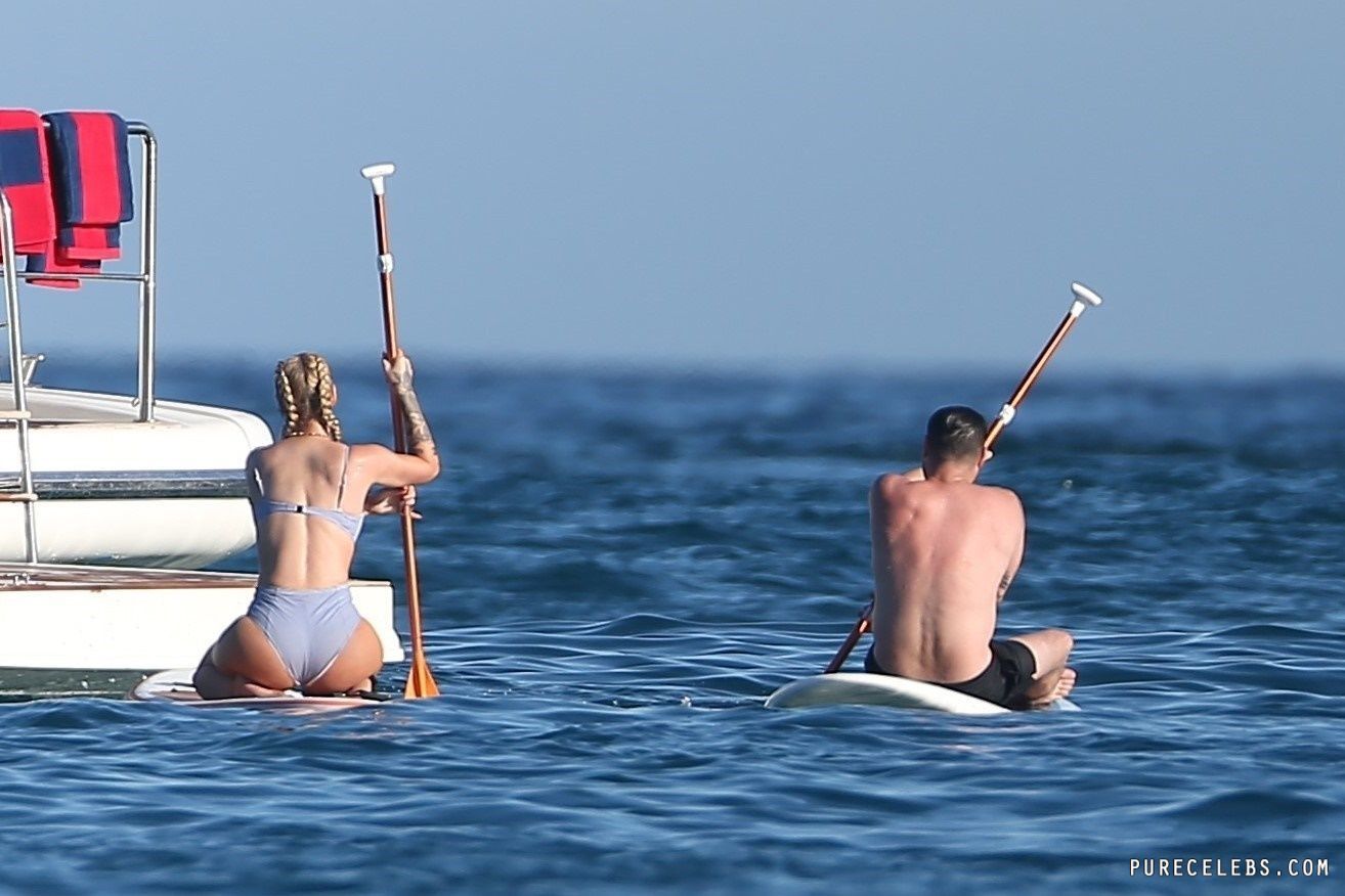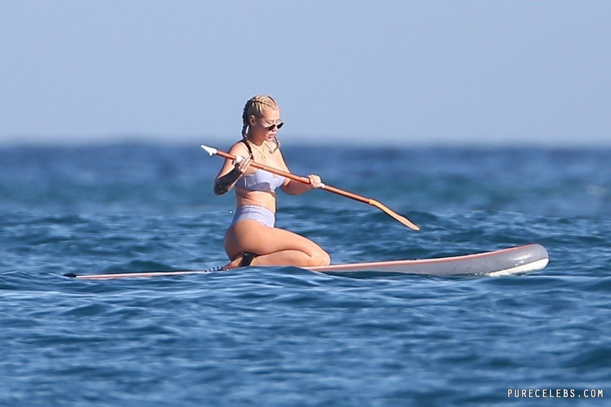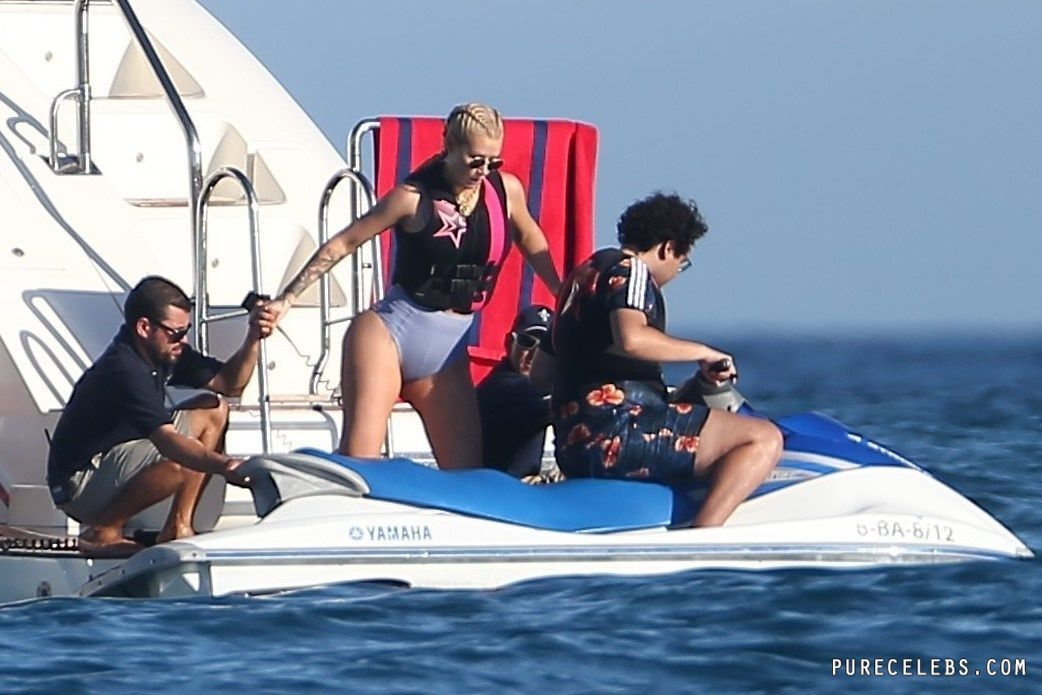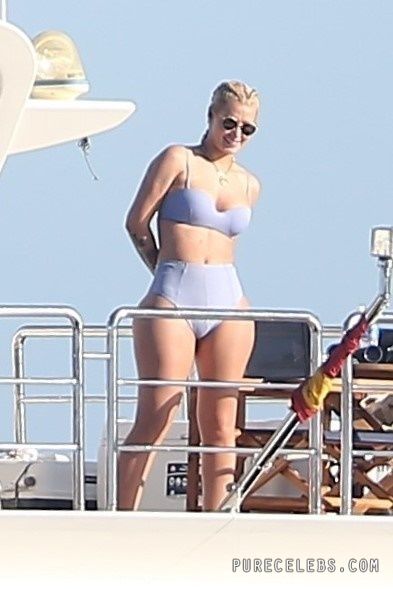 Paparazzi dream of catching Australian-American rapper Iggy Azalea nude, but so far they managed to take her pictures in a bikini. The girl had a great time relaxing on a yacht. The celebrity was wearing a blue bikini that perfectly emphasized her figure. Her awesome breasts looked very sexy in a blue bra. And her butt in wet tight panties was so chic and chubby! I wouldn’t mind spanking her lush buns!
