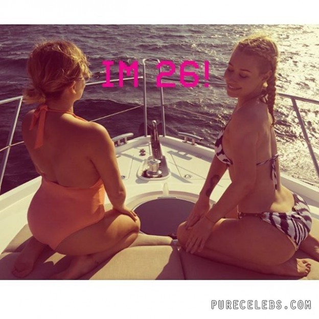 If there’s one thing Australian singer Iggy Azalea is known for, it’s her big booty. So why not make the most of it, and make as many homemade pictures of it as she can? In this sleazy little gallery, we can see this blond showing off her big ass in a bikini swim suit by the pool and on a yacht, but also a candid photo of her upskirt during an interview.