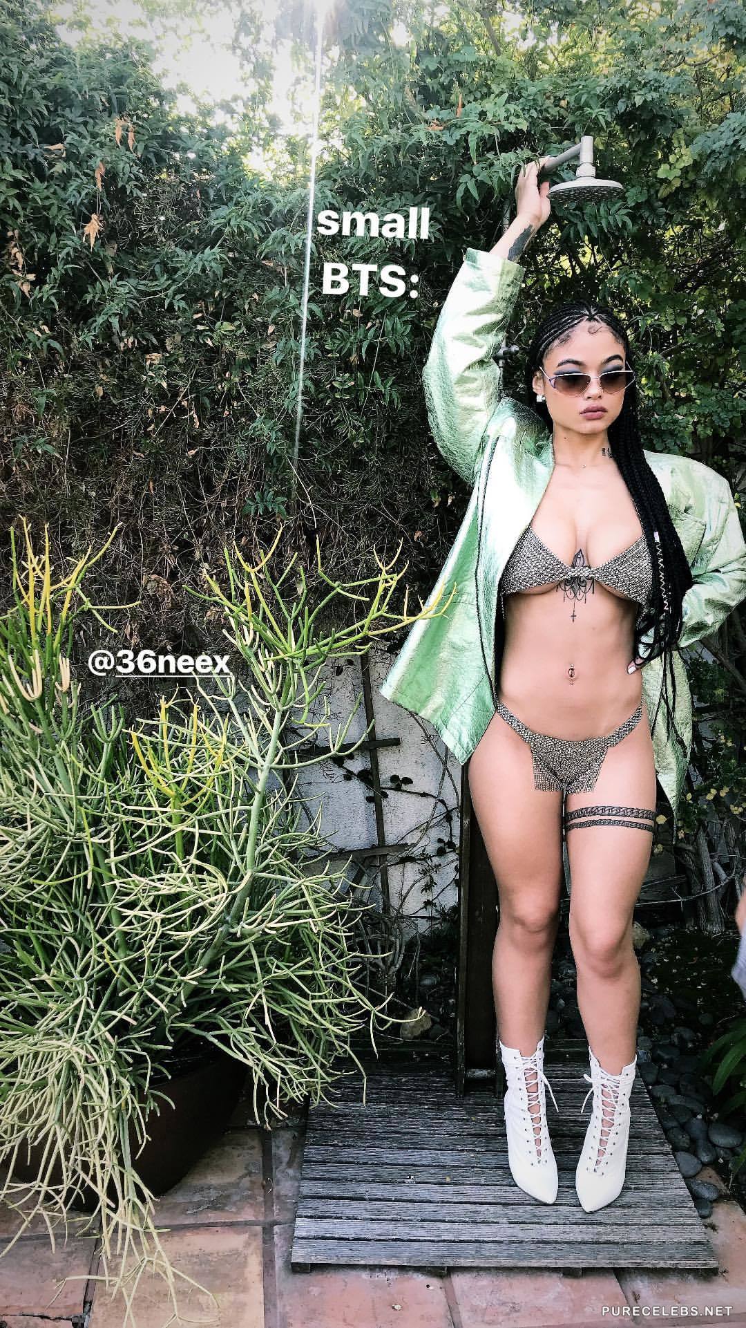 The young self made Instagram model and music artist obviously likes to show off more than just her tattoos that are spread over that luscious body. The one placed between her tits draws some extra attention as they should be given special treatment. She is teasing with her well shaped ass that is begging to be groped and spanked. And tits, either covered up in sexy shirts or semi exposed in a bikini, give just enough to fantasize about – like rubbing your cock between them.