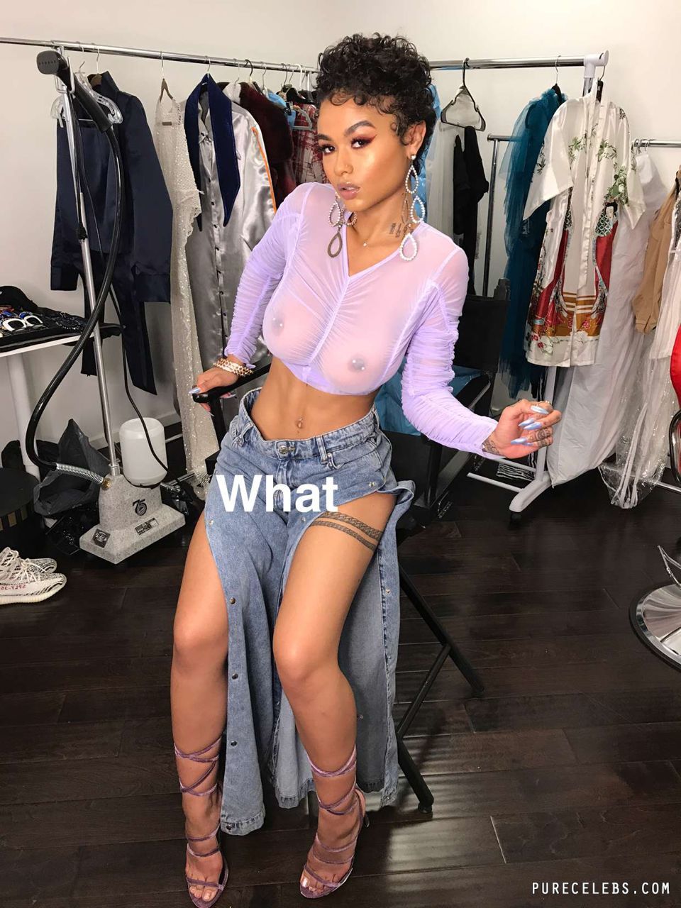 With over three million followers on Instagram it is no wonder that this India Westbrooks caught the eye of reporters, who asked her to pose in some provocative clothing for a recent magazine photo shoot. The hot ebony babe was photographed in a number of sheer outfits, each revealing her plump boobs and sexy nipple piercing. India’s gorgeous natural tits are definitely the highlight of this shoot.