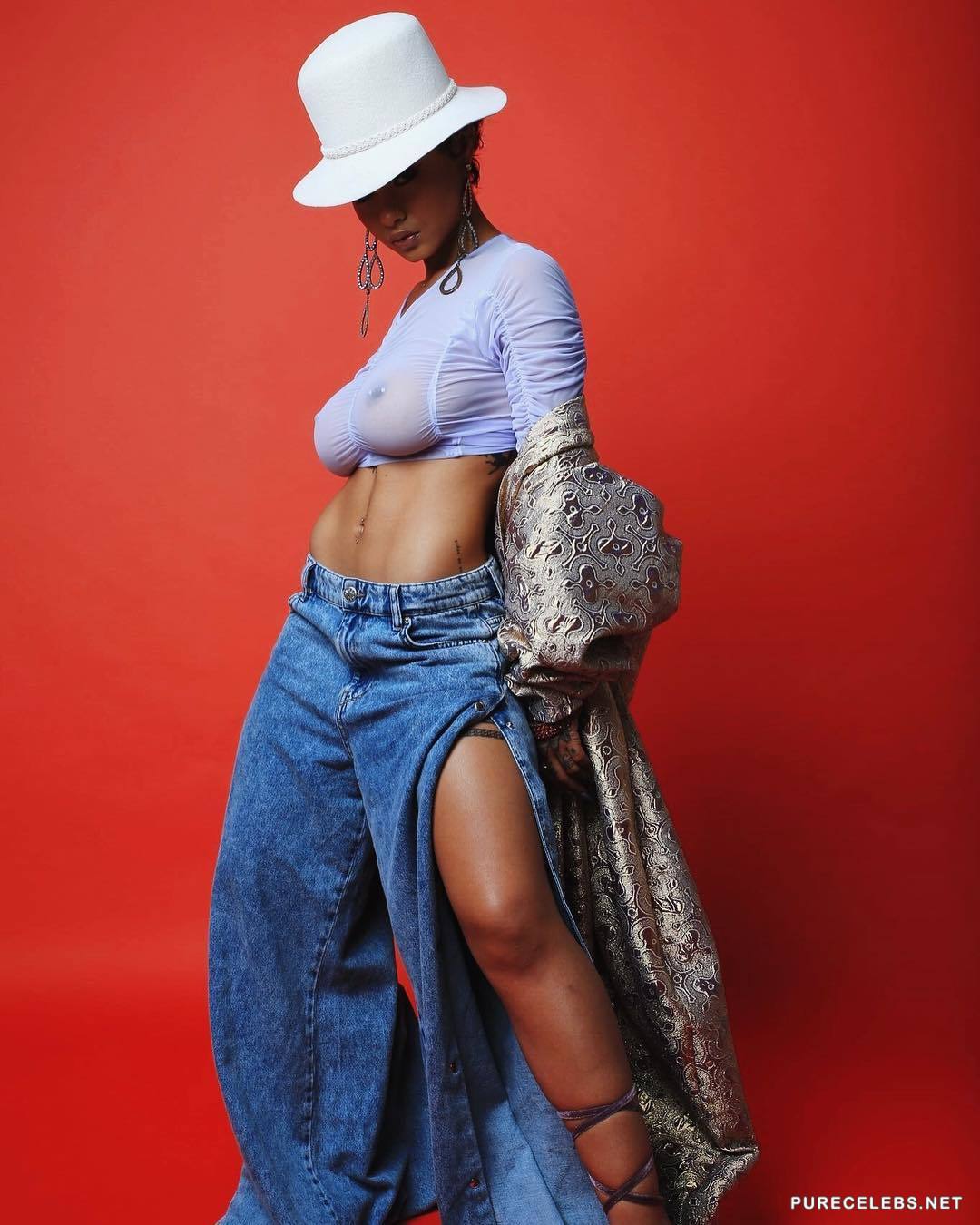 American model India Westbrooks seems to have decided to drive everyone around crazy with her nude titties. The star began to be photographed often in very transparent dresses. For example, here she is posing in a white transparent blouse. And at another event, she was seen in a short black transparent top. But all the photos have one thing in common – a celebrity is braless! Therefore, everyone around can see India Westbrooks’s nude boobs with pierced nipples through her outfits!