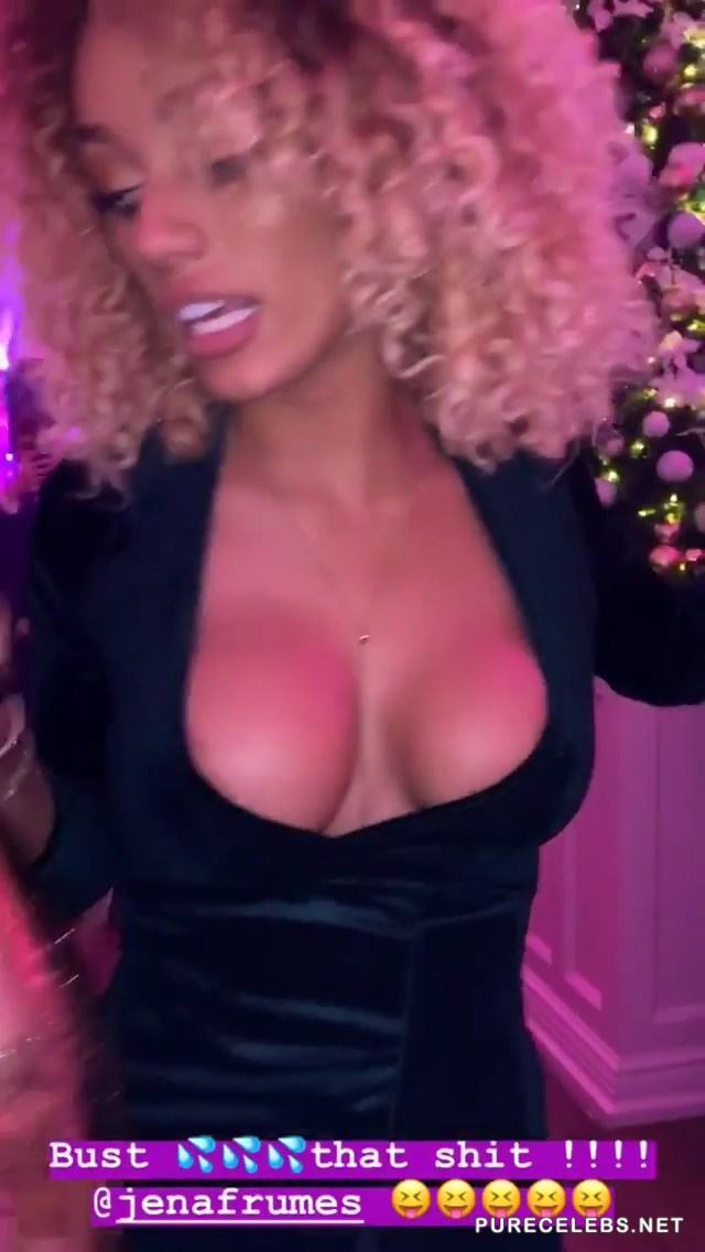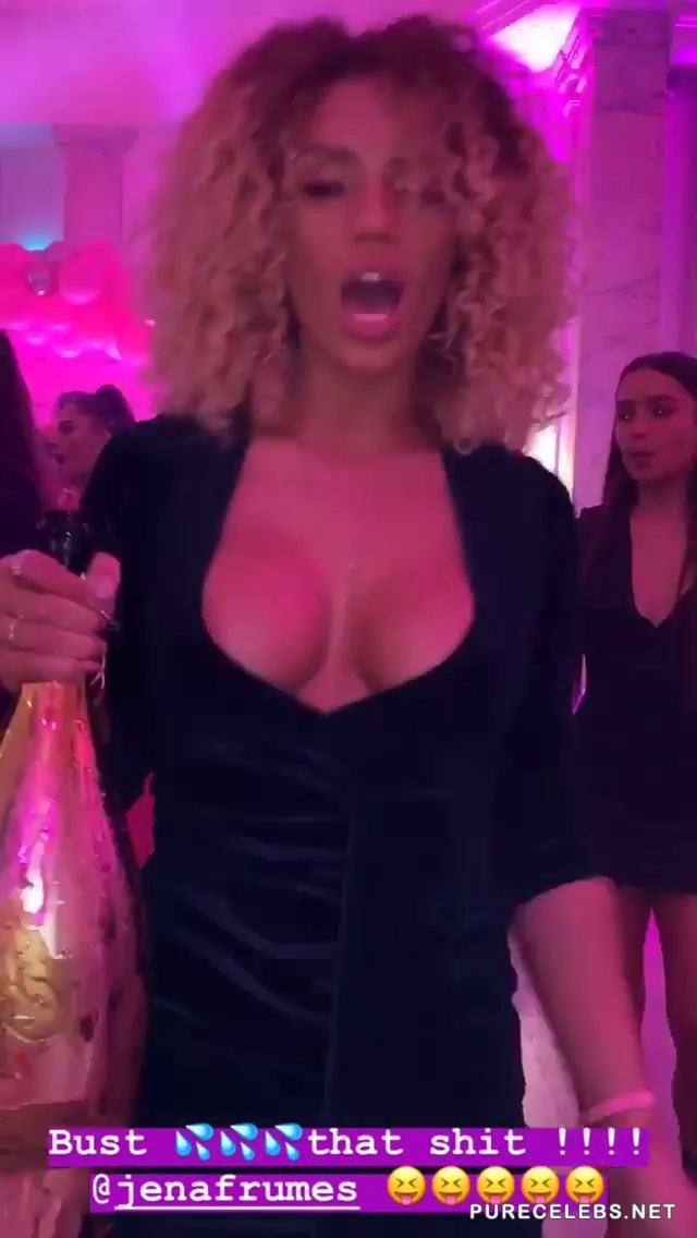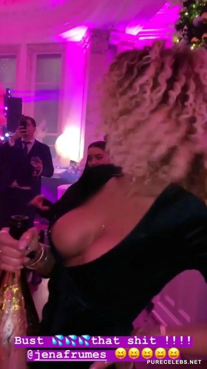 Private parties are to dance seductively, to grab a champagne bottle as foam is dripping all over it and certainly to pull the cleavage a bit down, to make sure that those nice, firm tits are clearly exposed, making it possible even for a nice nipslip to happen, because why not… that is how Instagram celebrity, Jena Frumes sees things and we can get busy seeing something else here, right?
