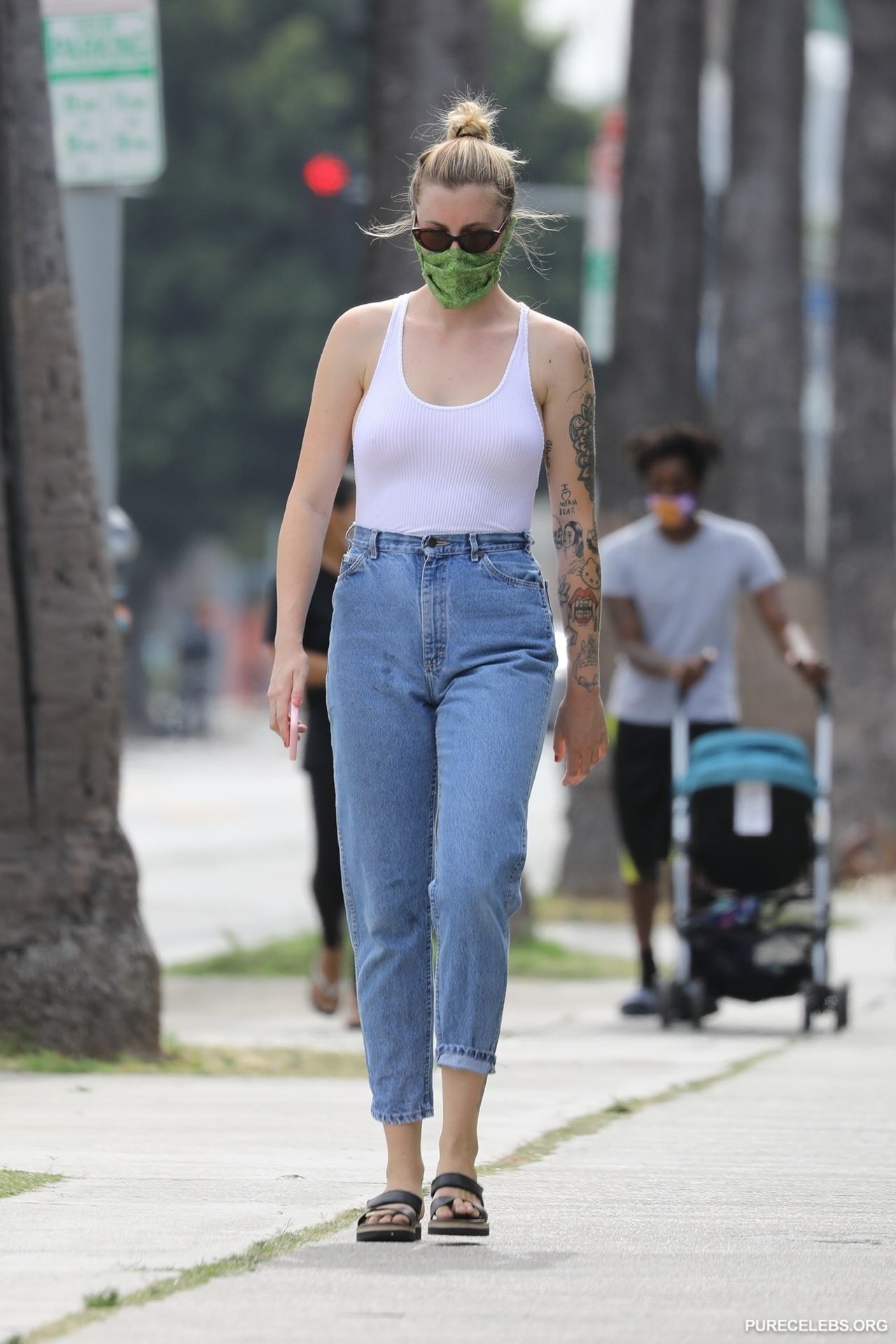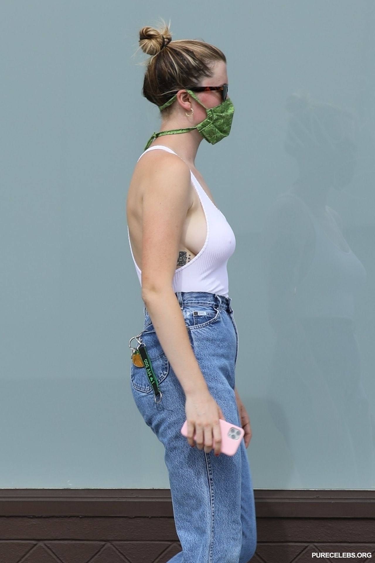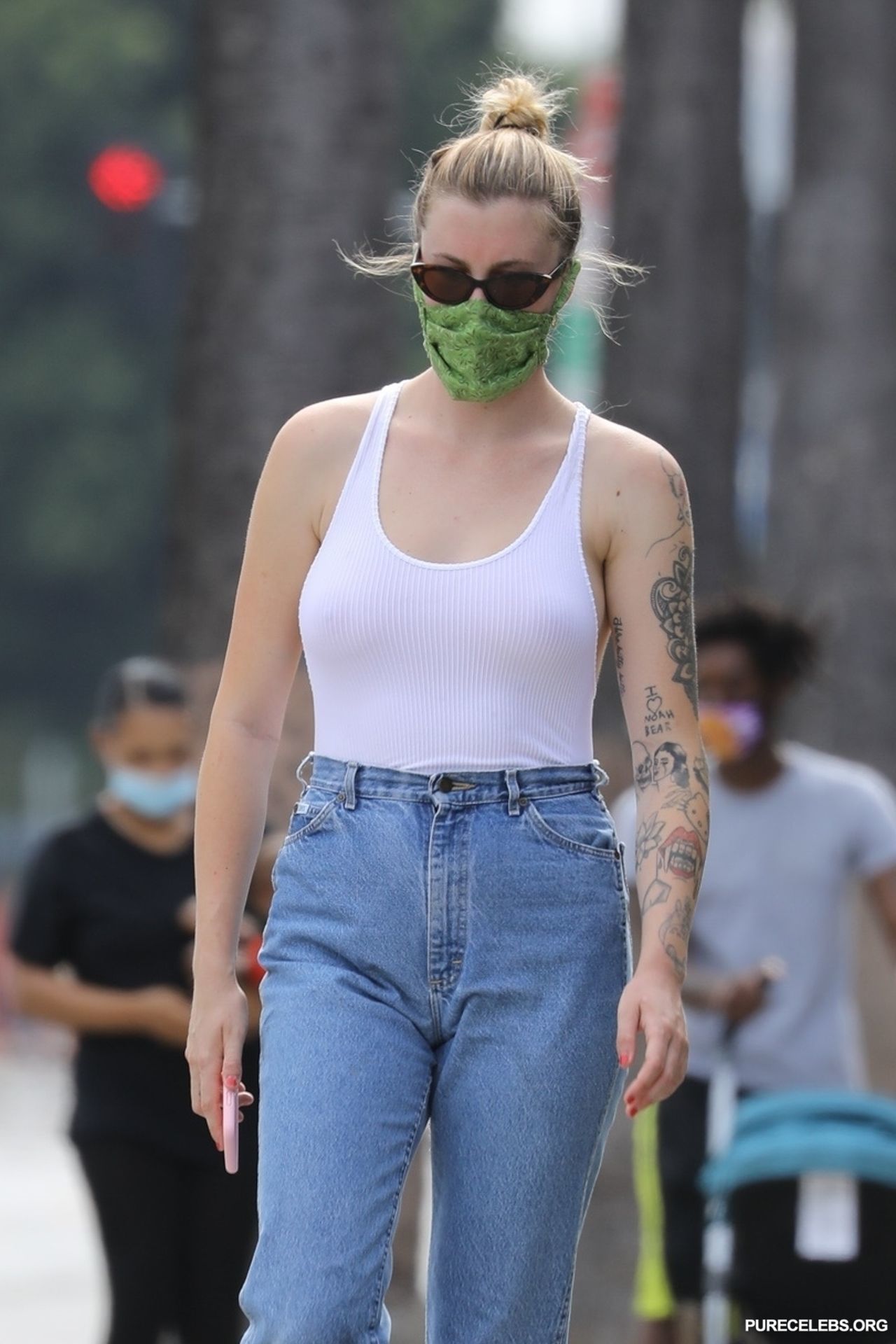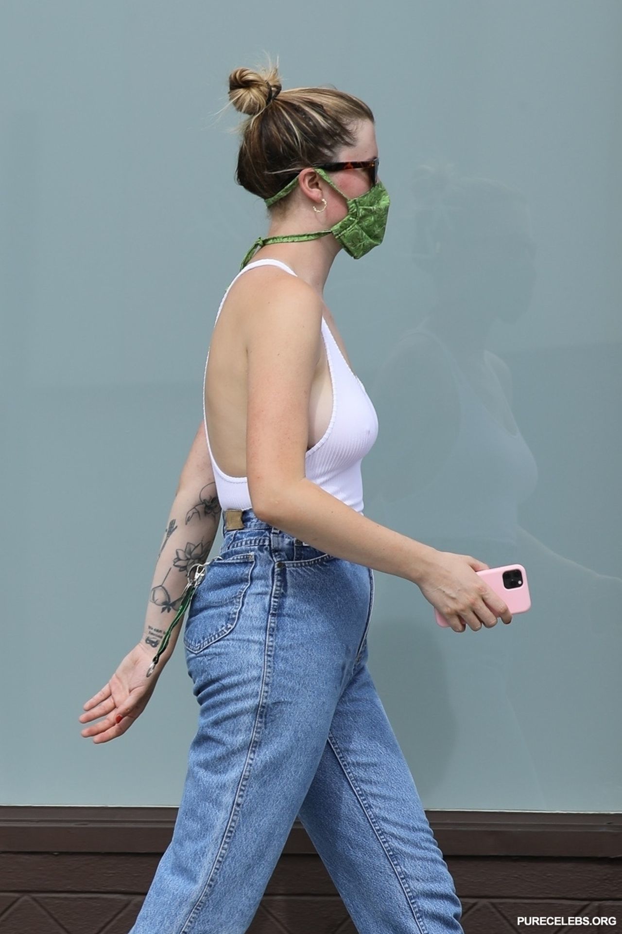 American model Ireland Baldwin is driving her fans crazy with her almost nude boobies. So, the celebrity gladly shared a selfie in a red bikini. Ireland Baldwin leaned forward and it seemed that her juicy nude boobs were about to slip out of a small bra. And recently, paparazzi photographed this blonde in a green mask on her face and braless outdoors. Through her tight white T-shirt her wonderful titties with poking nipples were perfectly visible.