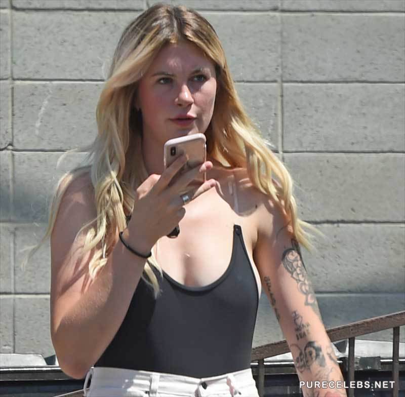That deep sideboob view made us stare for a while until we have realized that we did not even check which celebrity it was. The beautiful blonde honey is Ireland Baldwin, great looking babe whose tits are big enough to make a statement and she is proudly wearing her bodysuit without a bra under. The best combo ever- big boobs, no bra, we want freedom for big boobs, right now!