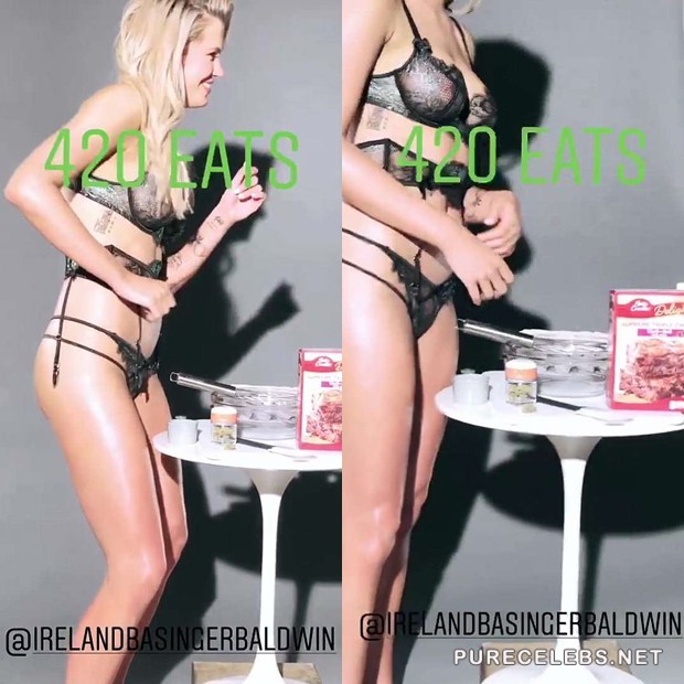 We can’t get enough of Ireland Baldwin and luckily she often poses for various magazines. In several photos, she poses in wet tight bikini that clings to her skin and leaves little to the imagination. Other photos show this blonde bombshell wearing sexy black lingerie, that just accentuates her perfect shape, from the long slender legs, across her round plump butt, to her juicy big boobs, with nipples half visible through the thin bra.