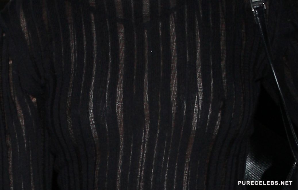 Gorgeous model Irina Shayk attended a public event for Catche in West Hollywood. The stunning hottie turned up to the promotion wearing a sheer black top which let her chocolate colored nipples poke though just enough to get caught on camera by the paparazzi. We can’t help admiring her perky natural tits and amazing slim body. Even when she is not modeling swimsuits Irina does not disappoint her fans.