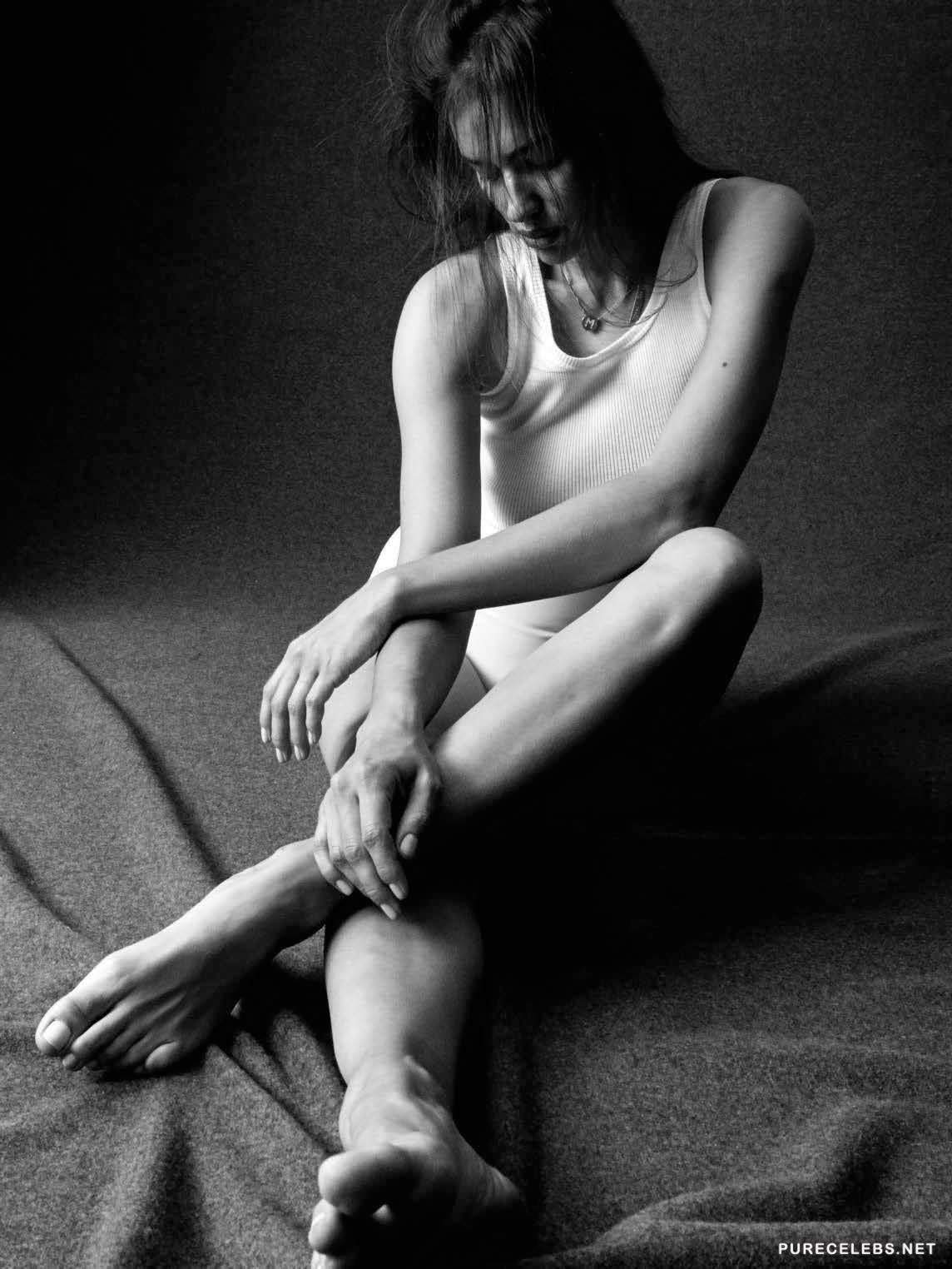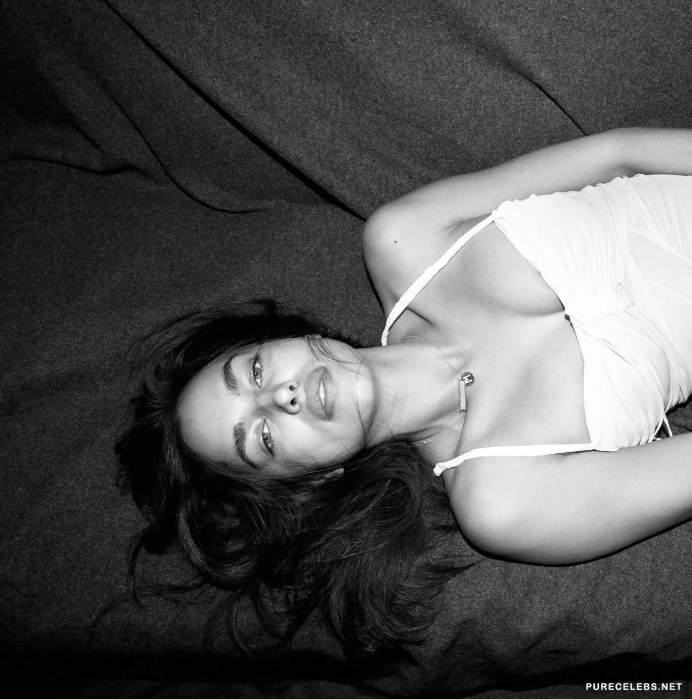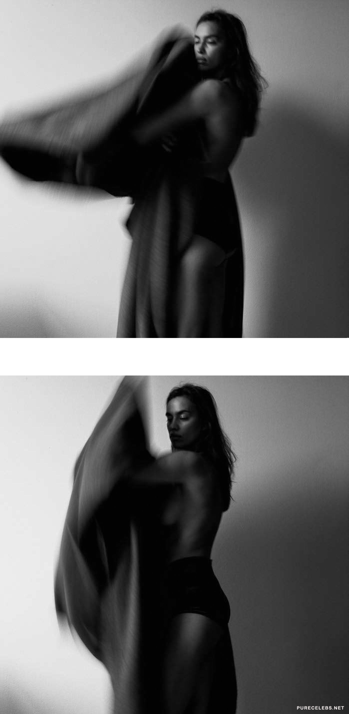 Irina Shayk has a long modeling career behind her, spanning over 10 years. Since the first time she moved to America from her homeland of Russia, this blue eyed brunette has not thought twice about going back. She has modeled for some of the biggest lingerie and fashion brands all over the world, and she is still at the peak of her performance. This Vogue editorial shows her topless and in some sexy lingerie.