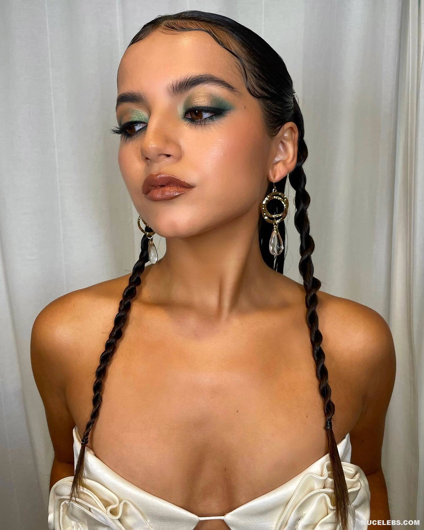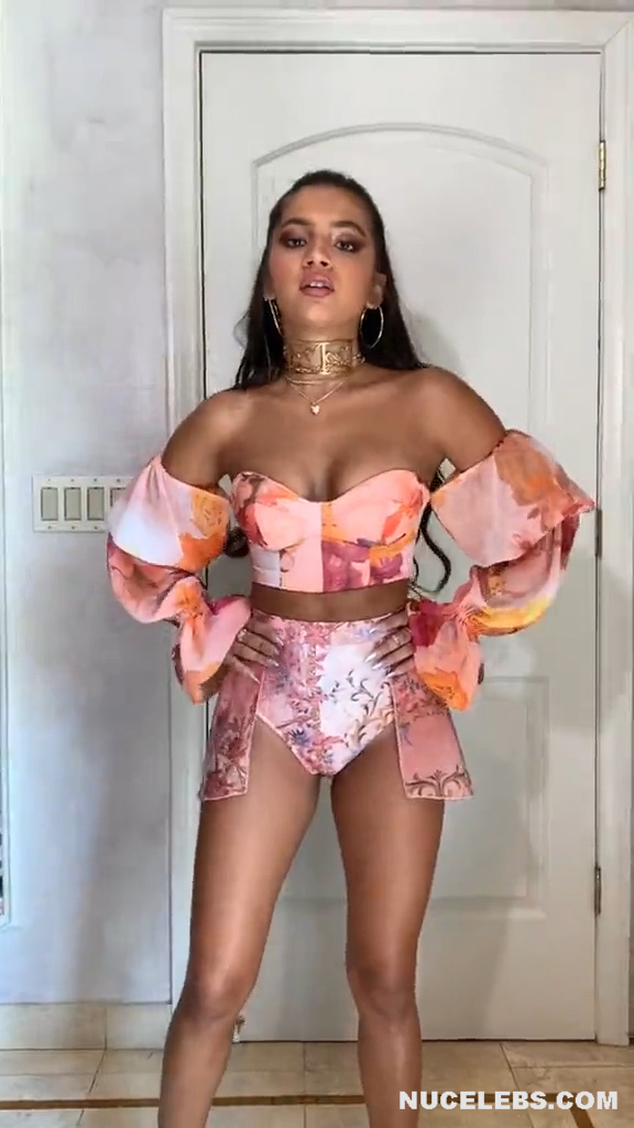 Isabela Merced elegant movements during photo shooting enhance her beauty and captivate onlookers. When this charming singer posed in a white top and small denim shorts, it was impossible to take your eyes off her sweet buttocks, which were almost uncovered. This 22-year-old beauty also showed off her toned butt while working out. Isabela Merced wore burgundy bike shorts that hugged her amazing ass like a second skin.