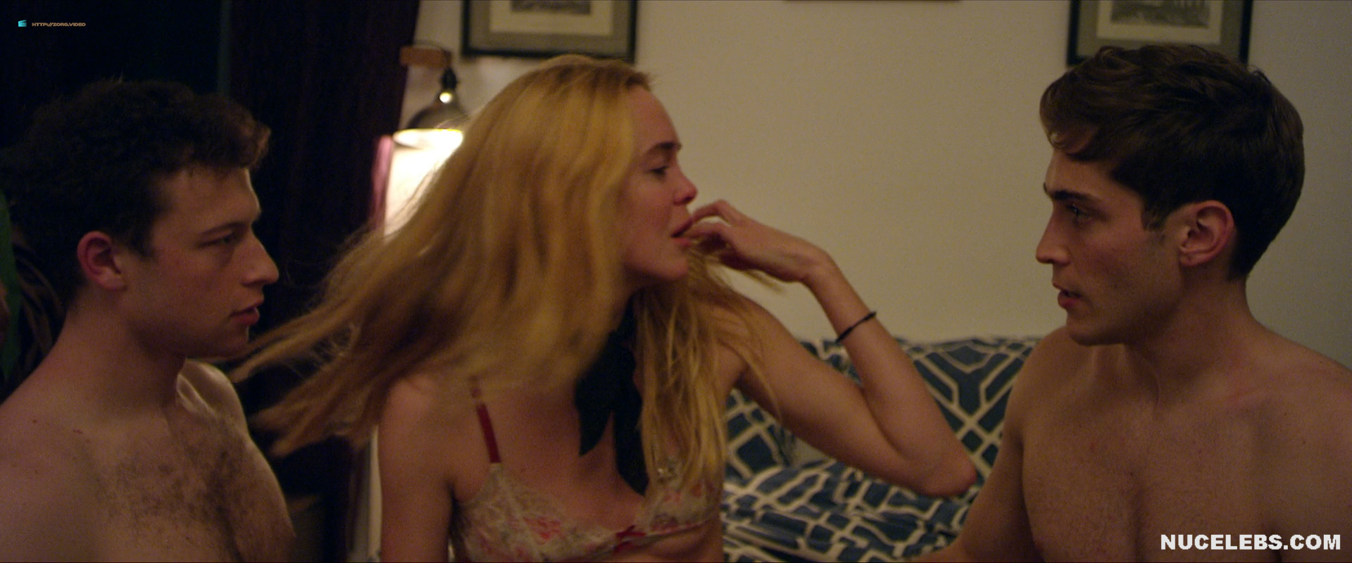 Isabelle Chester slowly removes her top and shows her nude desirable tits. Lover sits her on the edge of the table and kneels down to kiss her erect nipples.