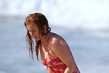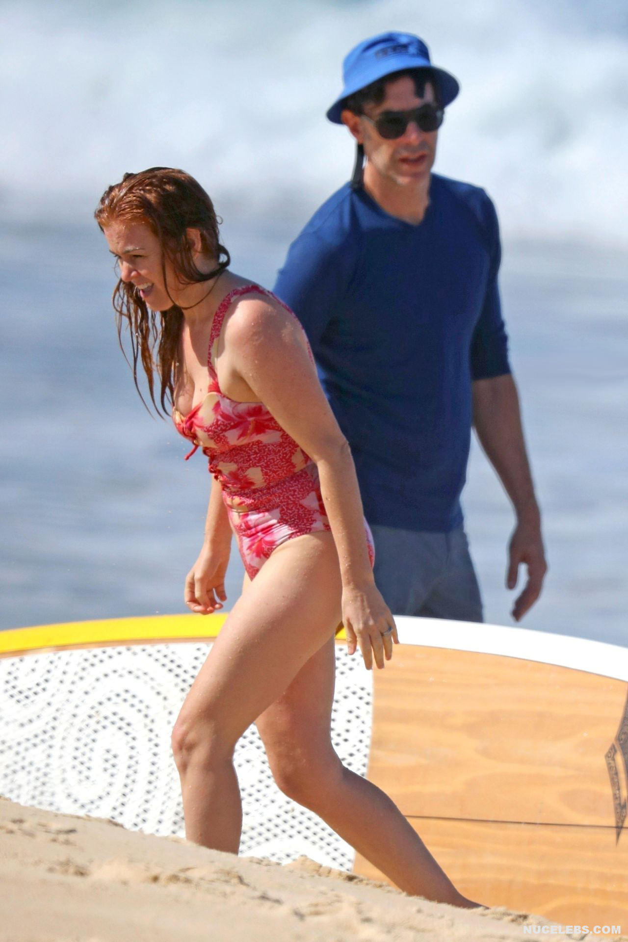 The paparazzi managed to catch Isla Fisher during her beach vacation. It is worth noting that the Australian actress spent time quite actively and swam in the sea. A wet pink floral print swimsuit fitted Isla Fisher’s nude body perfectly. By the way, the bottom of the swimsuit was rather narrow in front. This is why it seemed as though Isla Fisher’s nude pussy was about to slip out of him. But that never happened. Or maybe the paparazzi just didn’t have time to photograph such a spicy moment?
