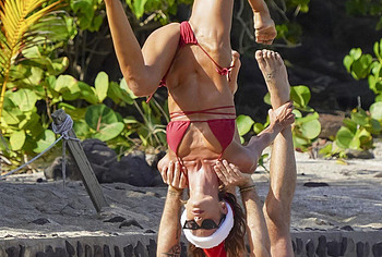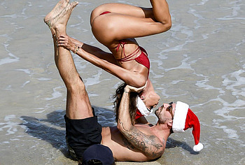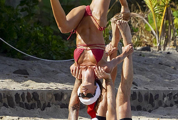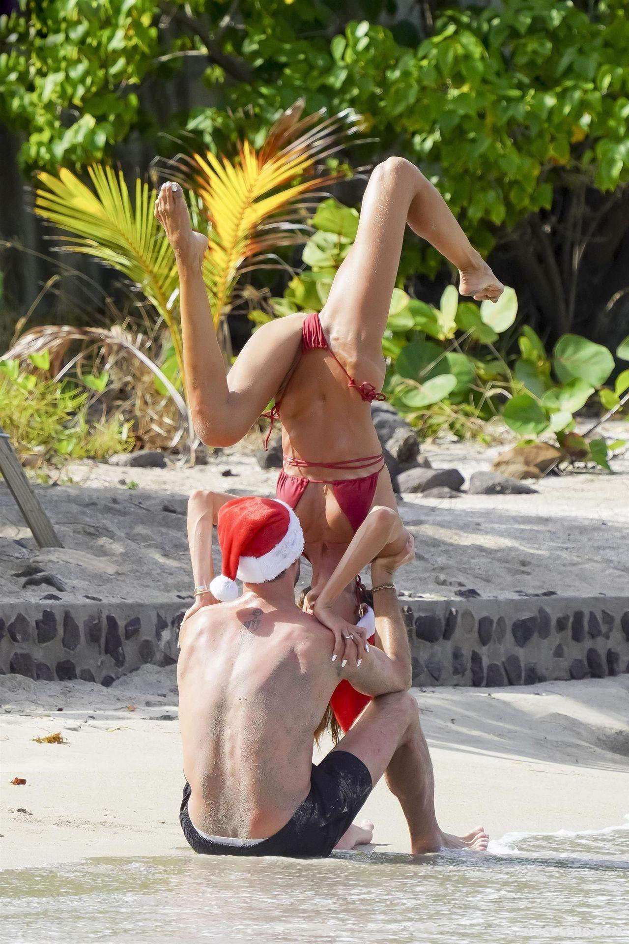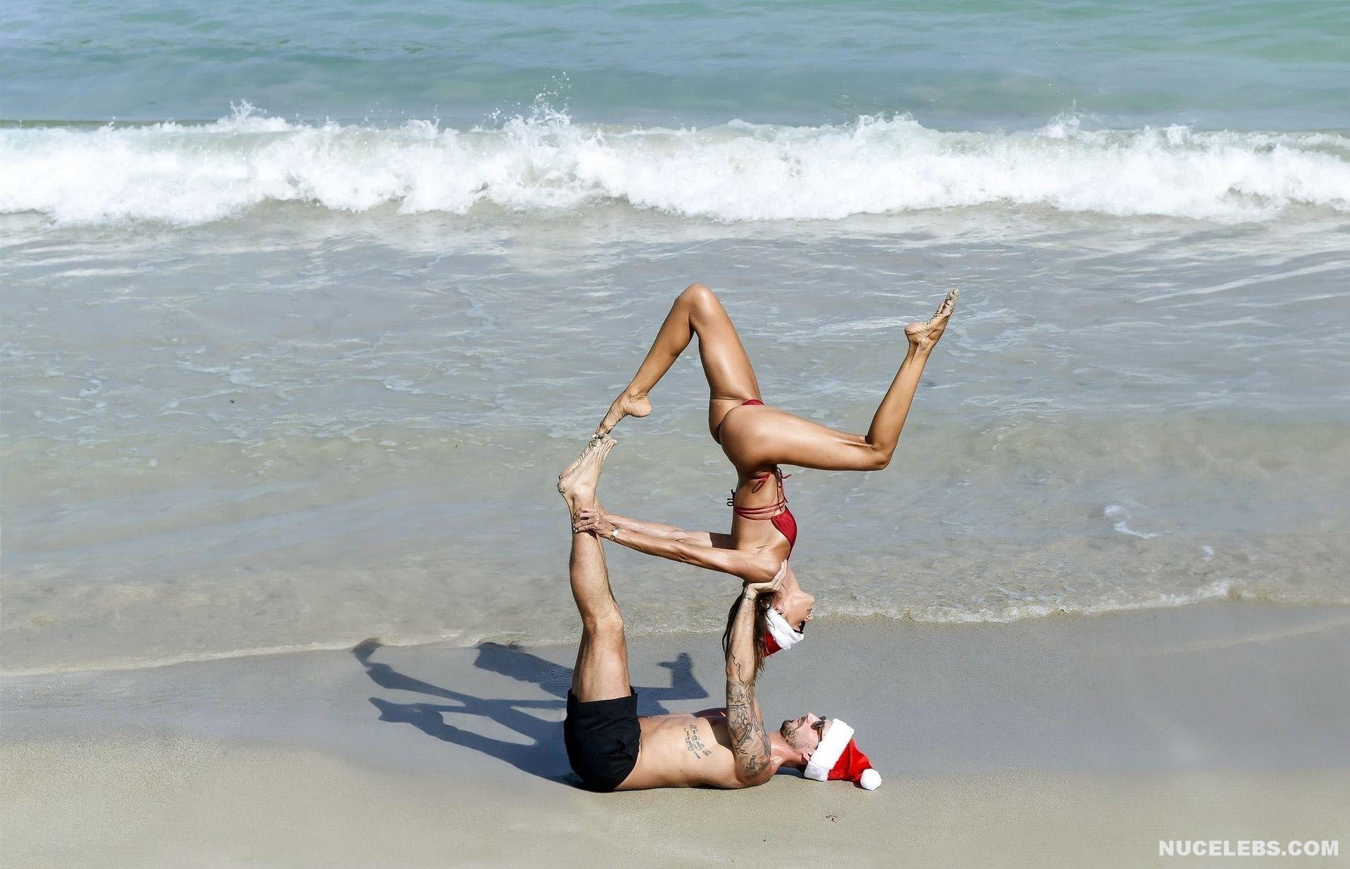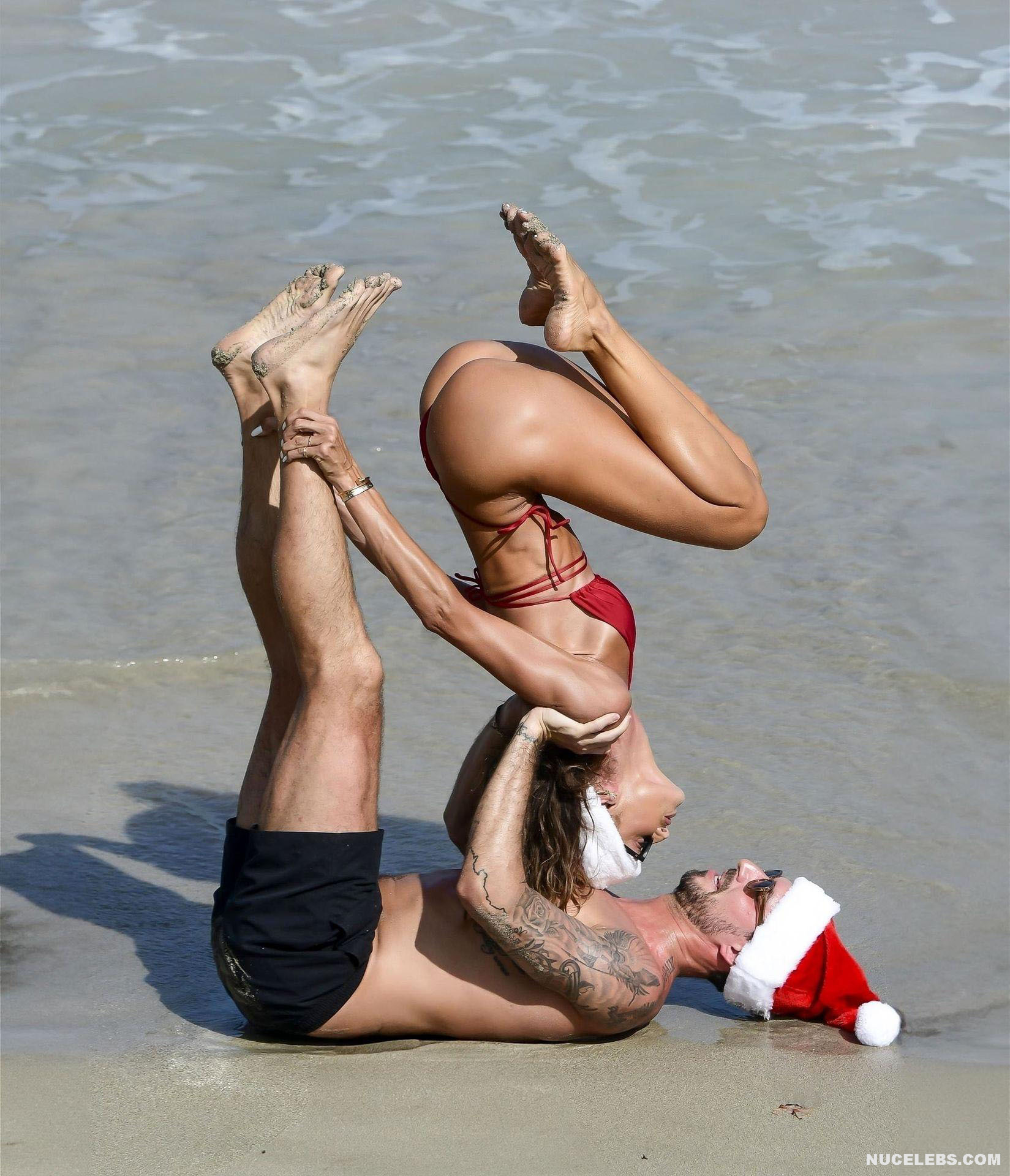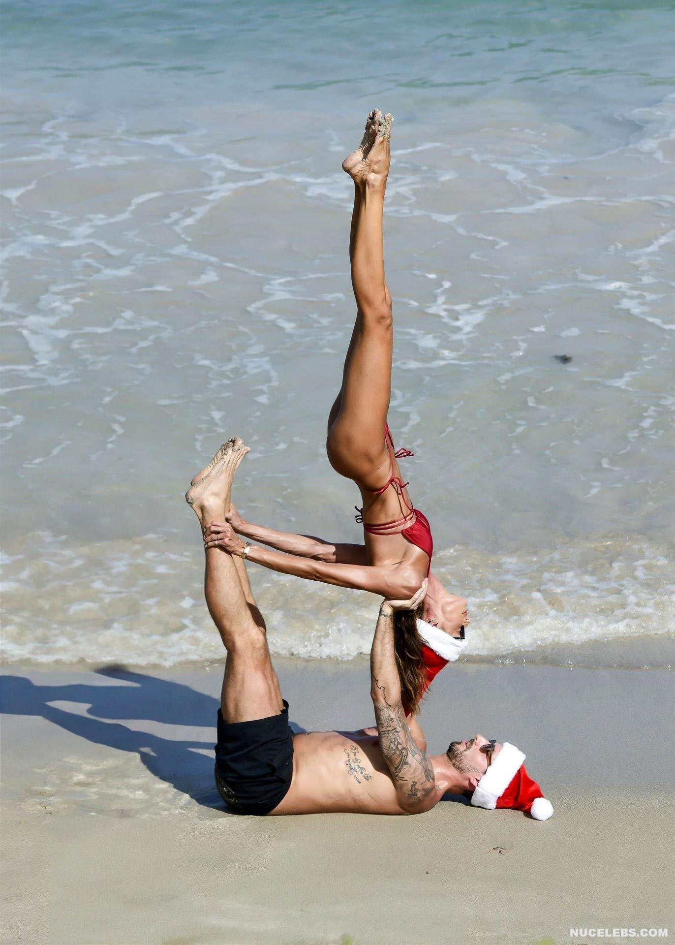 Thanks to daily workouts and a balanced diet, Izabel Goulart can boast of a great physical shape. This Brazilian supermodel effortlessly performs various gymnastic and acrobatic tricks during the photo shoot. It is worth noting that she was dressed only in a tiny red bikini. Perhaps you assumed that Izabel Goulart nude boobs would slip out of it? No, it didn’t happen. However, Izabel Goulart pussy lip still slipped out of her tiny thong during one exercise. Amazing sight!