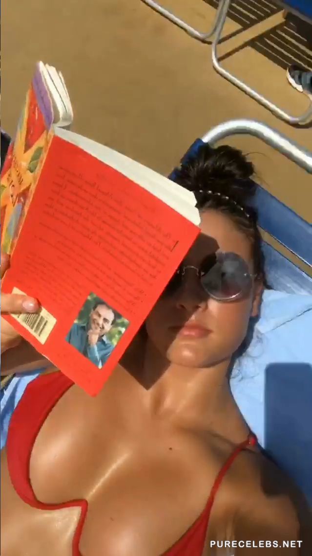 Jade Chynoweth is American dancer and an actress had parts in many popular movies, but that’s not only thing that got her famous, but also her looks. The bikini top is perfectly embracing her squeezable breasts that she is teasing with in every picture. She seems particularly fond of handling larger things and looks quite good handling them as well. Sucking juices appears to be her forte as well. Would you like a bite of that apple too?