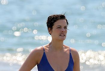 American actress Jaimie Alexander showed off her almost nude body in a petite swimsuit during her beach vacation. This hot brunette looked very seductive as she stepped out of the water. And while you won’t see Jaimie Alexander’s nude boobs, you can admire her poking nipples in her wet bra. Also her ass looked incredibly attractive in wet tight panties.