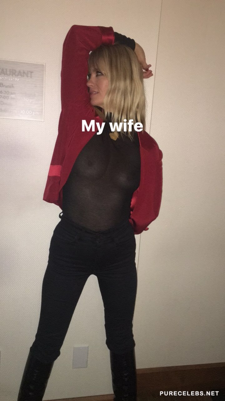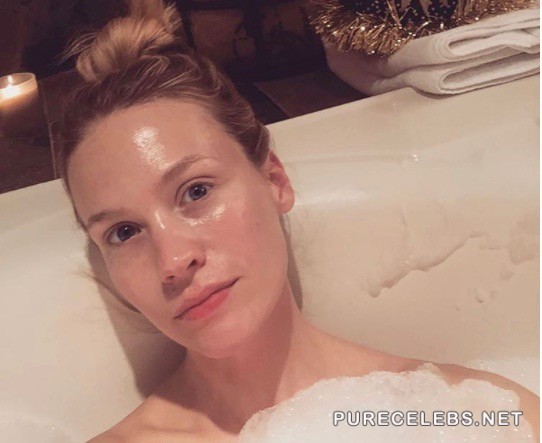 Leading lady of the hit TV show Mad Men January Jones recently experienced a leak of her private Instagram photos. The hot blond cougar posed in a tight black shirt, but luckily forgot to wear a bra under it. Her natural boobs were exposed by camera flashes. Other photos show January relaxing at home and enjoying a bubble bath. It is clear that this MILF takes good care of her sexy body.