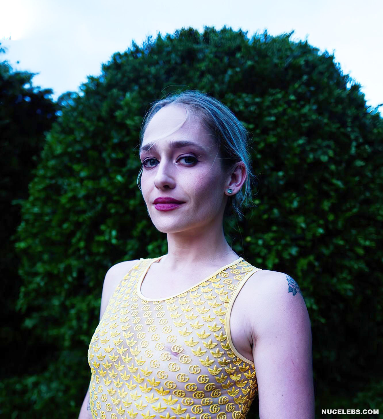 Jemima Kirke’s ability to effortlessly carry herself in various outfits adds to her magnetism and allure. At times, Jemima Kirke even shows parts of her naked body to the public. As, for example, it happened at one of the events where she appeared in a yellow dress. The dress had a small embroidered print on transparent fabric. And this celebrity was braless, so her top was practically not covered. So all the attention of the paparazzi was focused on Jemima Kirke nude tits with small dark nipples.