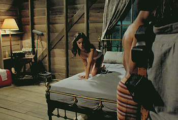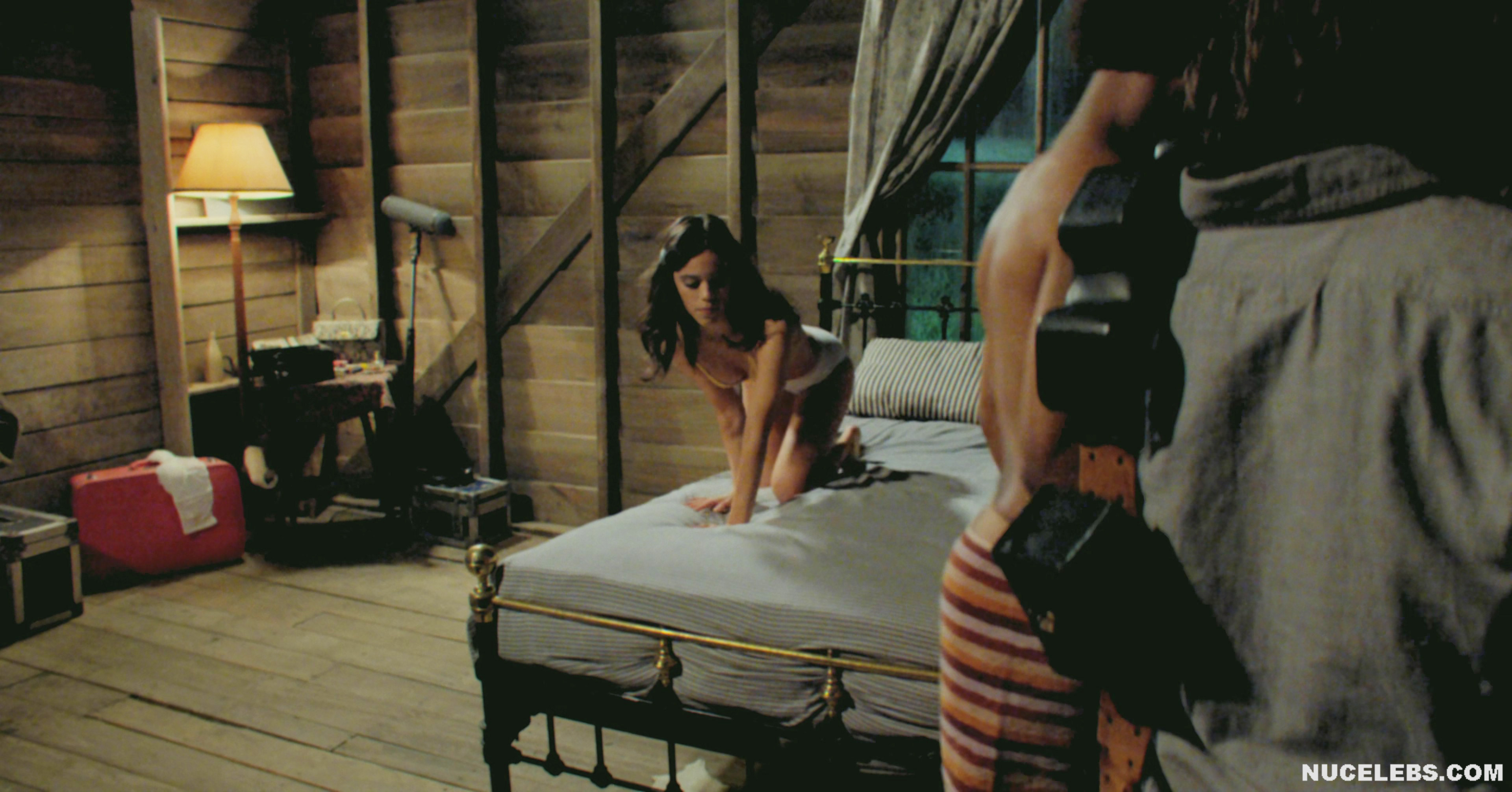 Jenna Ortega will tease you with her excellent performance in X. In one of the scenes, this charming brunette did not strip naked. However, it is worth noting that Jenna Ortega looked very sexy in her lingerie as she moved around the bed. So, you won’t be able to look away from her wonderful boobies in a yellow bra. And her booty in white panties looked especially seductive when she bent over the man, about to stick her hands into his panties.