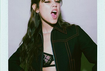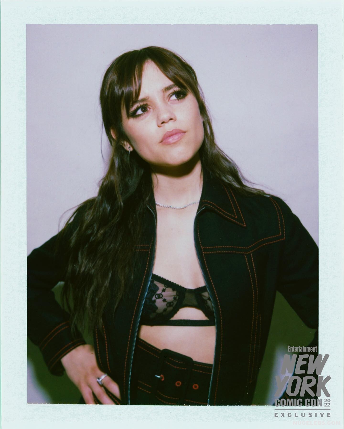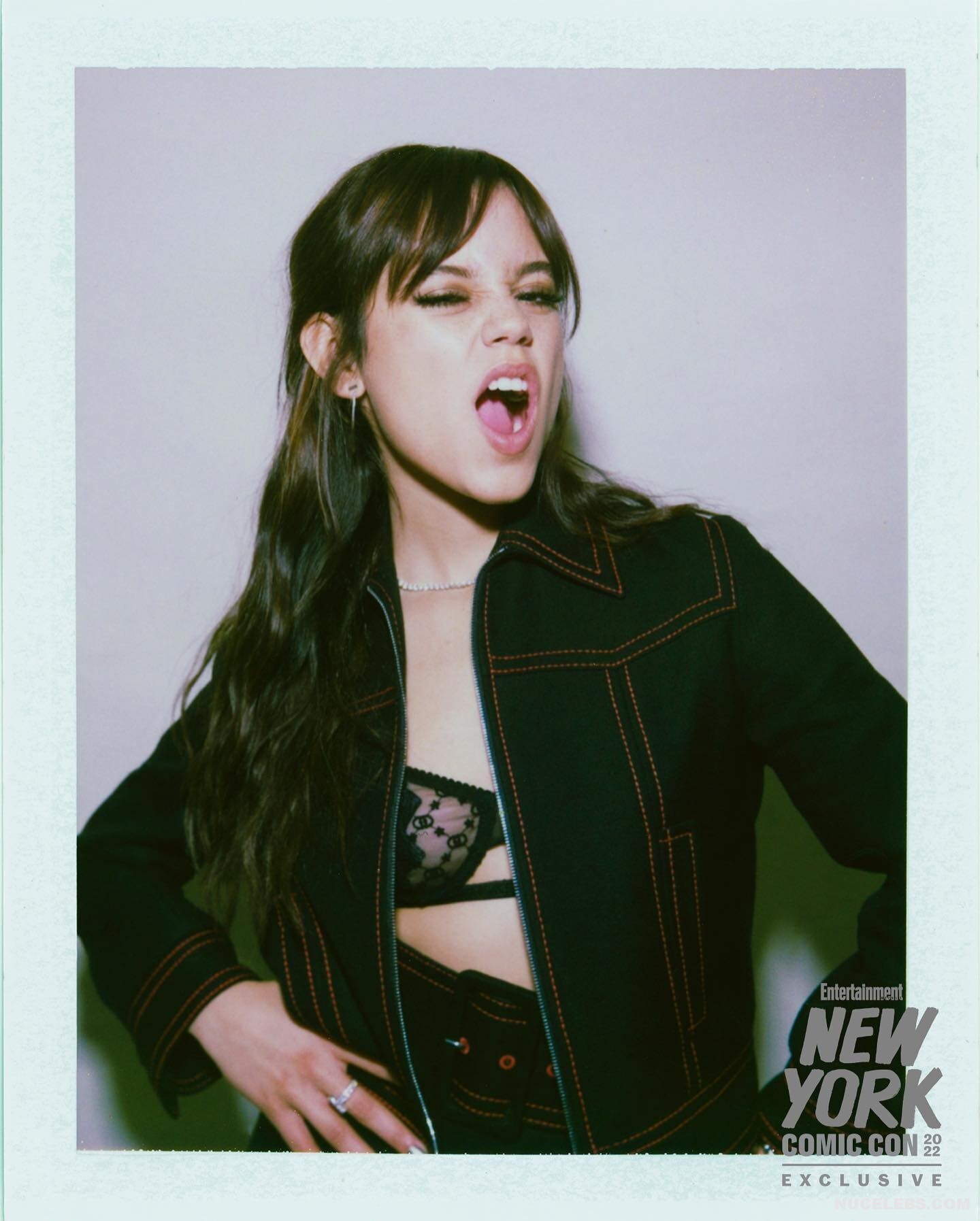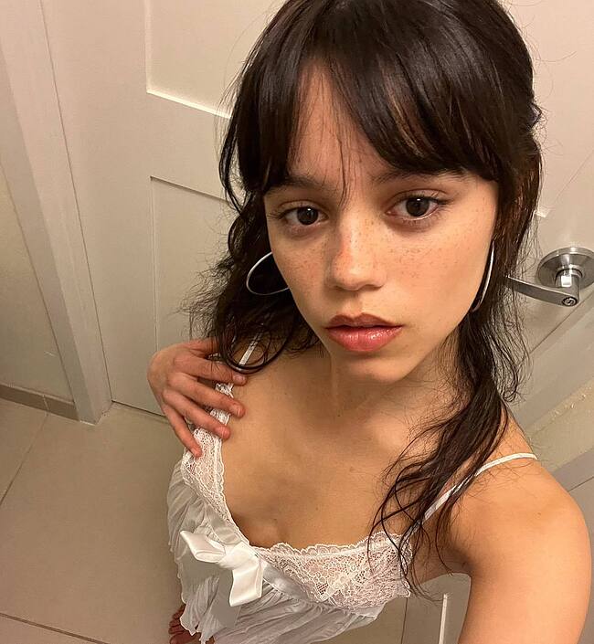 Jenna Ortega is in no hurry to show her nude body to the public, however, she occasionally pampers her fans by appearing in skimpy outfits. Recently, the girl shared her selfie in a white lace nightgown. By the way, Jenna Ortega’s nude boobies were a little visible through the translucent fabric. Also, this American actress posed without hesitation in an unbuttoned jacket from which her black transparent bra peeked out.
