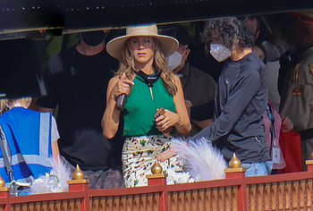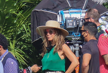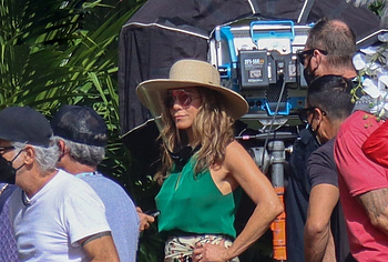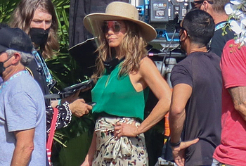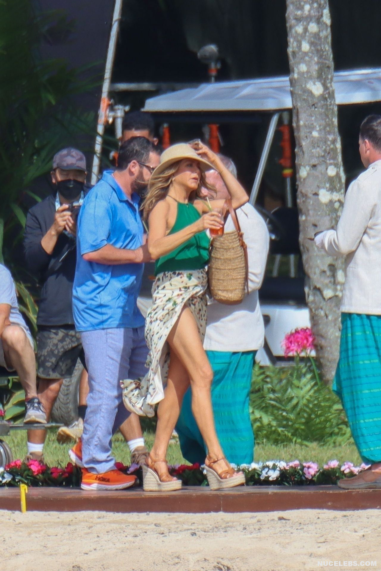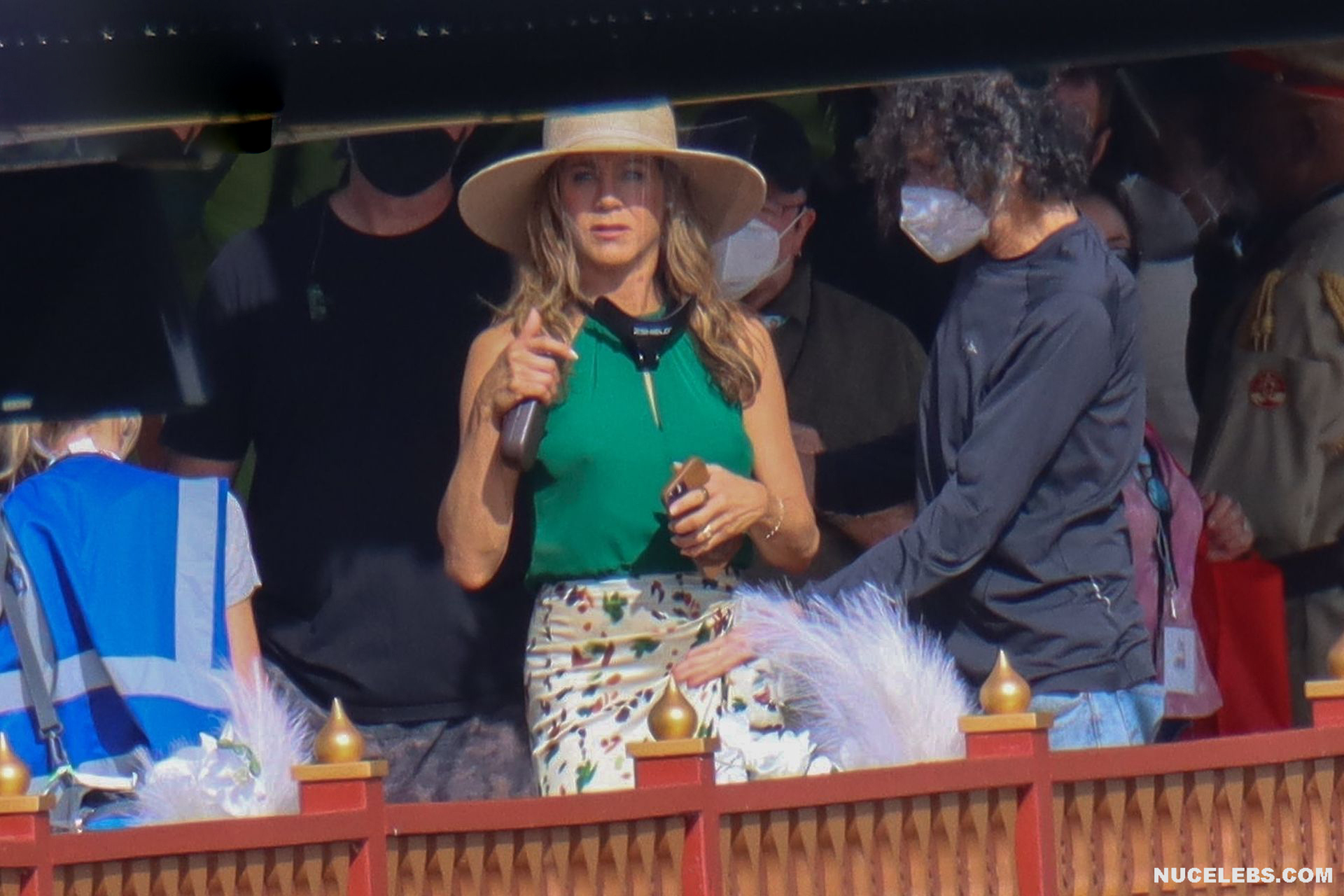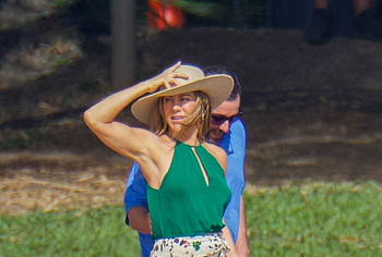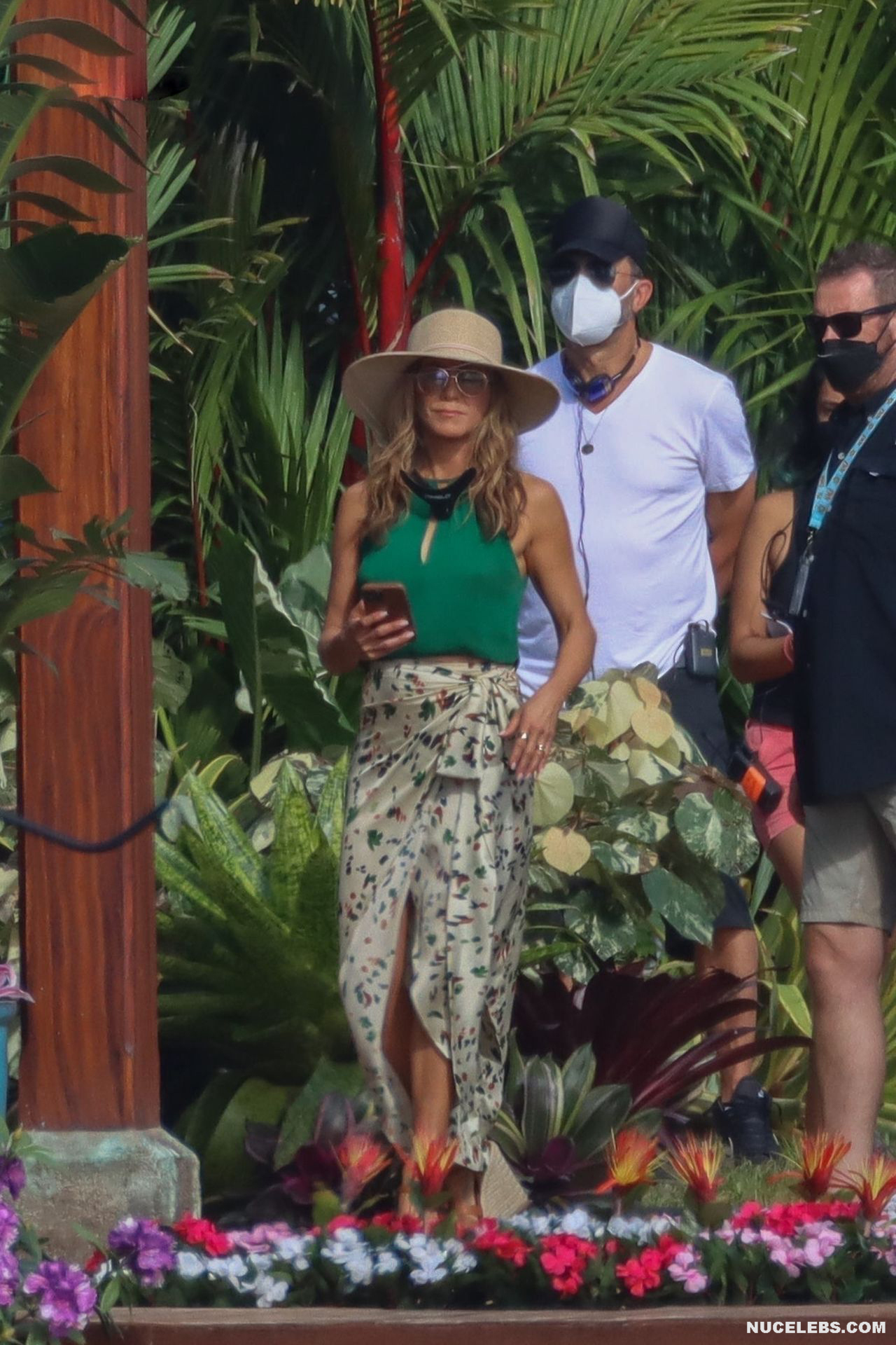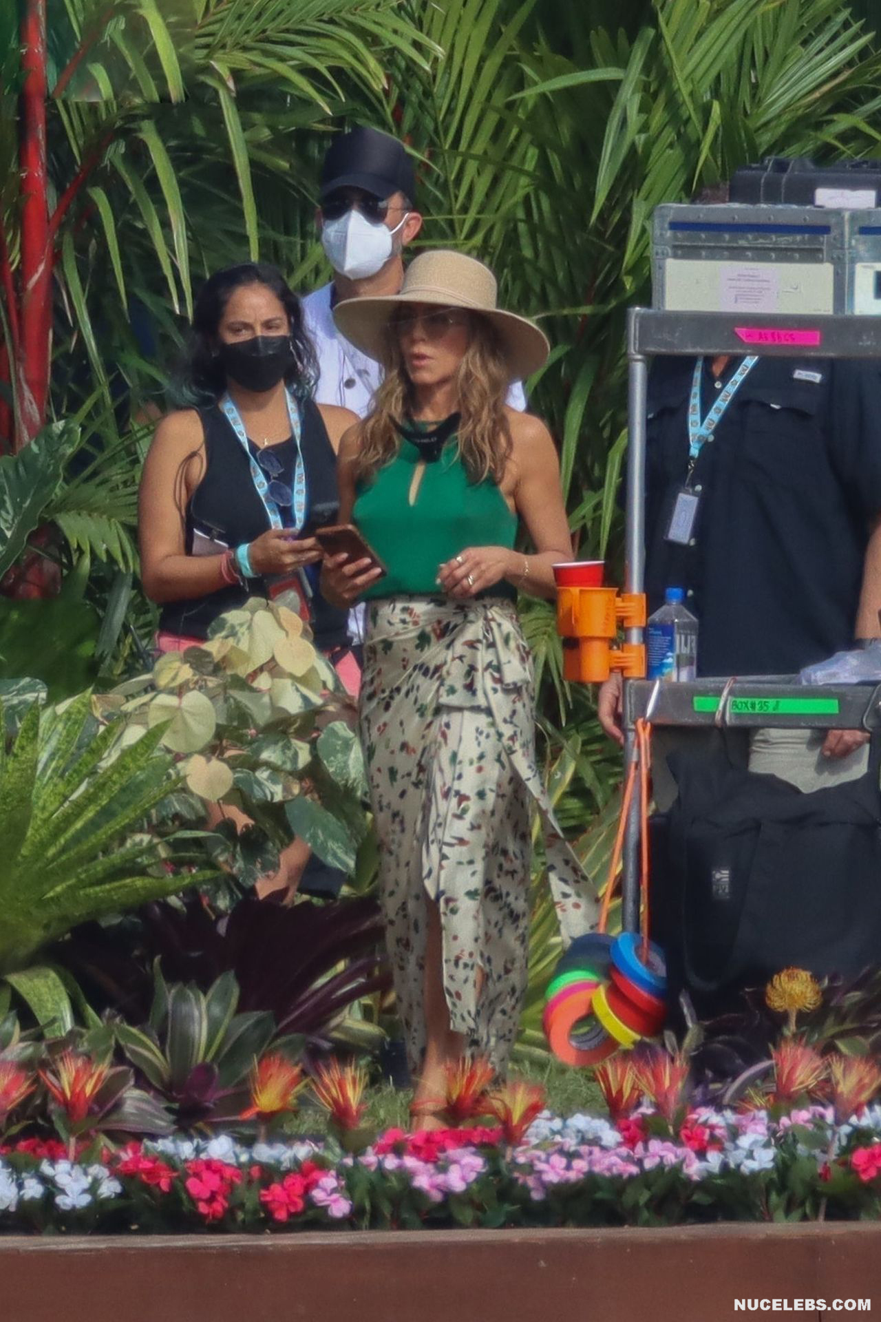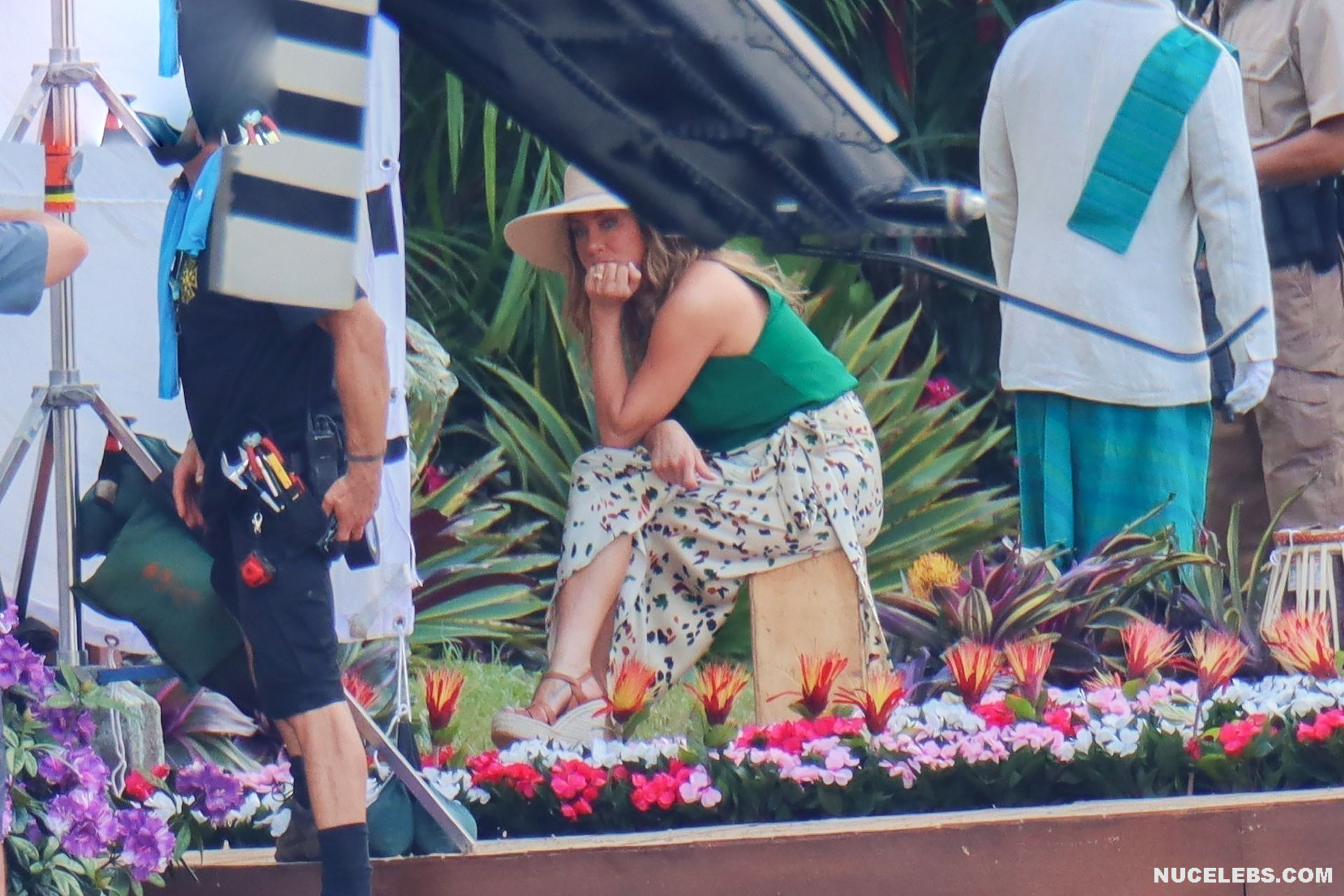 Despite the fact that she has a great figure for her age, Jennifer Aniston is in no hurry to show nude. Although the paparazzi who constantly follow her managed to make some hot shots. So, they filmed this Hollywood actress walking near the palm trees. The celebrity was wearing a cute green top that showed her poke nipples. In addition, Jennifer Aniston’s long skirt opened to the sides in a gust of wind and her small panties became visible to everyone, hiding her nude pussy!