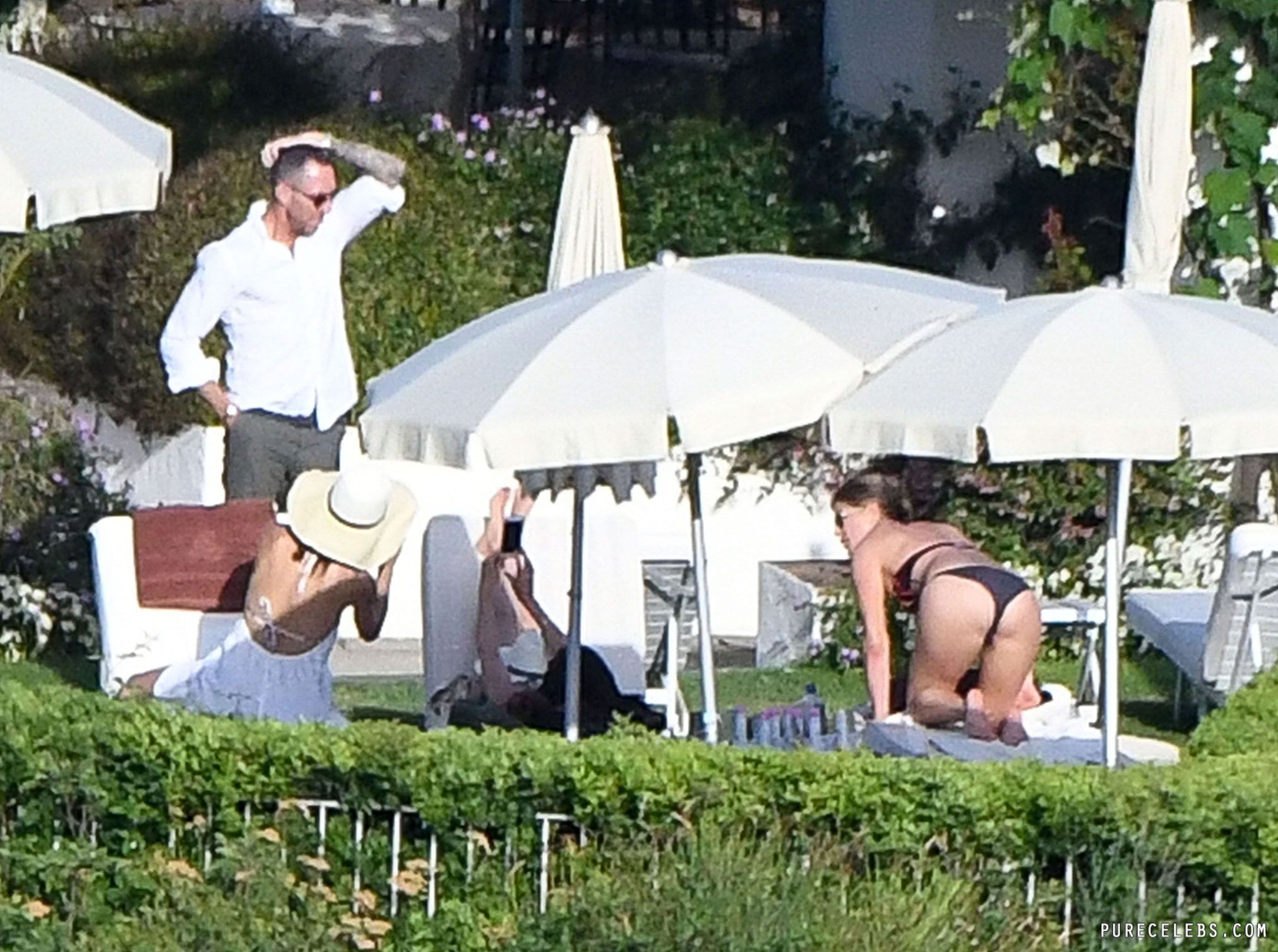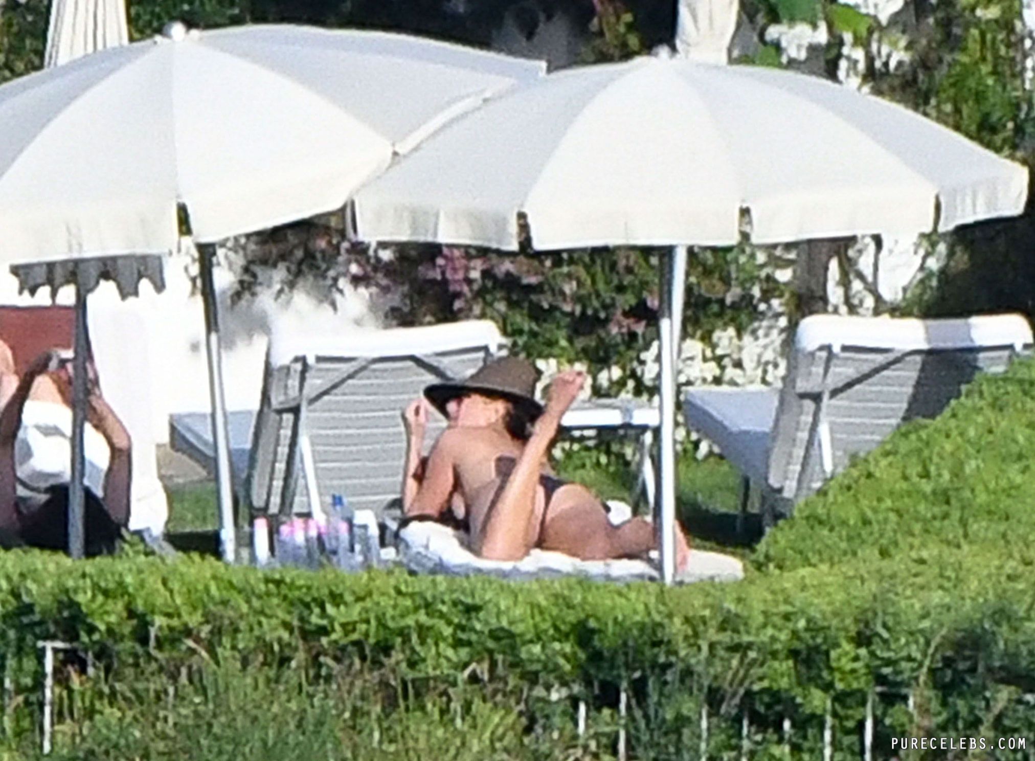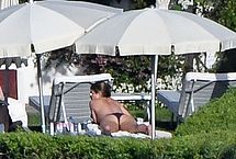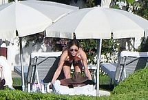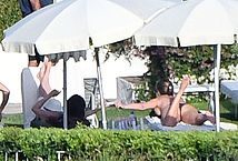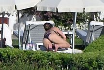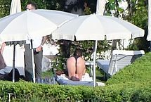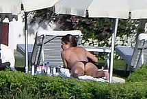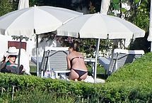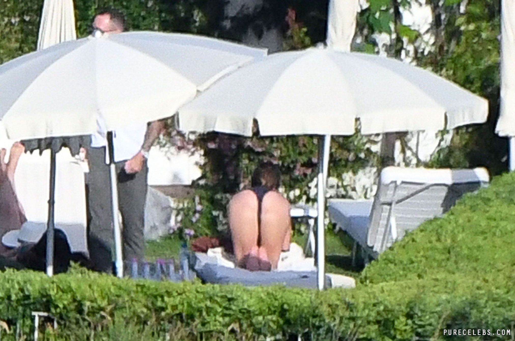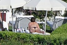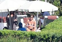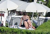 It seems like American actress Jennifer Aniston was caught off guard while on vacation judging by these candid bikini photos. Sneaky paparazzi snapped a whole gallery of celebrity pictures that will make your mouth water. Now a MILF, Jennifer still looks hot, especially when she starts showing off her ass while wearing a little black thong, and trying to get an even sun tan out by the pool.