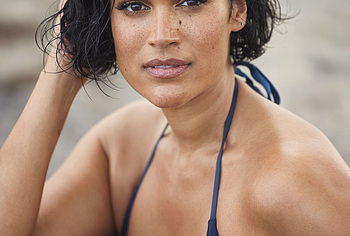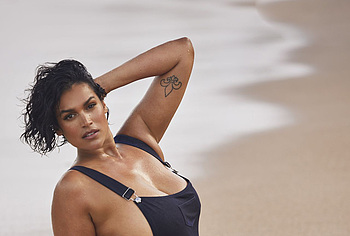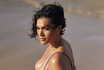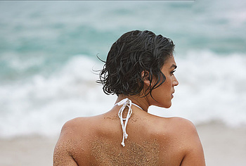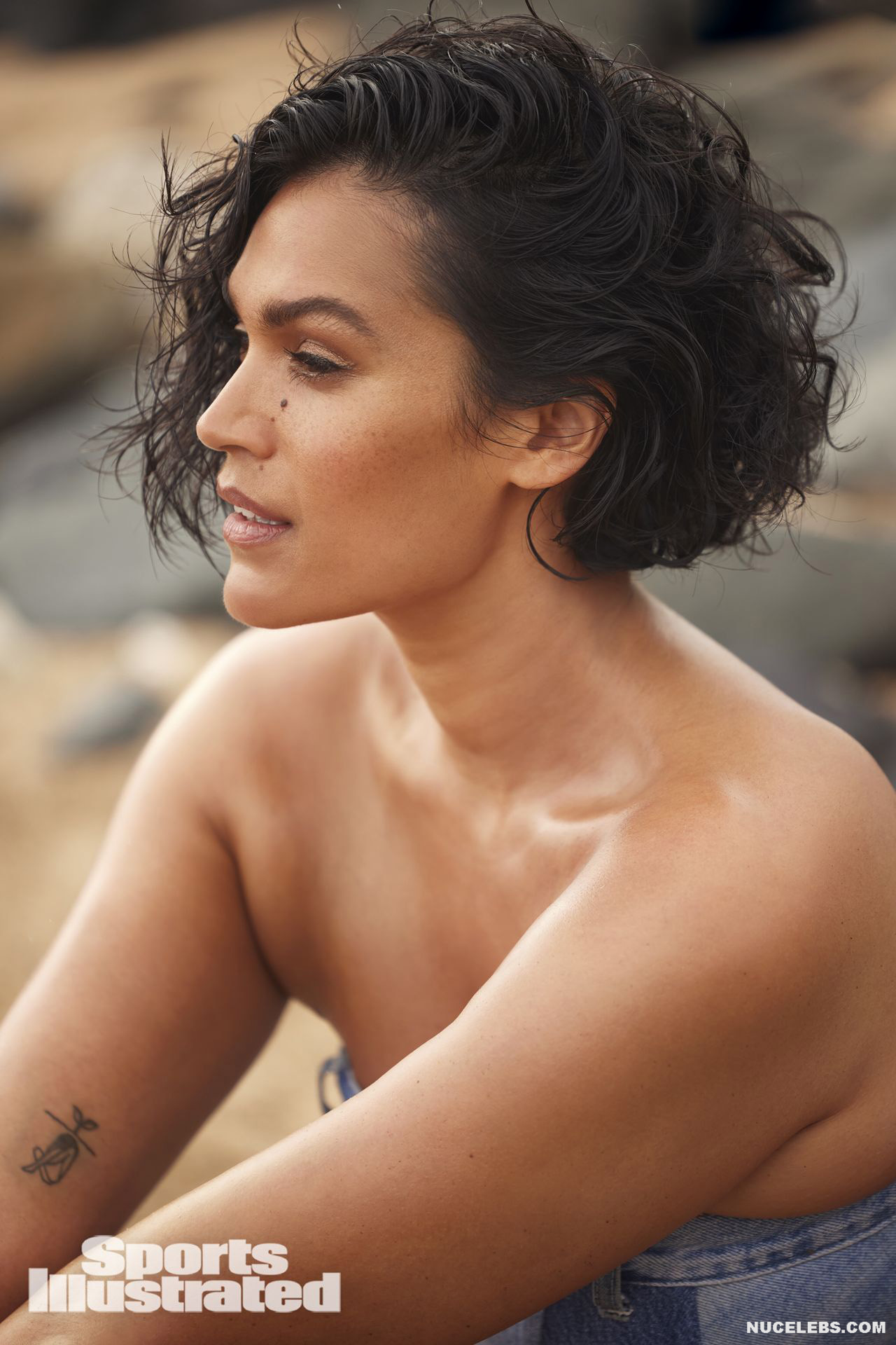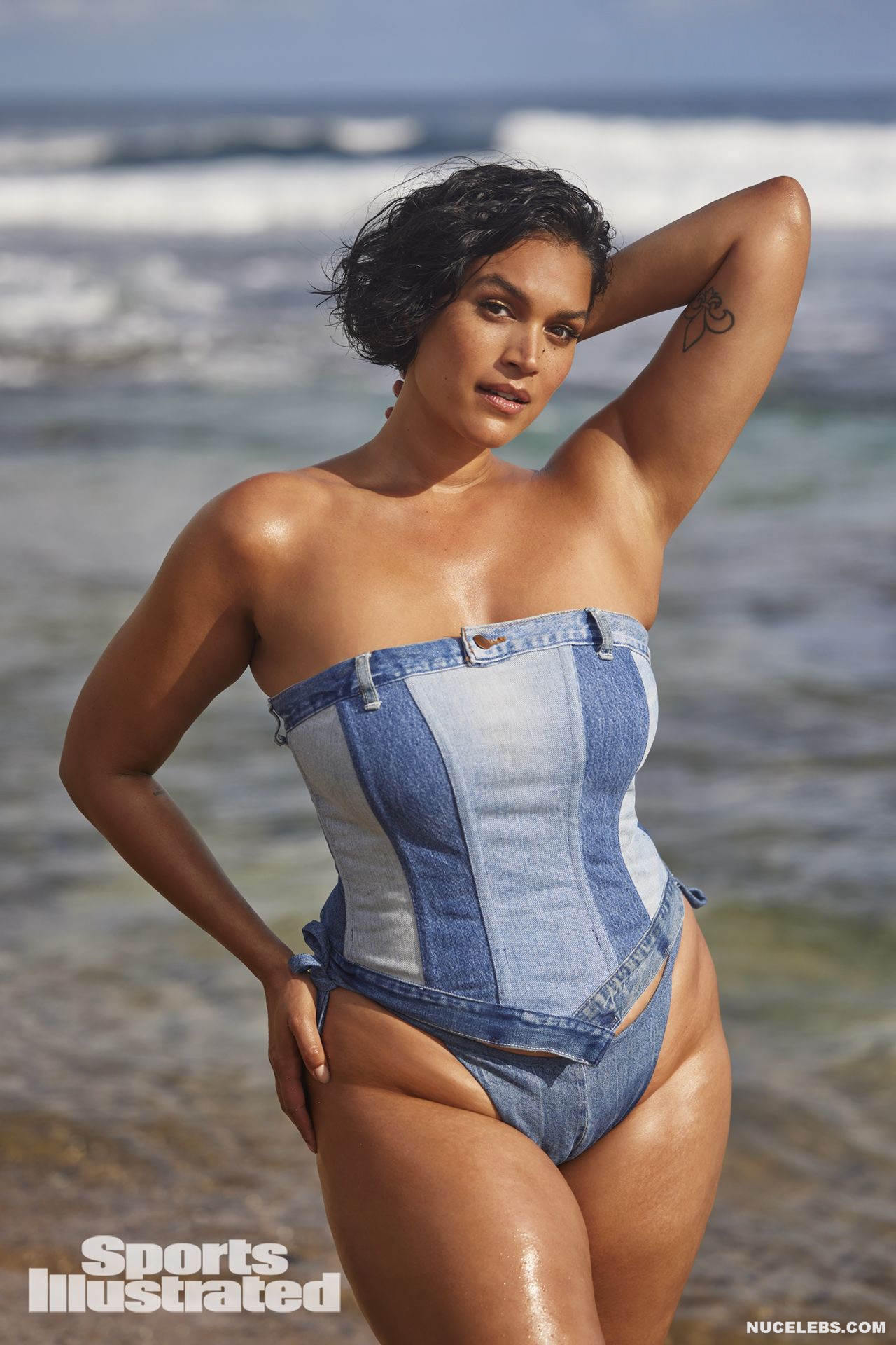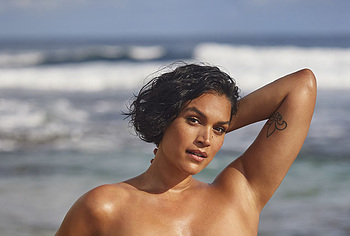 Jennifer Atilémile genuine beauty shines through in every photo in Sports Illustrated Swimsuit 2023. Her wavy chestnut hair frames her face delicately, while her expressive brown eyes convey a sense of sincerity. This celebrity was happy to show off her curvaceous figure in small bikinis, lying on the sand. At the same time, it seemed that Jennifer Atilémile’s nude big boobs were about to slip out of a miniature bra.