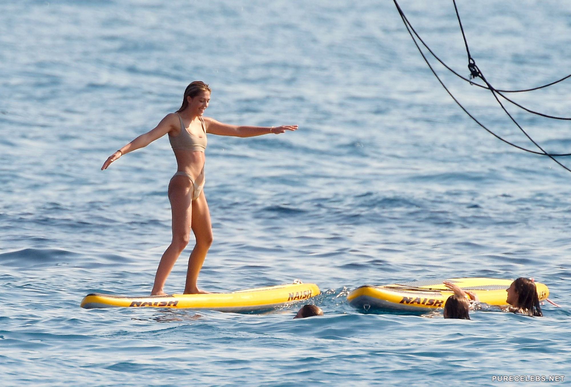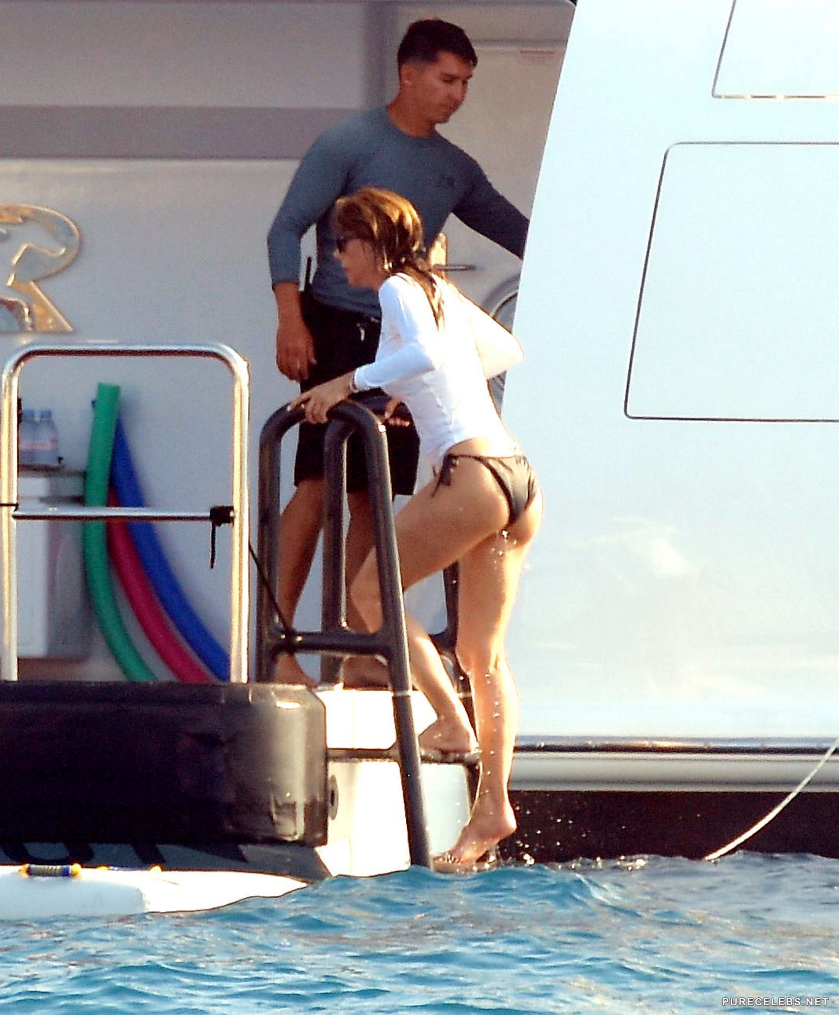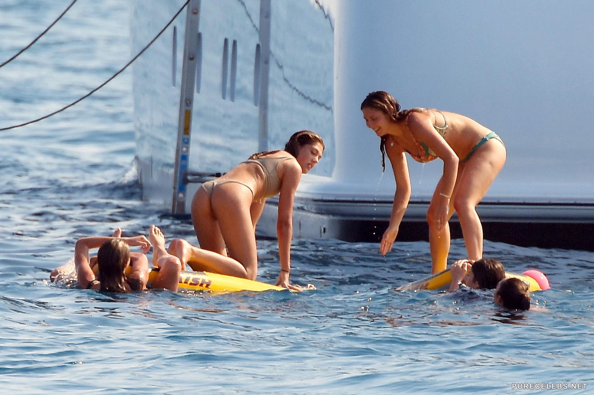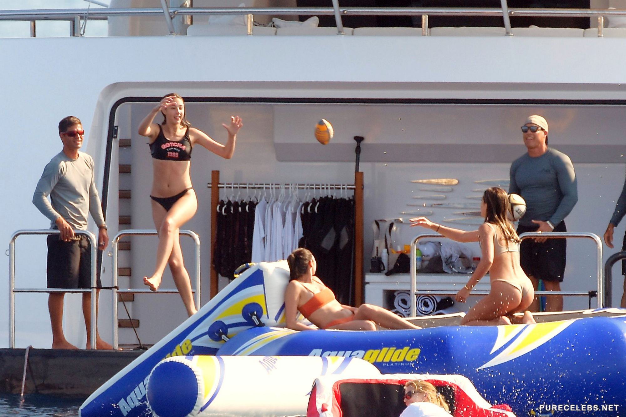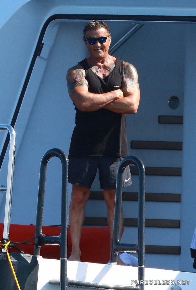 Sophia Sistine Stallone and Jennifer Flavin seemed like they were having a great time trying to balance on the water board while Silvester Stallone was on the yacht, being proud of his daughters good looks and persistence in doing the workout on a daily basis, even during a vacation. We like the way she showed her nice butt to paparazzi, who did not miss an opportunity to take great photos.