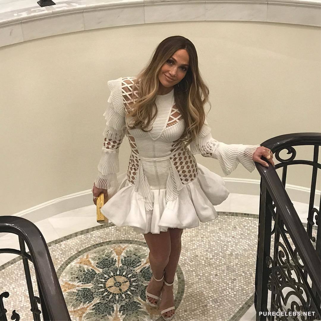 Jennifer Lopez has got her life on track, she is staring in a hit TV show and has a new boyfriend. Together they attended a promotional event where Jennifer wore a stunning miniature white dress. Before leaving for the party JLo took the time to snap a few selfies of her amazing long legs accidentally exposing her crotch to the camera. After arriving at the party she continued to happily pose for reporters.