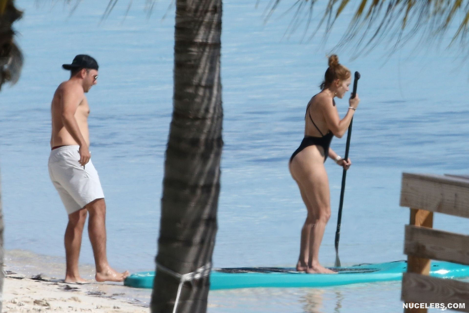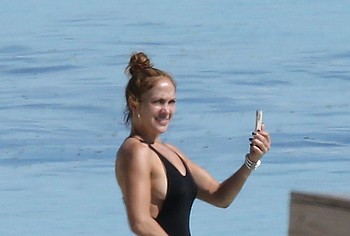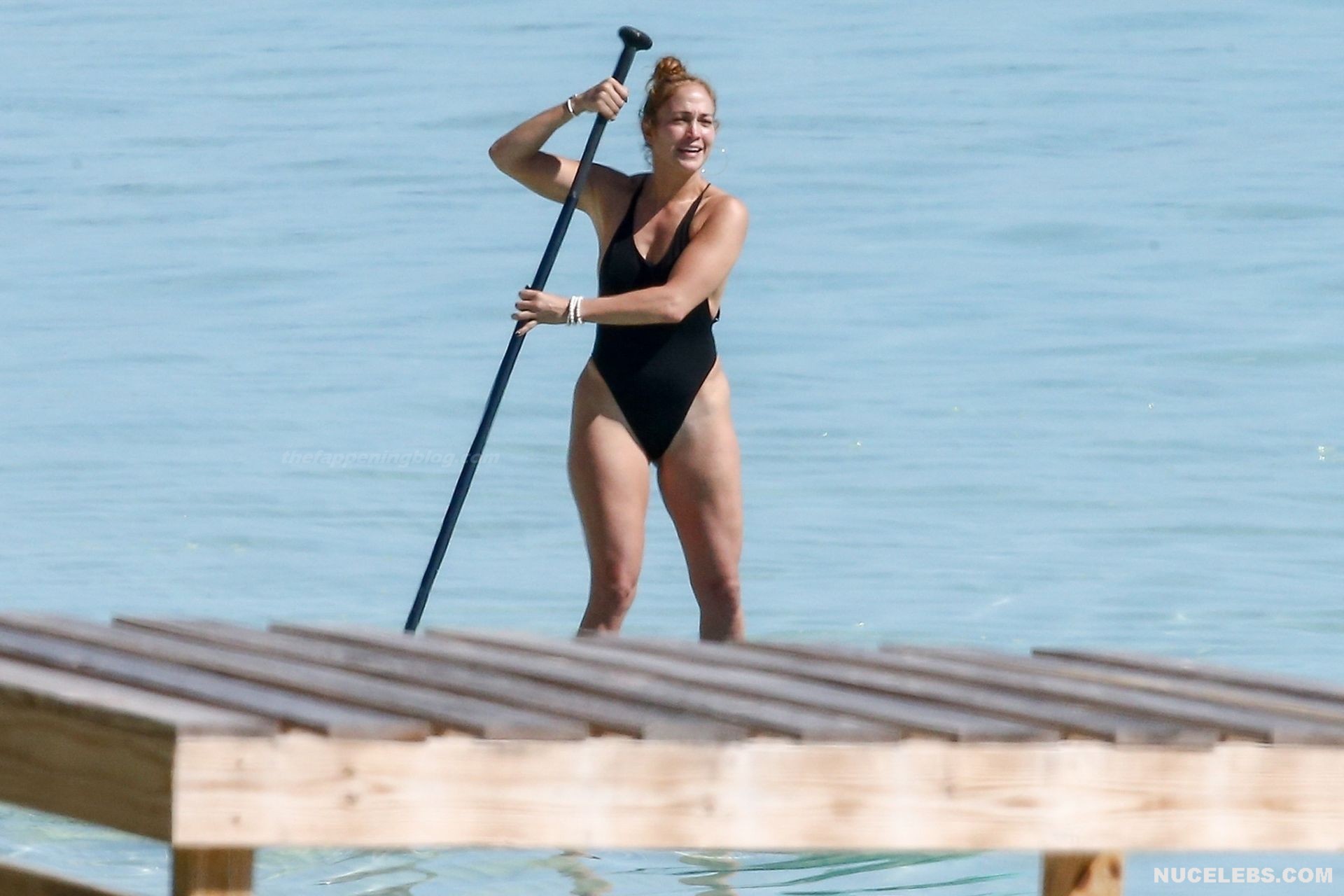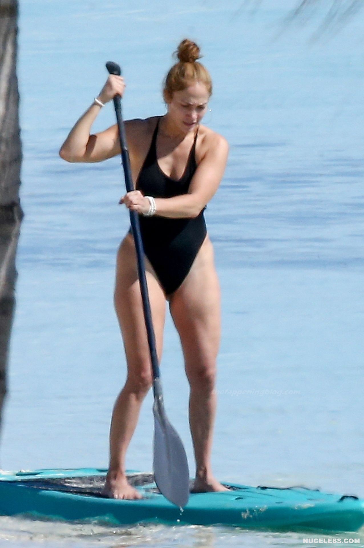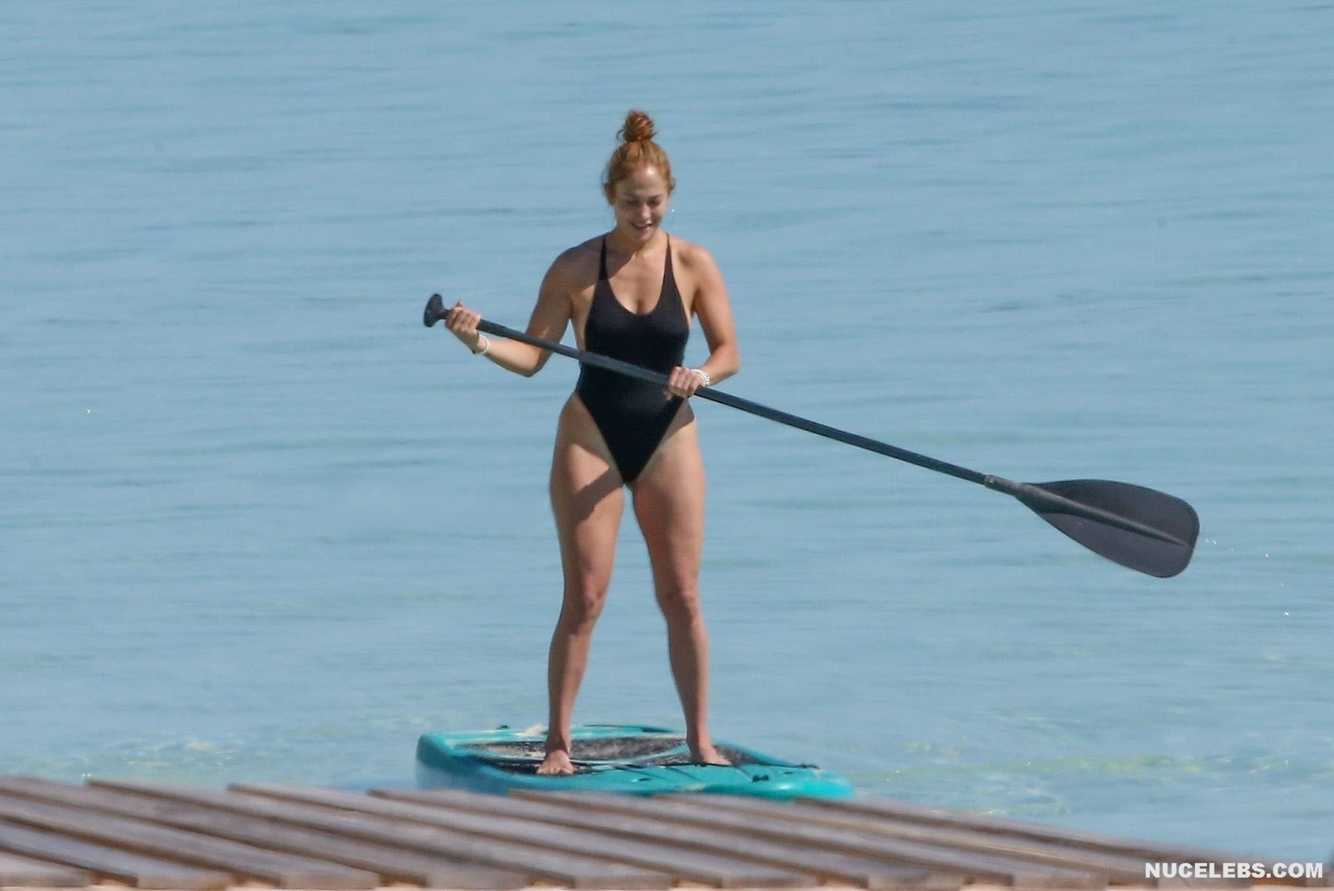 Photos of Jennifer Lopez’s almost nude ass will definitely lift your mood! The paparazzi photographed this American actress on the seashore with a paddle in hand. The celebrity looked just amazing. Jennifer Lopez was wearing a petite black swimsuit that barely hid her awesome big buttocks. Her titties also looked seductive, but still, it was impossible to look away from her peach posterior!