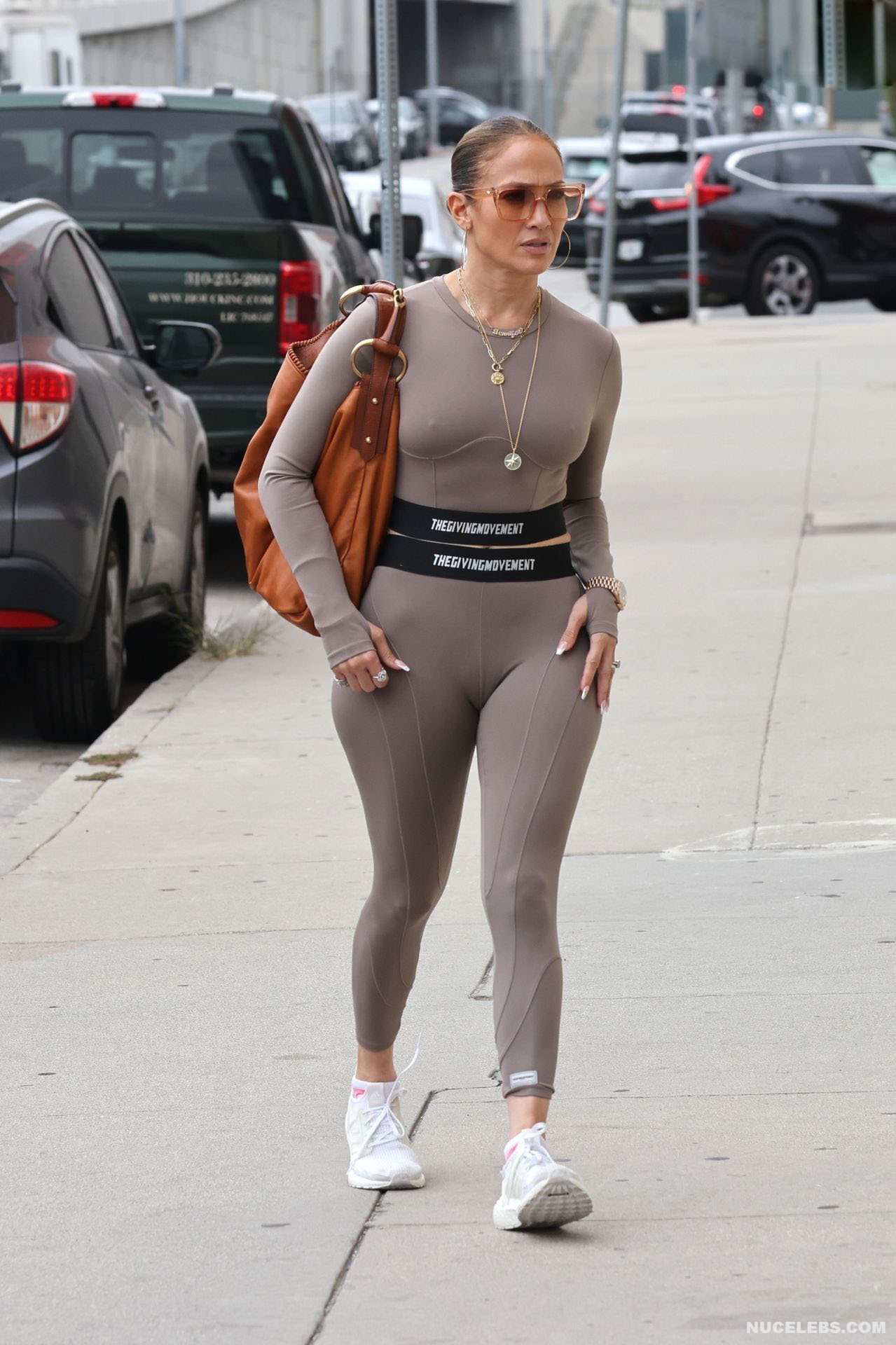 Jennifer Lopez once again boasted of her magnificent figure. Paparazzi photographed this celebrity on the street as she went about her business. This actress was wearing a gray jumpsuit, through which her nipples were visible. In addition, Jennifer Lopez cameltoe also looked amazing in this tight outfit…And of course, it was impossible to take your eyes off her big sweet booty!