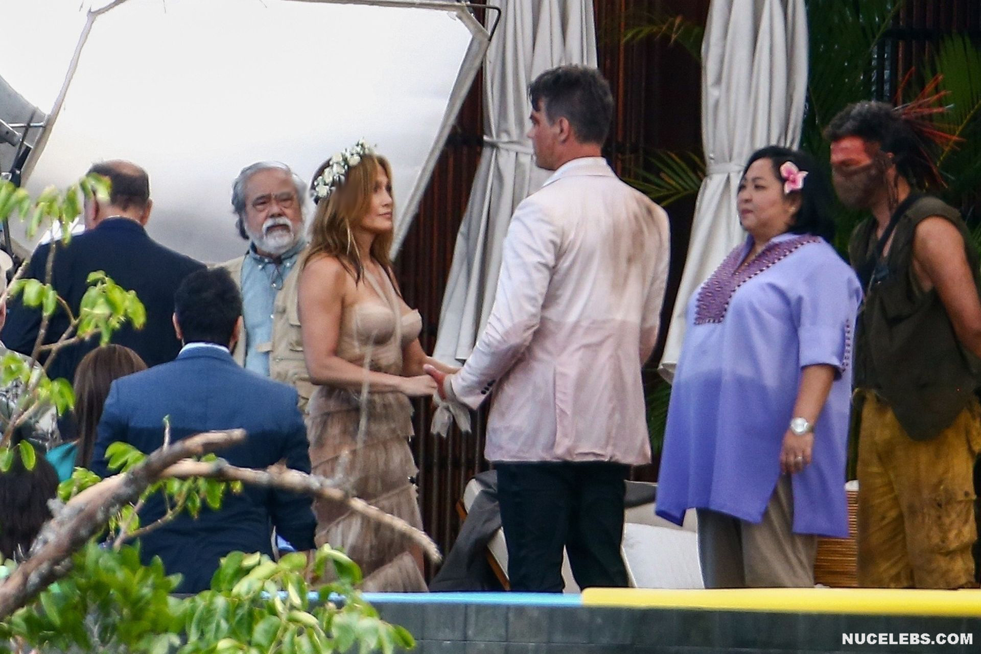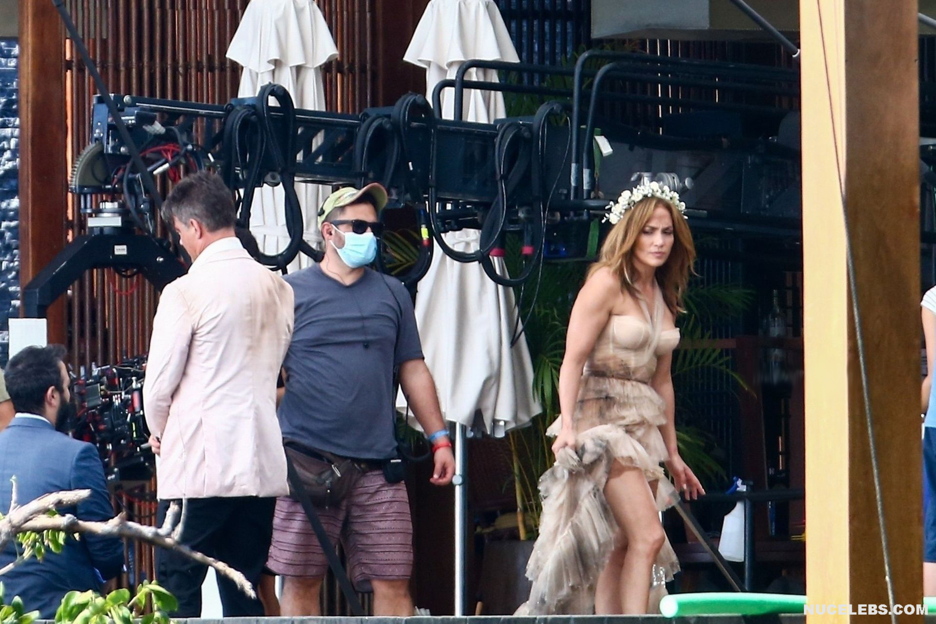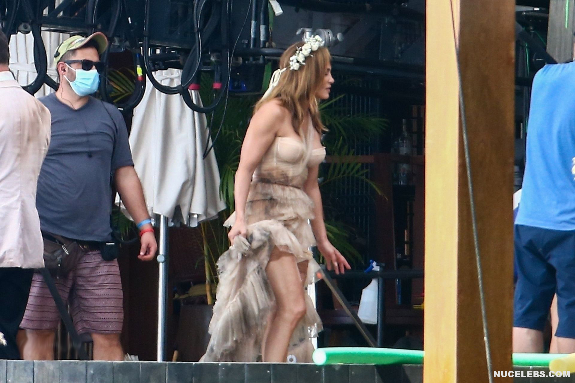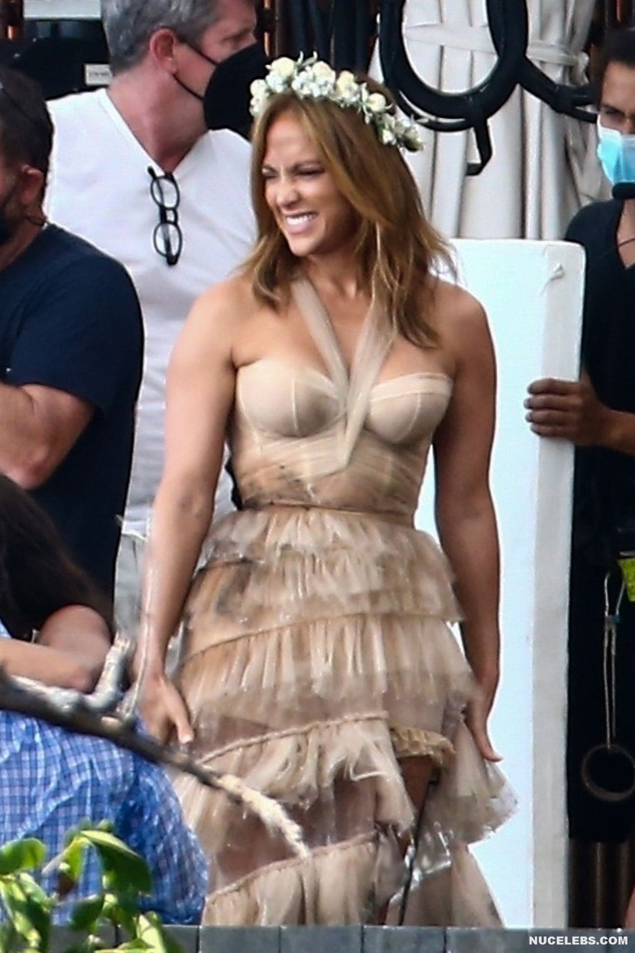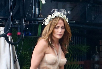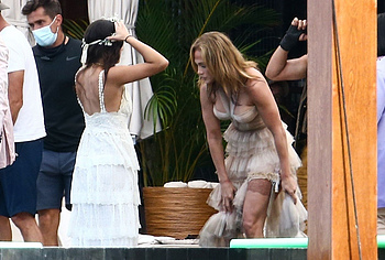 Jennifer Lopez will be featured in the upcoming film Shotgun Wedding soon. In the meantime, you can admire the shots with this beauty, which were made on the set. Needless to say, Jennifer Lopez looked gorgeous and incredibly sexy as always. No, Jennifer Lopez was not completely nude, but she looked very seductive in her outfit. The celebrity wore an ivory gown that was rather short. That is why the slender legs of a celebrity in stockings peeked out from under it, forcing various sexual fantasies to come to your head.