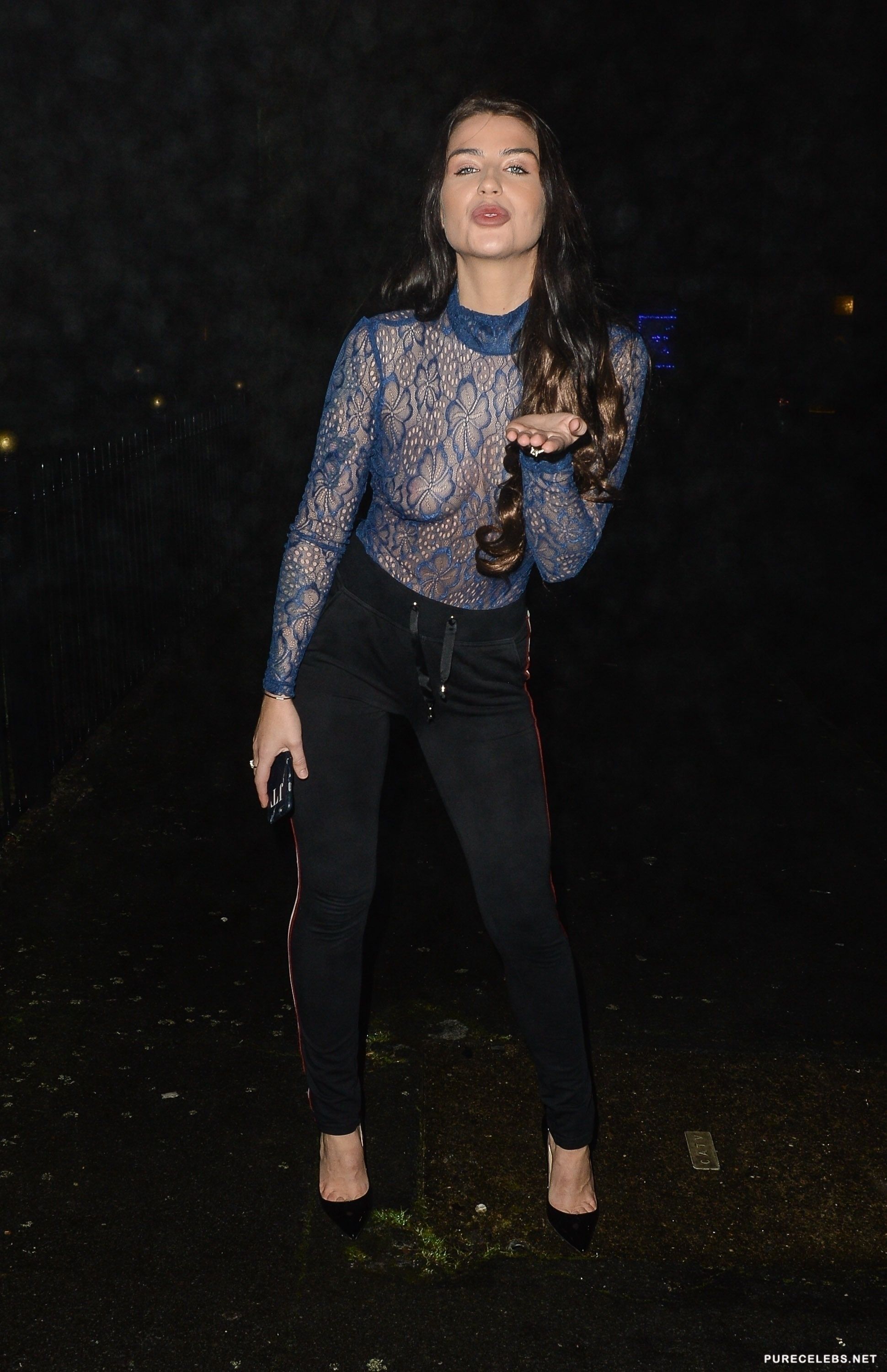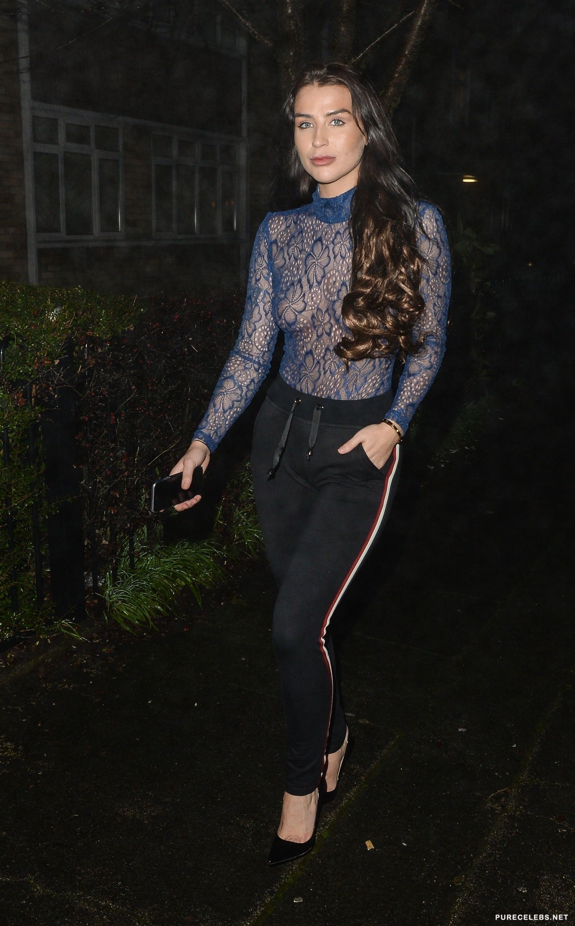 When celebrities appear on the red carpet, you can expect some lovely outfits. One good example is the outfit that Jenny Thompson was wearing to a recent promotional event. Her blue top was completely lacy and of course Jenny failed to wear a bra under it. This allowed reporters to get some premium shots of her amazing tits. Her natural boobs look completely stunning in the tight top as he perky nipples poke through her shirt.