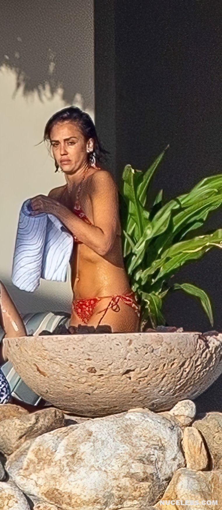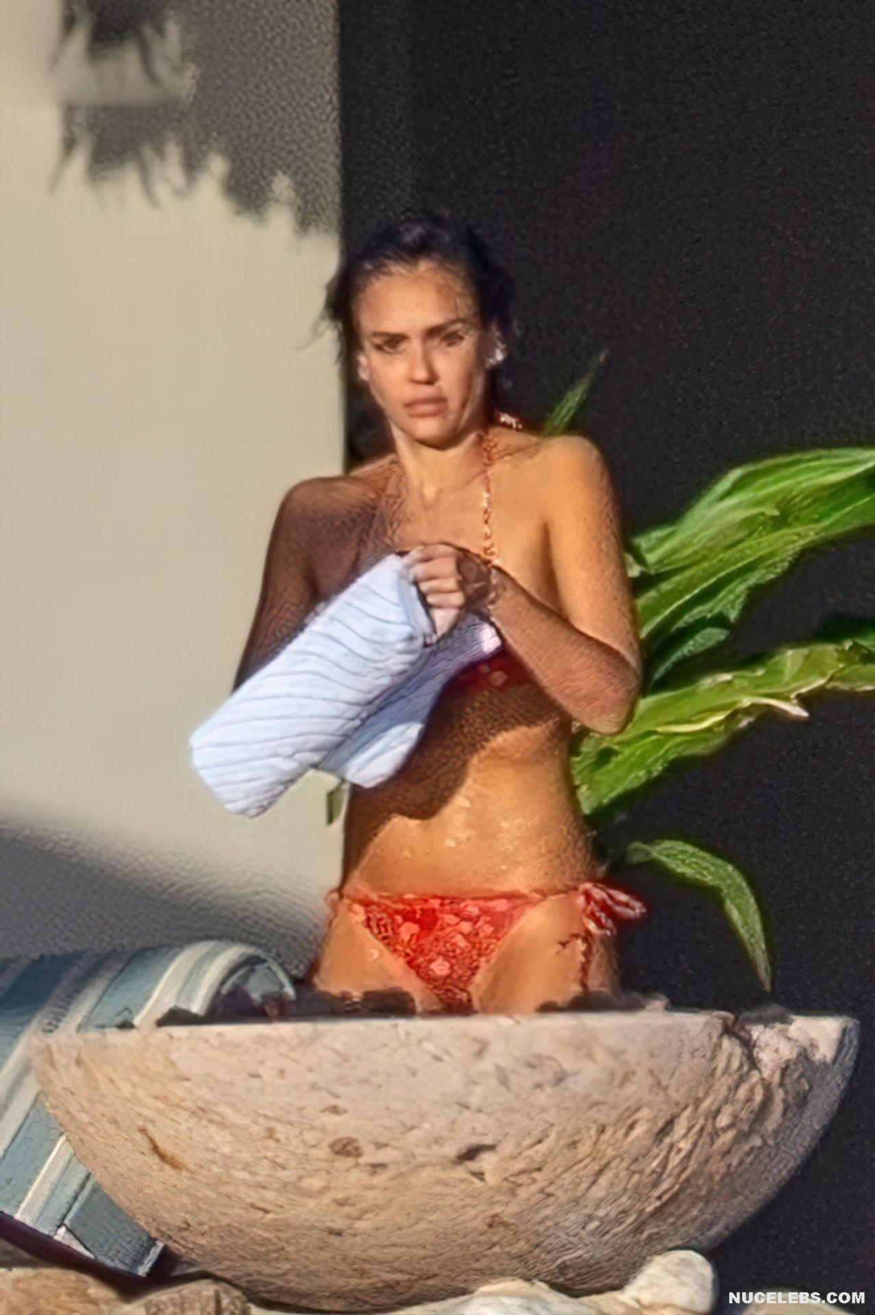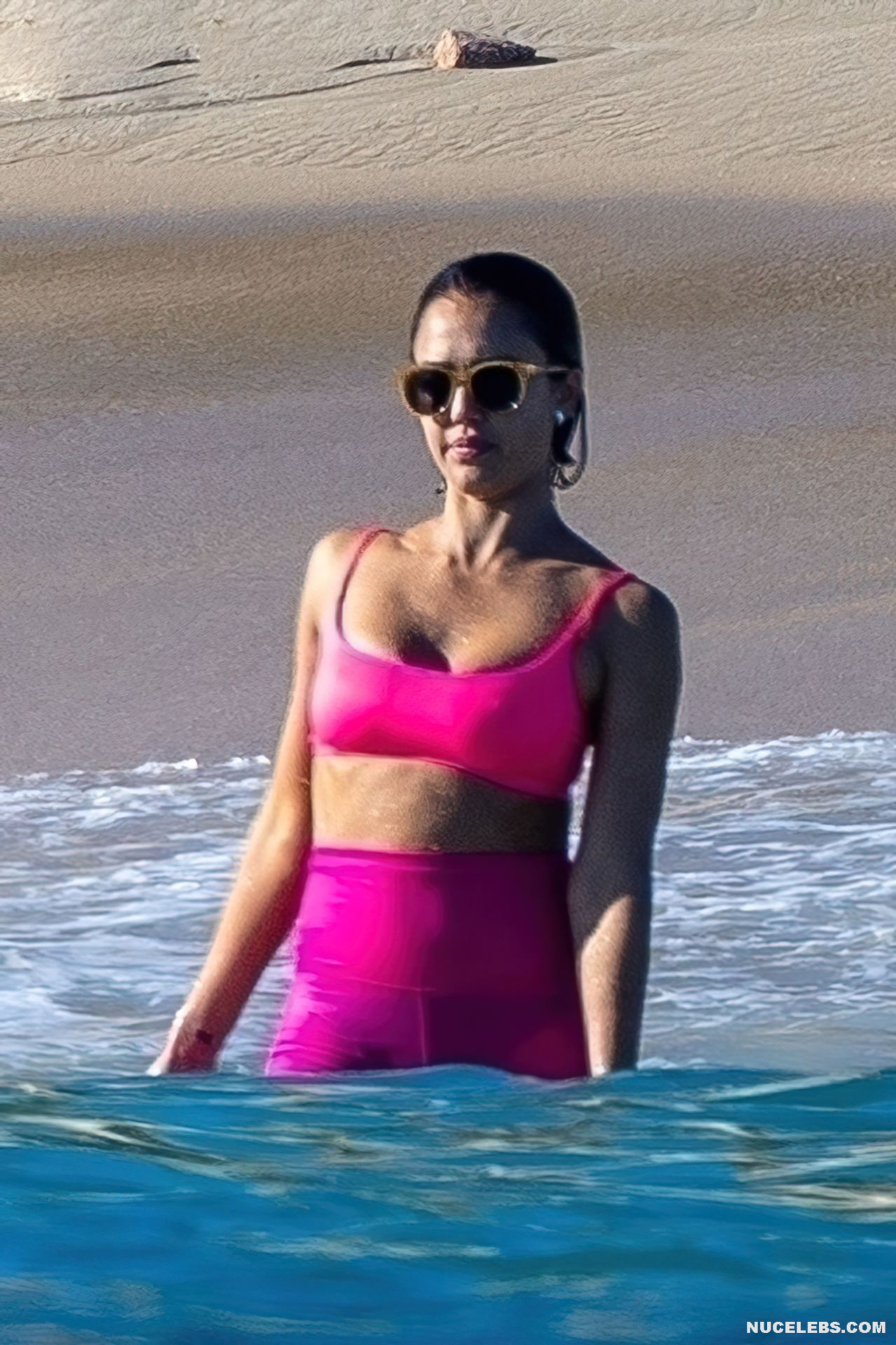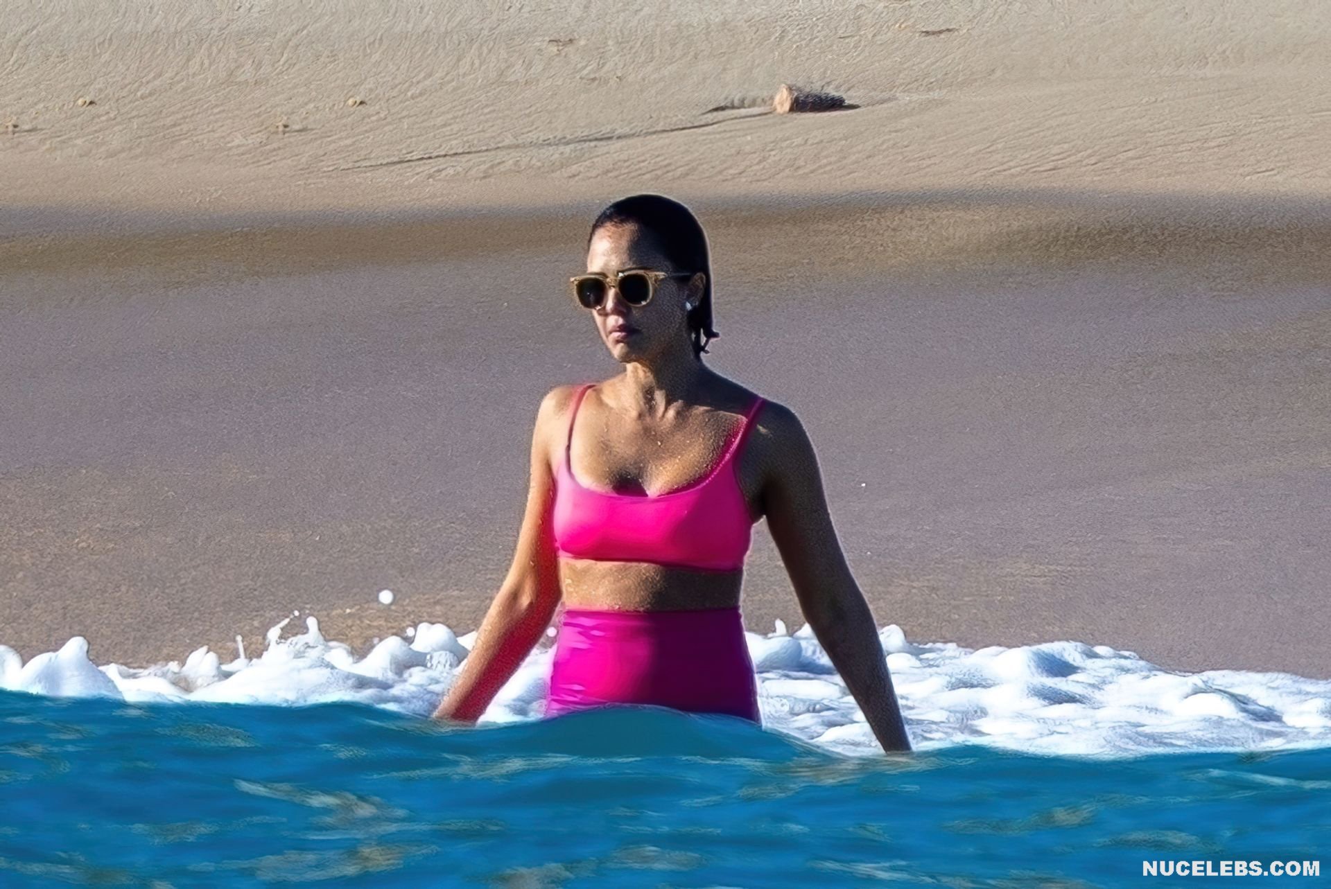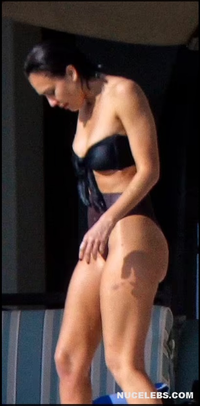 Jessica Alba has an amazing figure. Especially her butt in wet bikini looks tempting. So start admiring Jessica Alba, although not nude, but very hot photos that we have prepared for you. Here, this girl in a bright pink bikini emerges from the sea. At the same time, the wet panties began to show through and Jessica Alba’s nude ass was visible through them. This actress also sported almost bare buttocks when she walked along the beach in a brown thong.