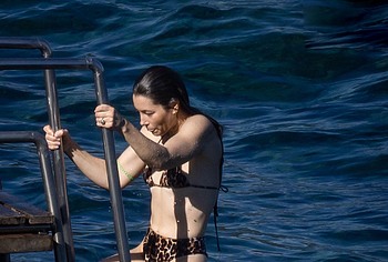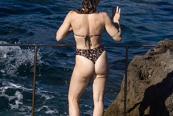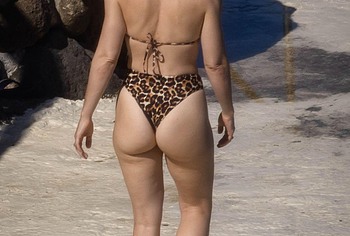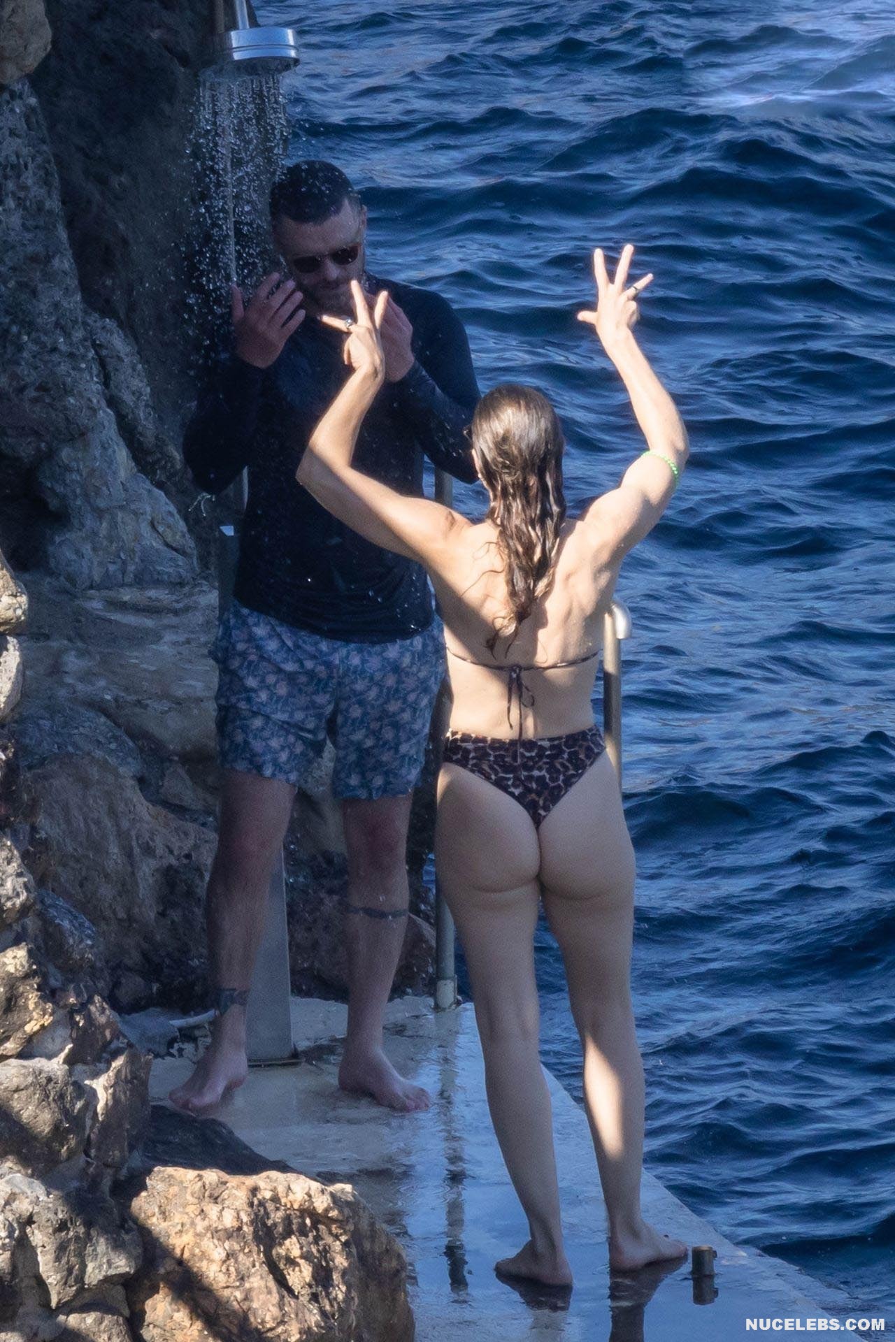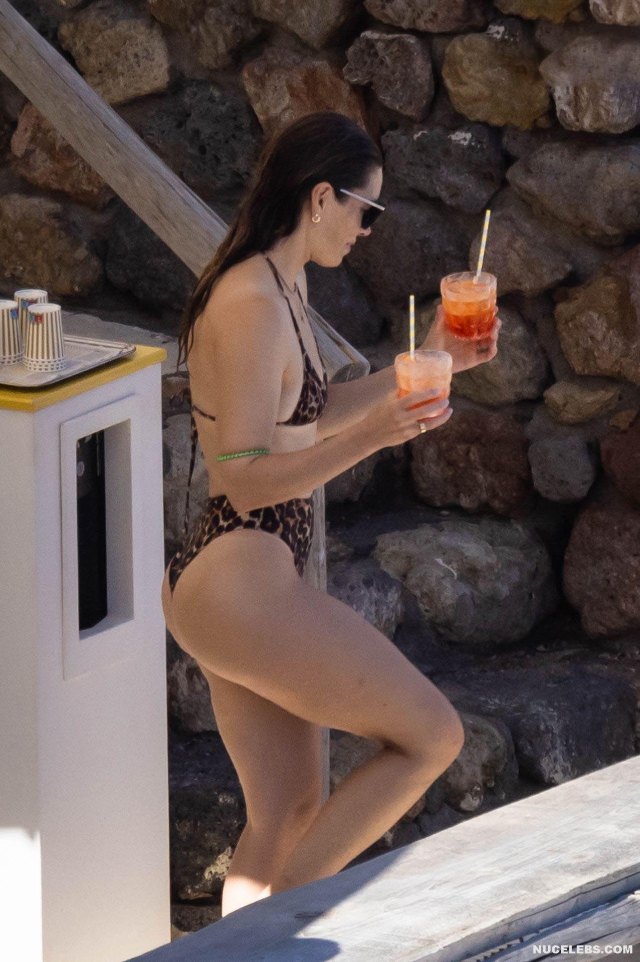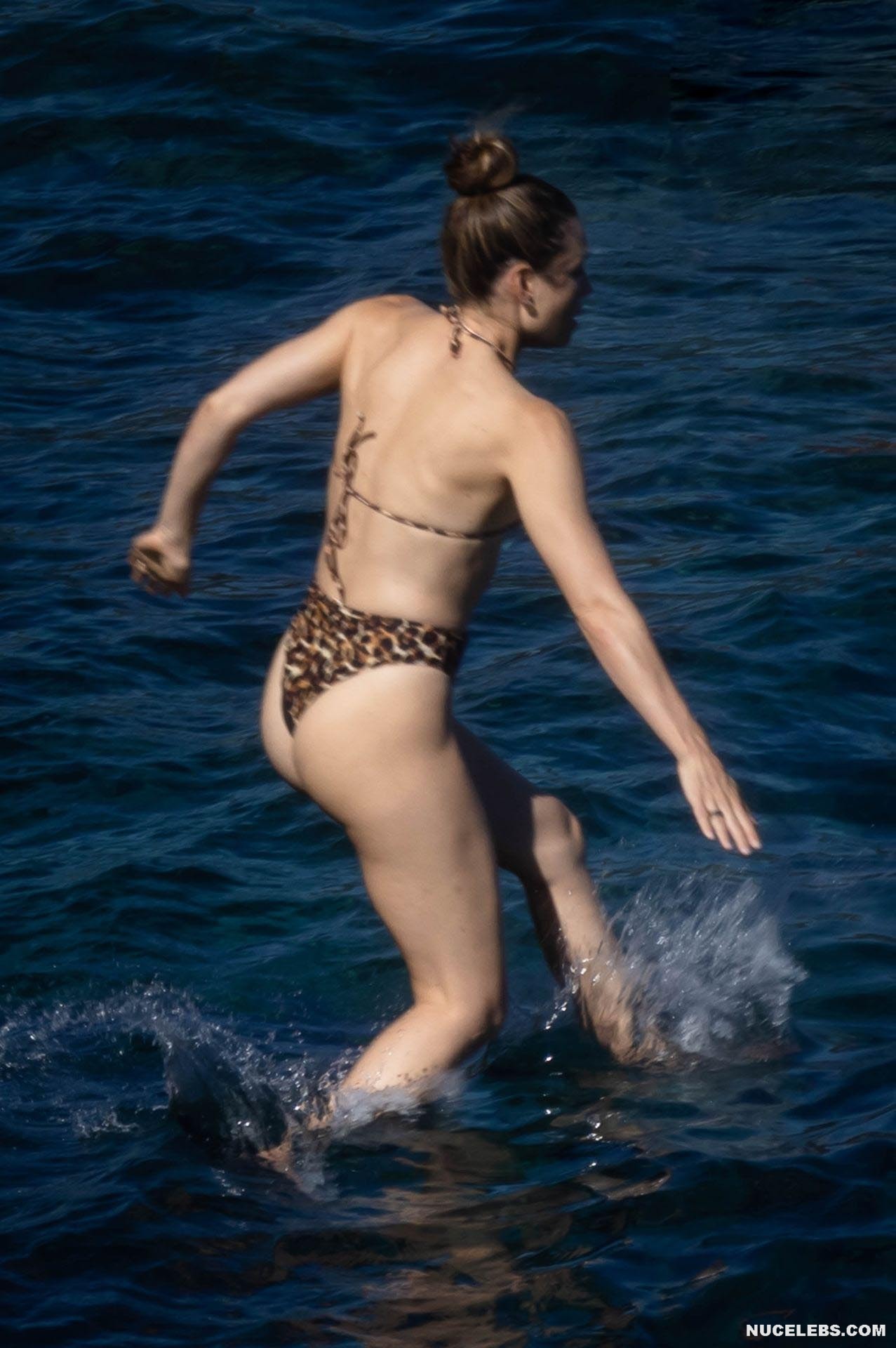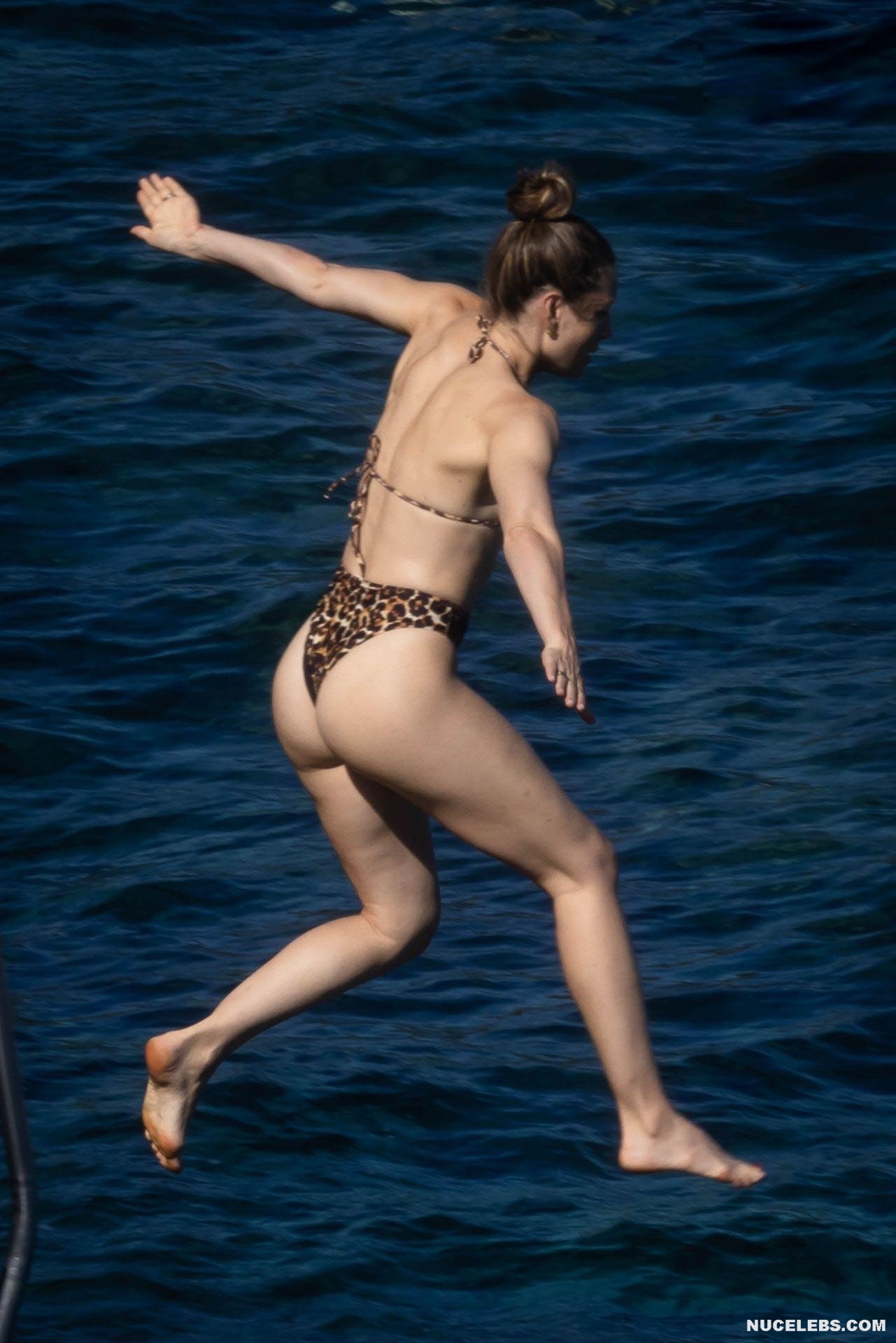 It’s time to admire Jessica Biel’s cool figure in a leopard bikini. Her high-waisted, tight-fitting panties perfectly emphasized her chic, rounded booty. And her tiny titties in a small bra looked very seductive, especially in those moments when she bent over. Well, let’s hope that next time Jessica Biel takes the risk of tanning topless!