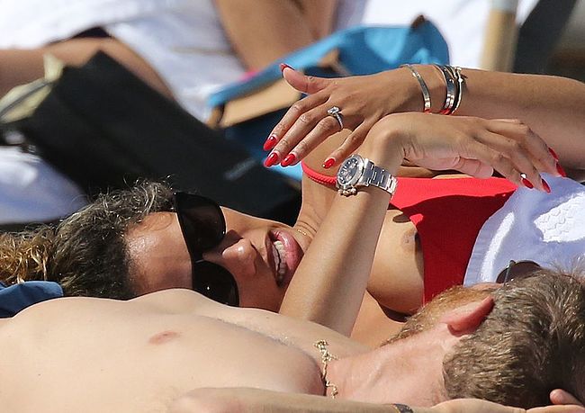 Jessica Ledon was spotted relaxing on the beach. This celebrity felt confident enough to wear defiant red swimsuit showing off her gorgeous figure. Her ass in red thongs looks very seductive, asking to grope it. Her breasts look charming and almost jump out of a bathing suit leaving space for your sexual fantasy with them.