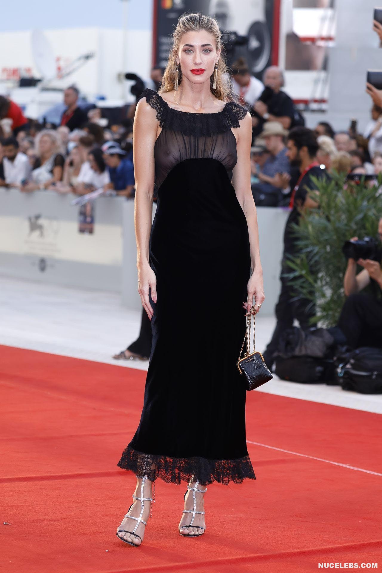 Jessica Serfaty looked stunning as she appeared on the red carpet in a tight black dress. By the way, this blonde decided not to wear a bra that time. And so Jessica Serfaty nude tits with big nipples were visible through the transparent insert of her dress! Well, this celebrity really has something to brag about, because her breasts looked so juicy and seductive!