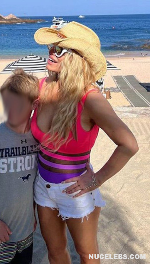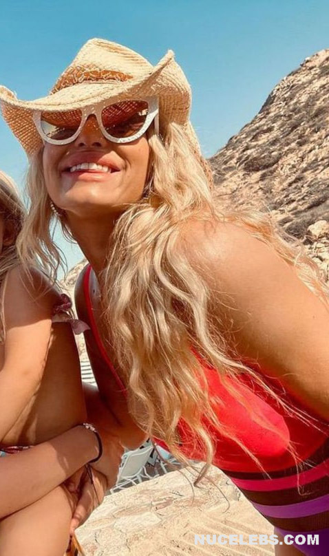 Sweet blonde Jessica Simpson is in no hurry to show her nude body to everyone around. However, this 41-year-old singer loves to stir the public’s imagination with her bikini photos. At the same time, skimpy panties almost do not cover Jessica Simpson’s nude ass! Check out her selfie in a golden bikini, big hat and sunglasses. Jessica Simpson looked really hot, didn’t she?