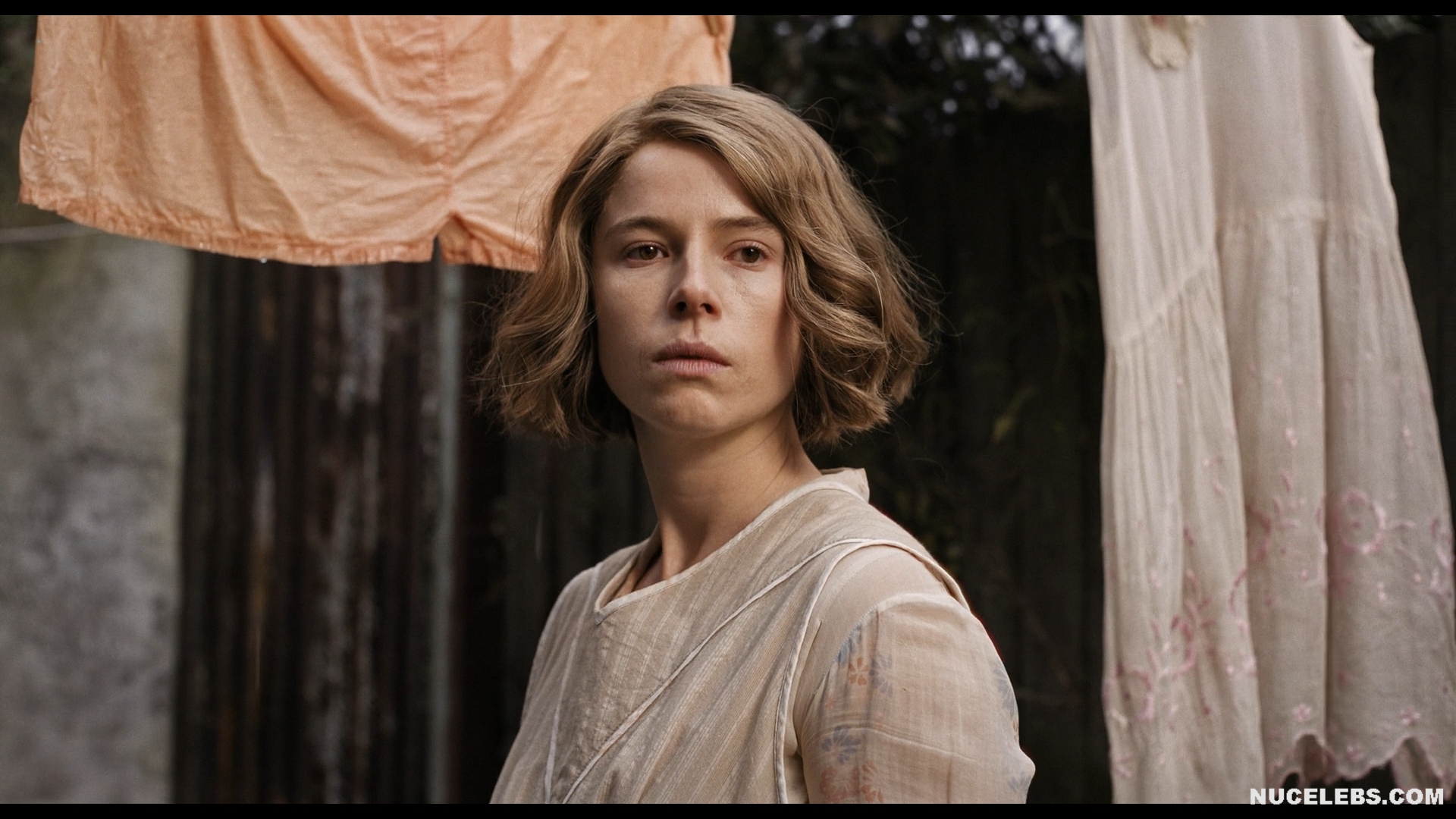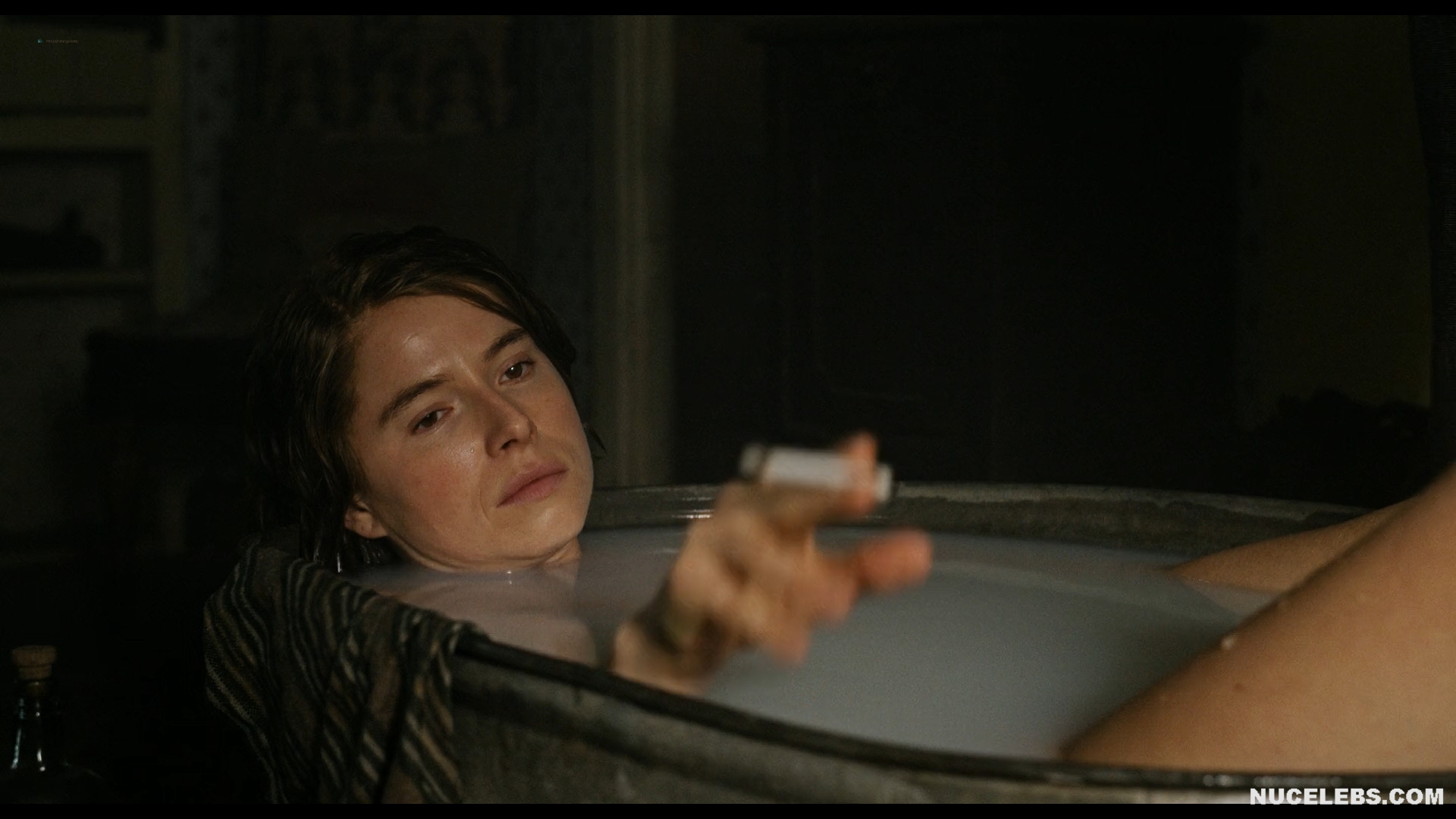 Jessie Buckley acting skills in Wicked Little Letters (2023) are superb! In one scene, this celebrity was taking a bath and enjoying the way a black man massaged her feet. And in another scene, Jessie Buckley’s nude booty was on display! This actress decided to attract the attention of officers on the street. She couldn’t think of anything better than to lift up her dress and then start running away from them. Well, Jessie Buckley’s nude ass made the right impression and all the men rushed to catch up with this beauty.