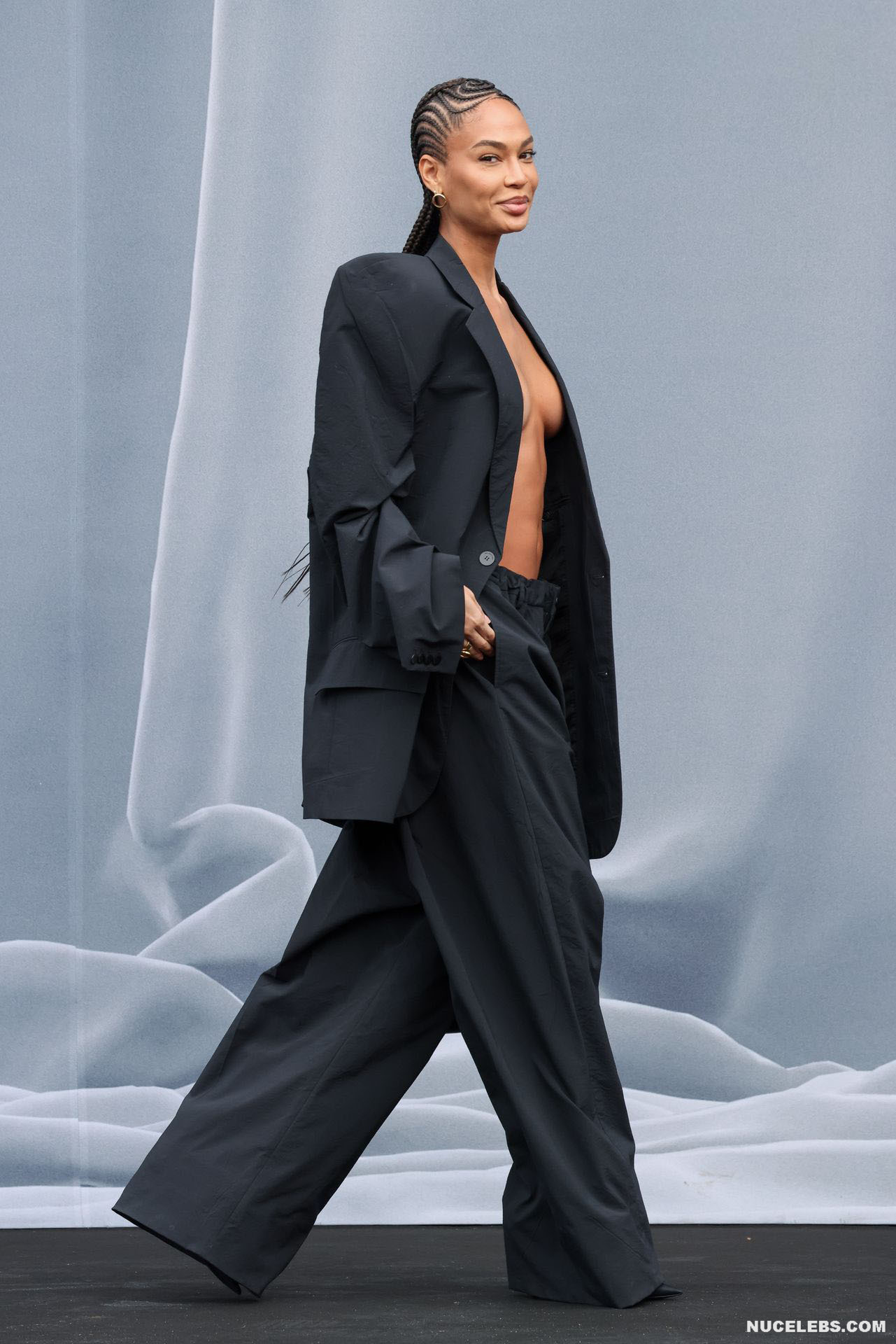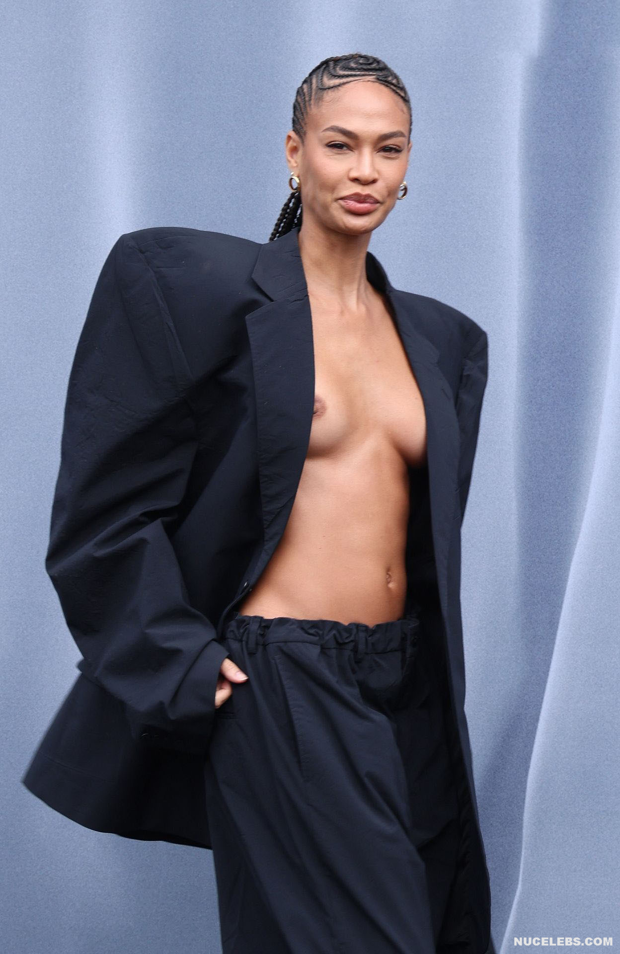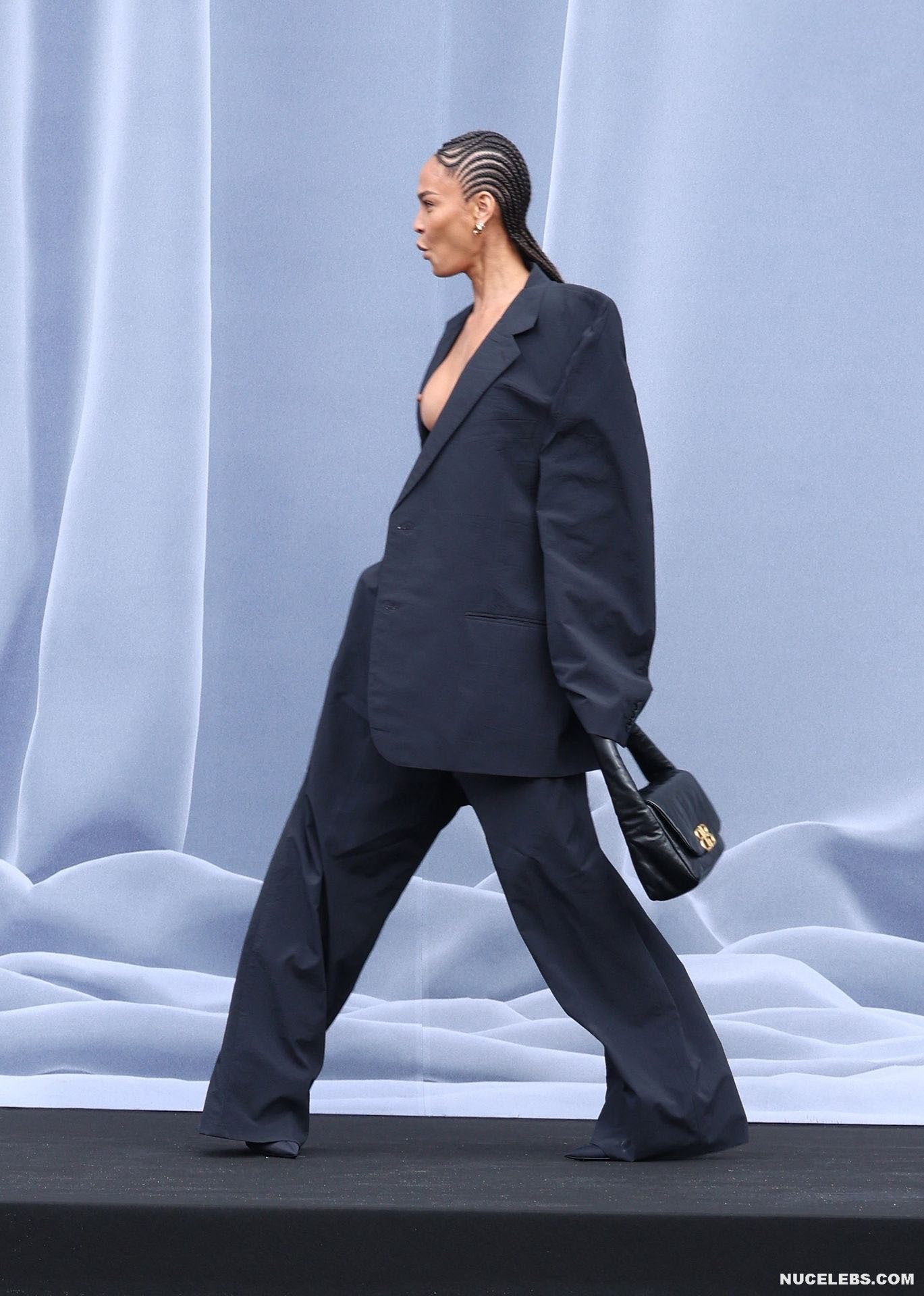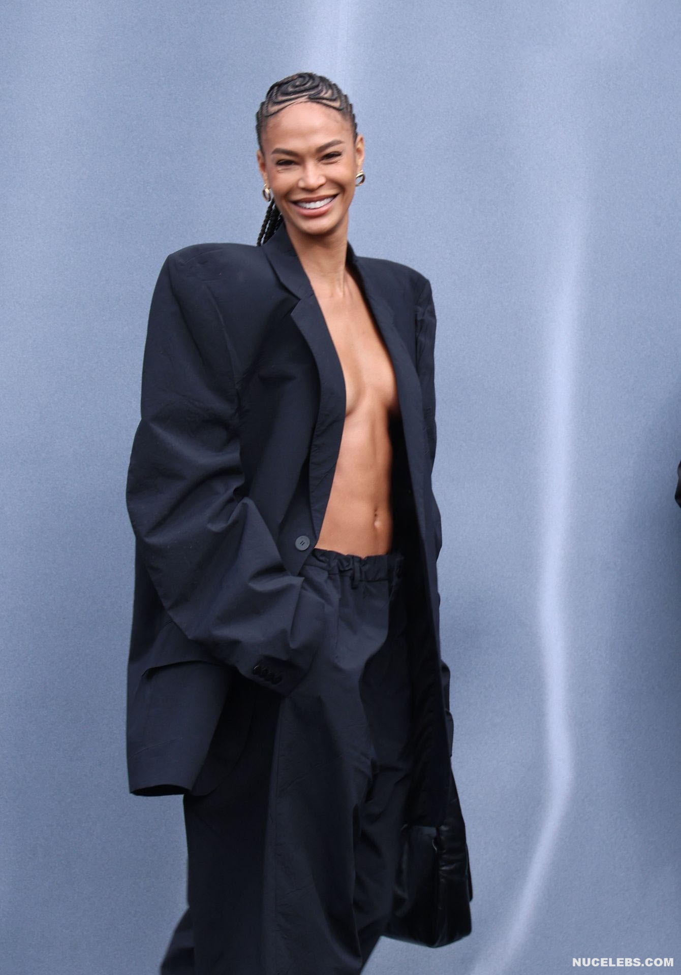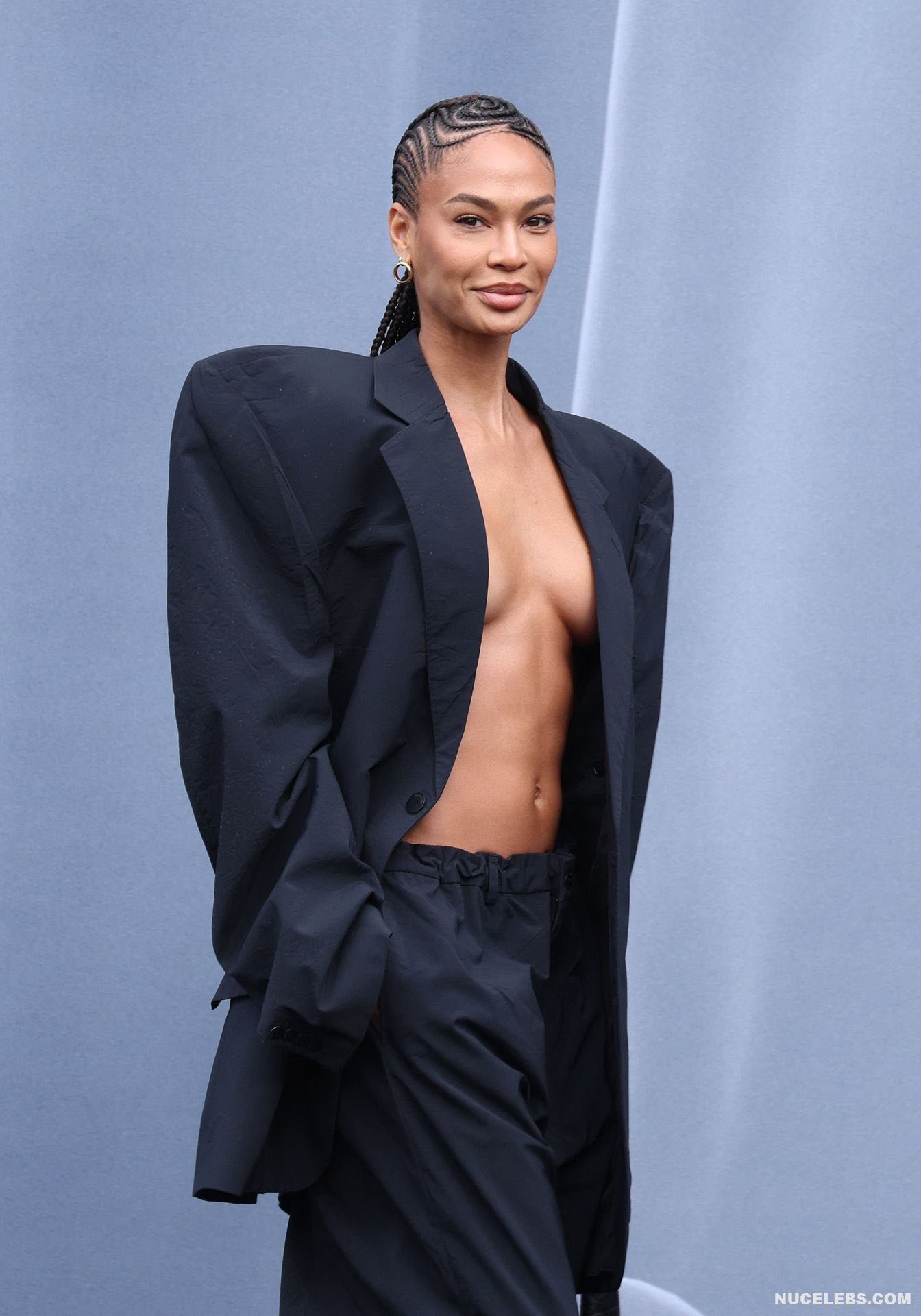 You won’t be able to take your eyes off Joan Smalls nude boobies that she flaunted during the show. This Puerto Rican model appeared in public in an oversized business suit. Her slender hips were hidden under black wide pants. But Joan Smalls nude tits with small nipples periodically peeked out from her unbuttoned jacket. And this undoubtedly brought the audience into ecstasy!