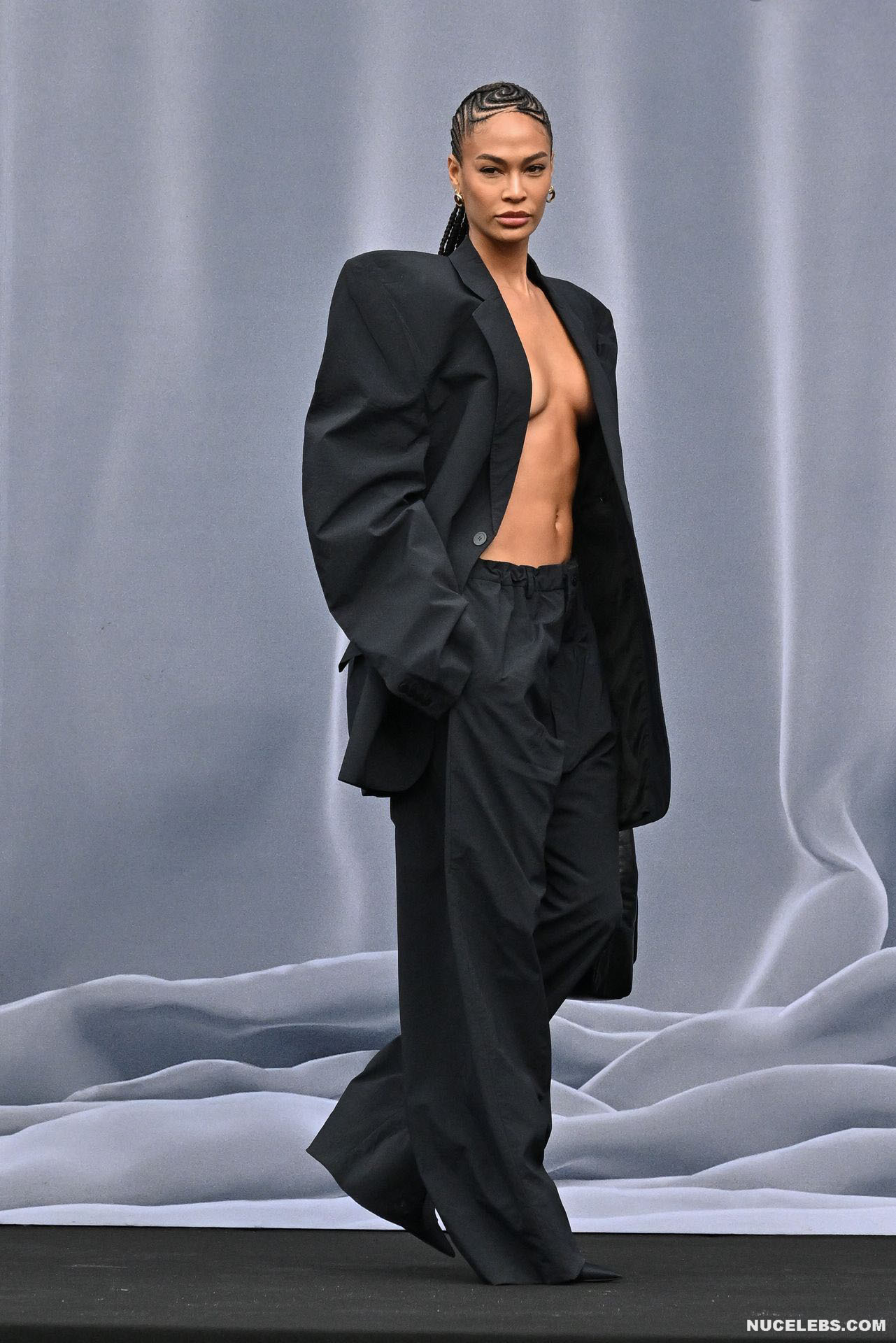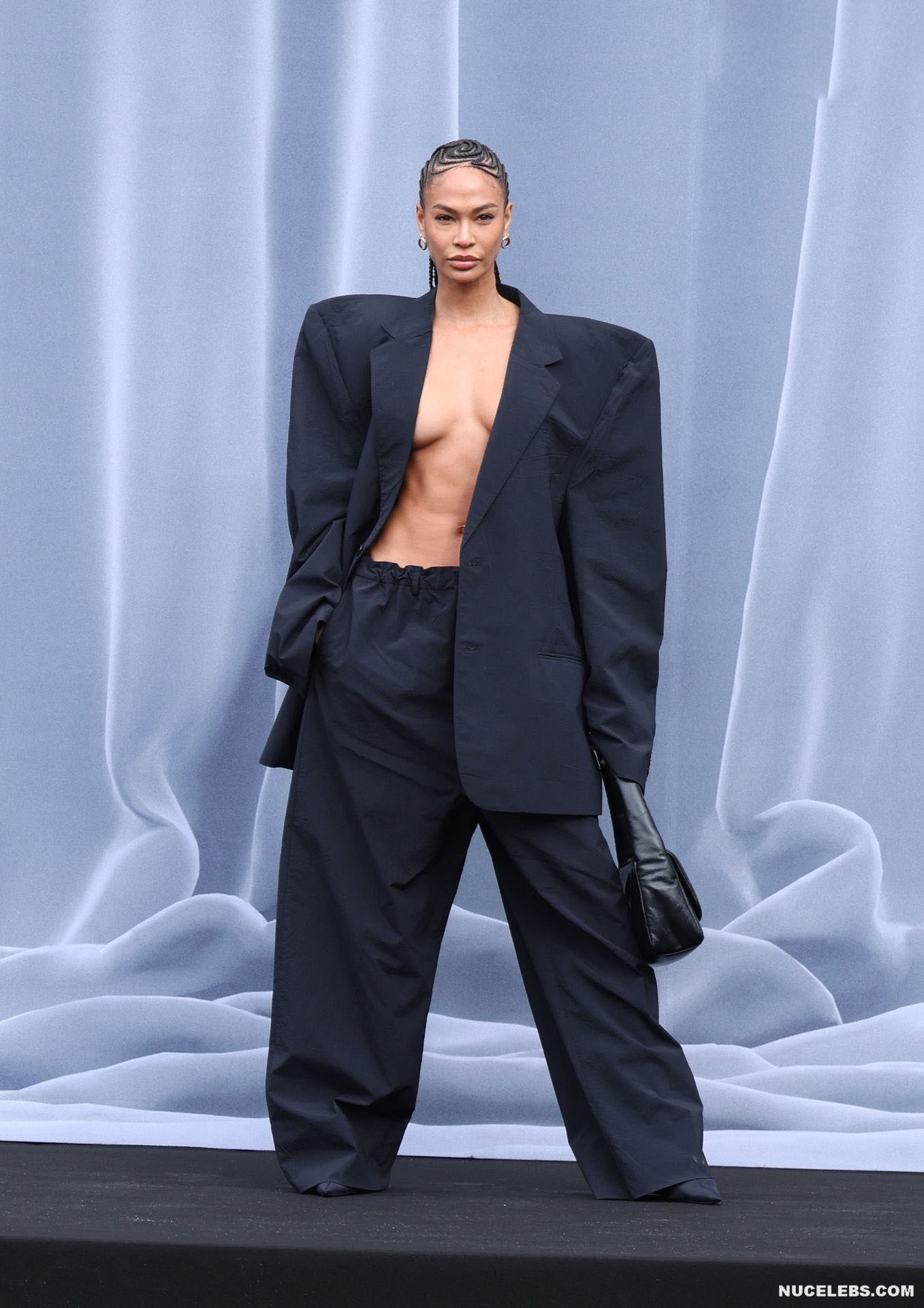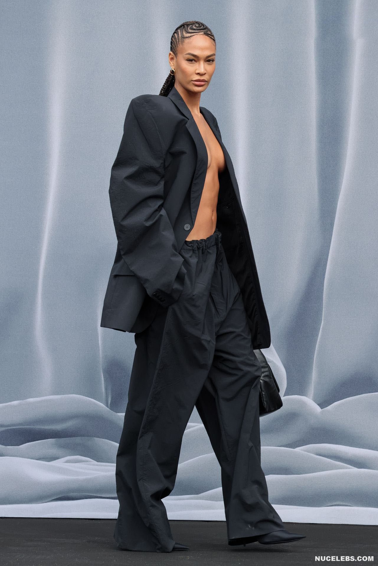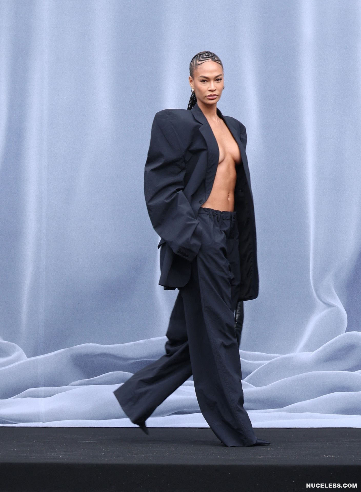 You won’t be able to take your eyes off Joan Smalls nude boobies that she flaunted during the show. This Puerto Rican model appeared in public in an oversized business suit. Her slender hips were hidden under black wide pants. But Joan Smalls nude tits with small nipples periodically peeked out from her unbuttoned jacket. And this undoubtedly brought the audience into ecstasy!