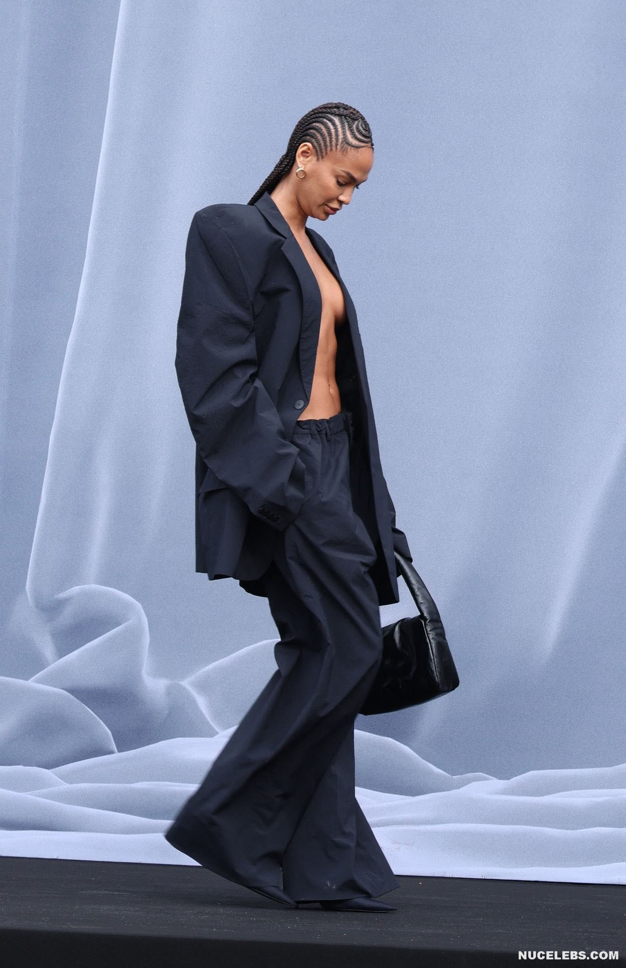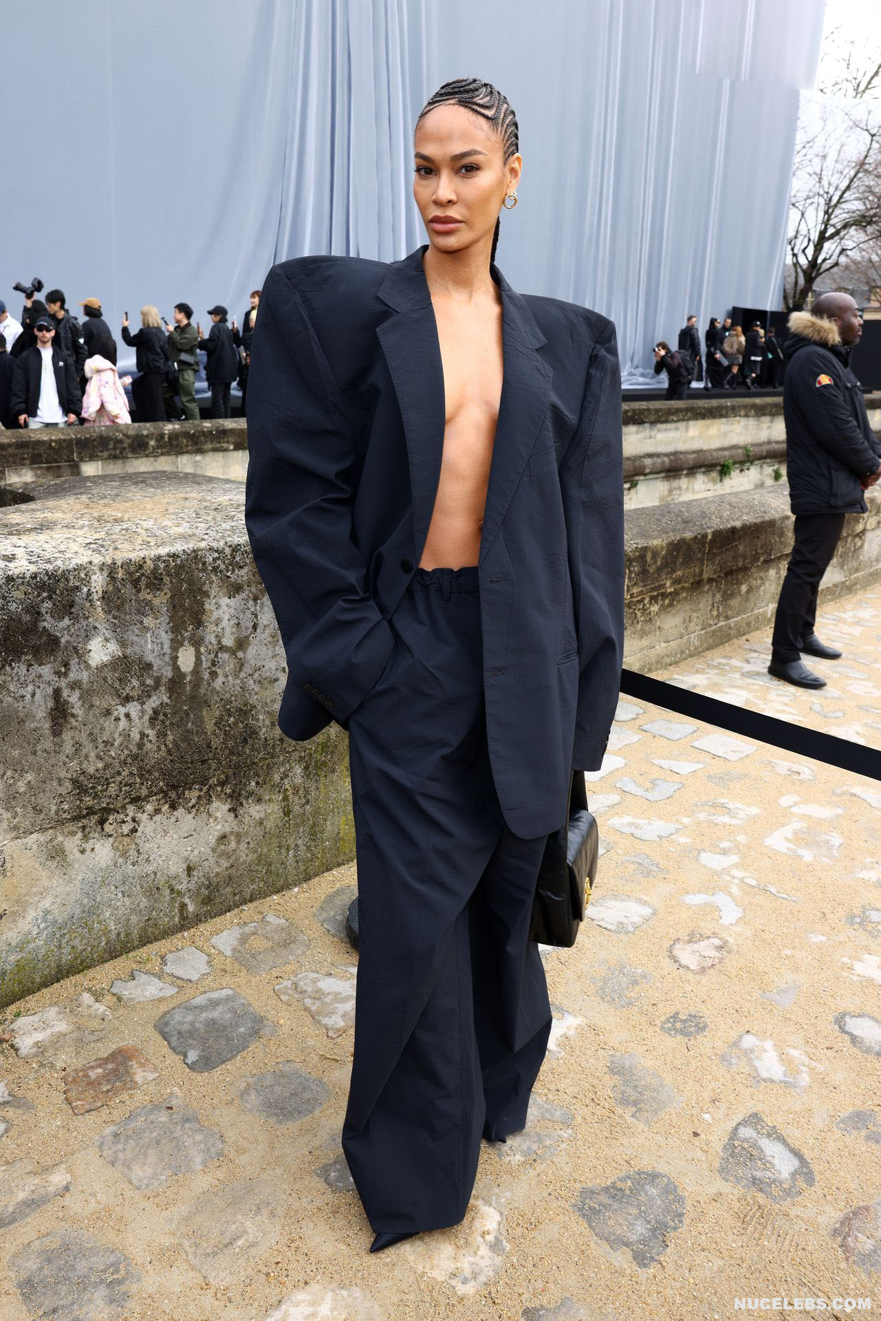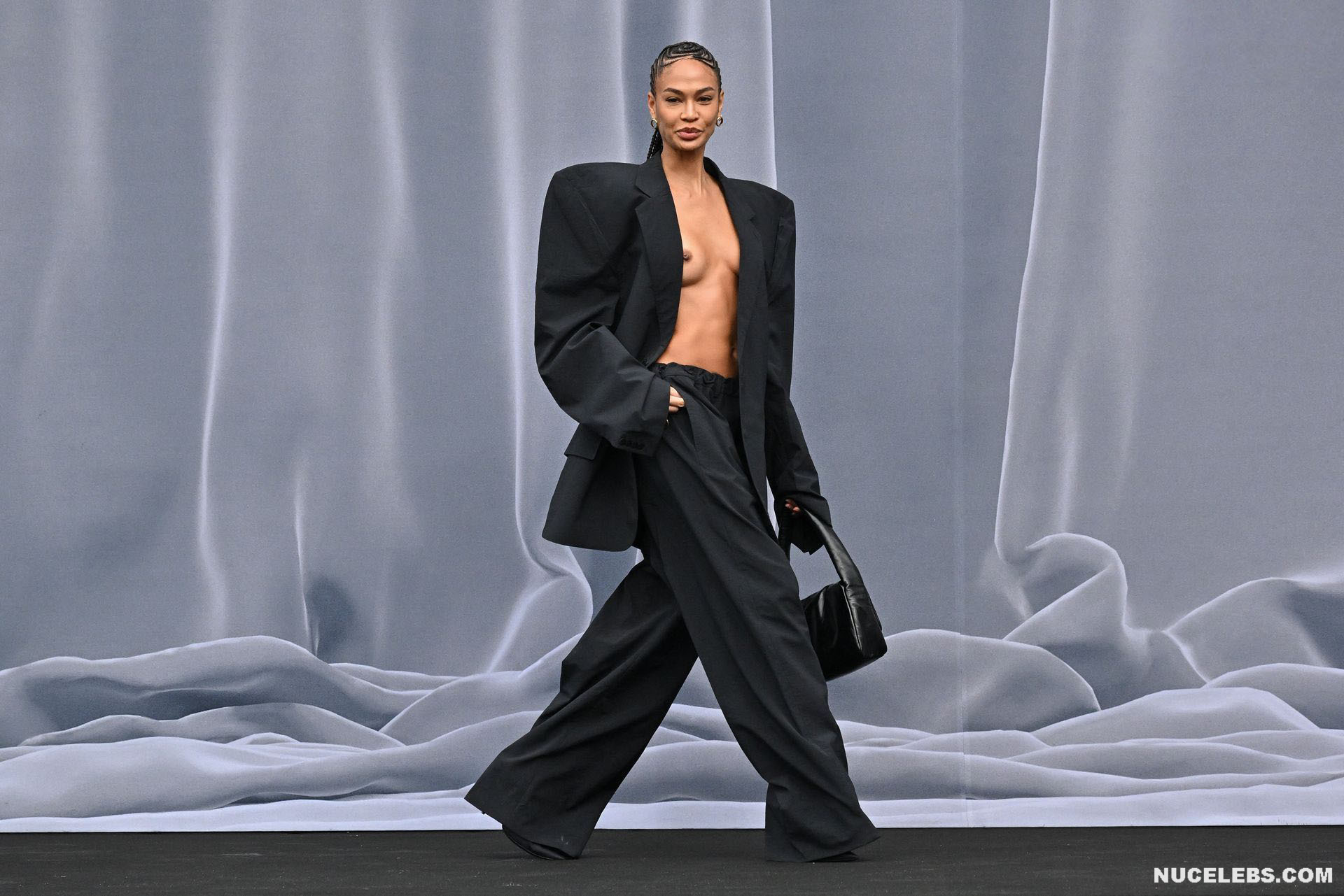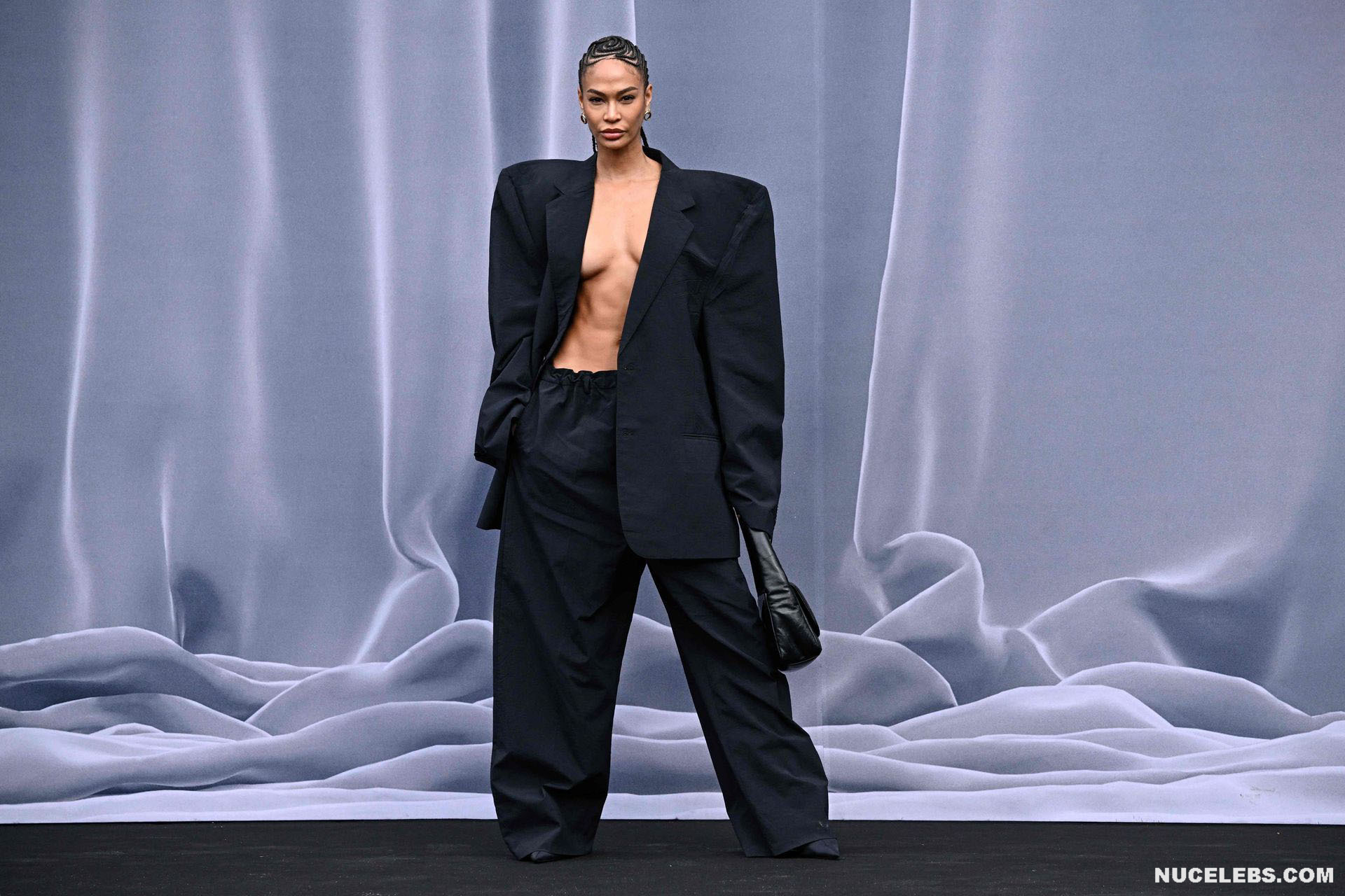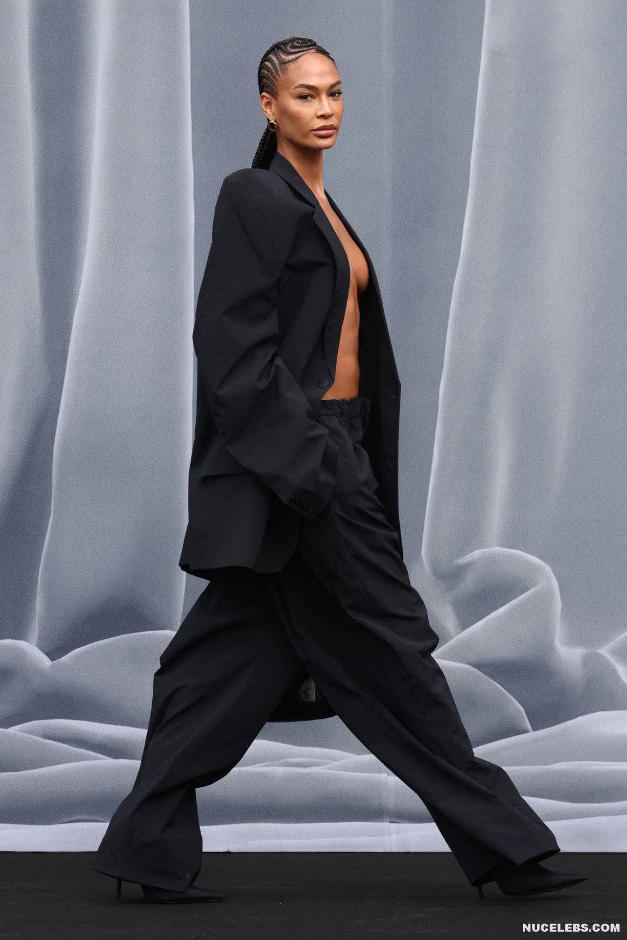 You won’t be able to take your eyes off Joan Smalls nude boobies that she flaunted during the show. This Puerto Rican model appeared in public in an oversized business suit. Her slender hips were hidden under black wide pants. But Joan Smalls nude tits with small nipples periodically peeked out from her unbuttoned jacket. And this undoubtedly brought the audience into ecstasy!