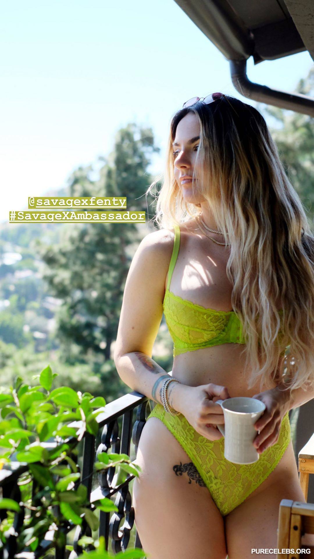 American singer Joanna Jojo Levesque loves to tease her fans, appearing in seductive almost nude outfits. So, this celebrity was happy to pose in a pink bra from which her awesome boobs almost jumped out. She also looked very hot in green lace underwear. And through her lace white bodysuit, Joanna Jojo Levesque nude tits with hard nipples were clearly visible. Oh, this girl is so naughty but so sexy!