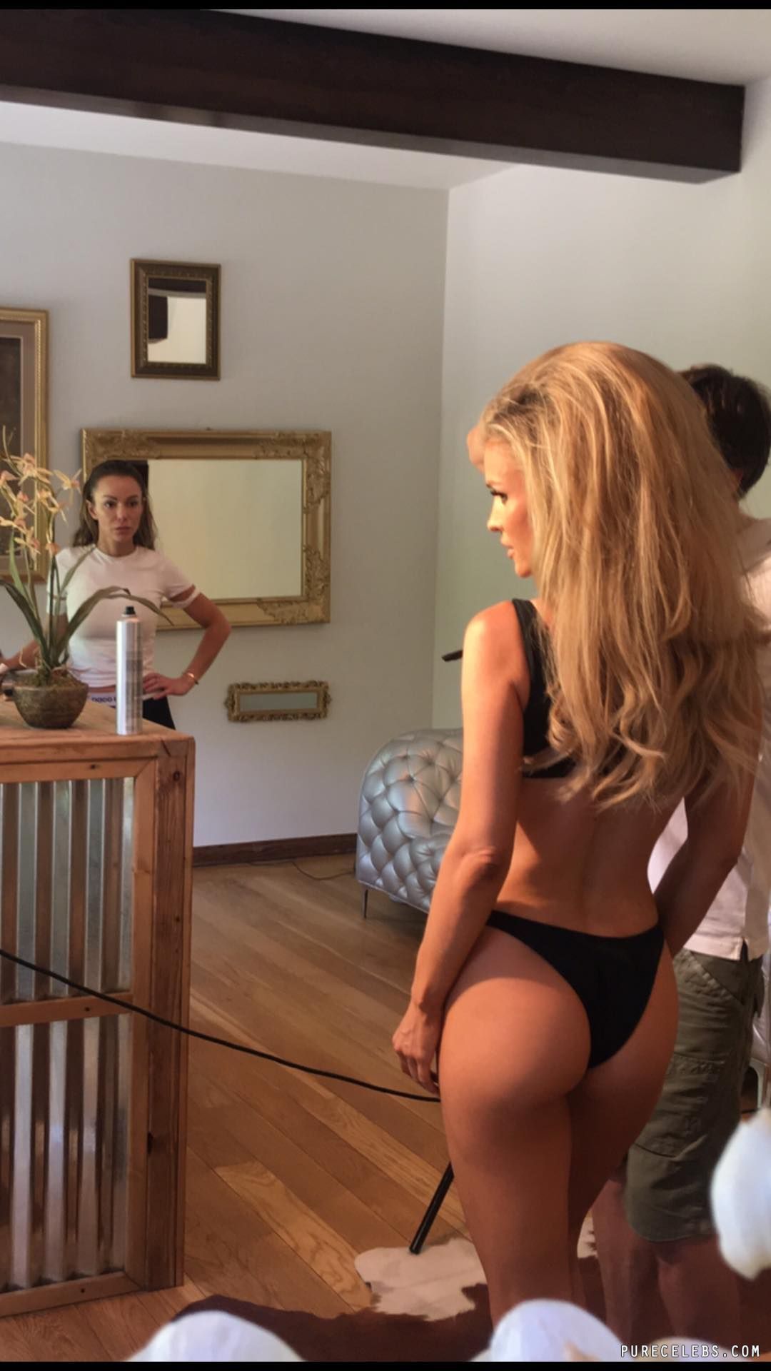 American model Joanna Krupa made a series of topless and lingerie pictures for Instagram. For example, this blonde posed in black sexy lingerie, turning her back to the camera and showing her awesome booty in small panties. Also, the celebrity posed in white panties, sitting on the bed. Joanna Krupa’s juicy boobies were nude and she tried to cover them with her hand.
