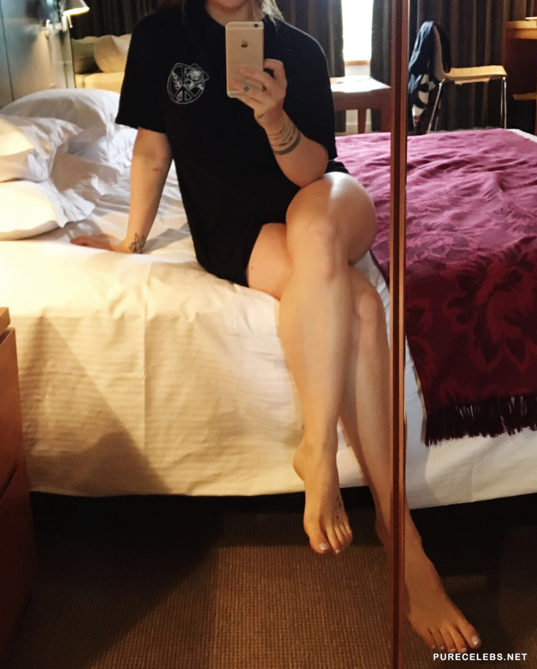 Celebrity singer JoJo Levesque surprised her fans with some steamy selfies on the Instagram account. The hot 29 year old brunette photographed herself in her apartment wearing only a black T shirt. Her delightful thighs are in the forefront of these sexy selfies. Sexy JoJo even climbed on top of her bed just to give her fans a better view of her attractive long legs.