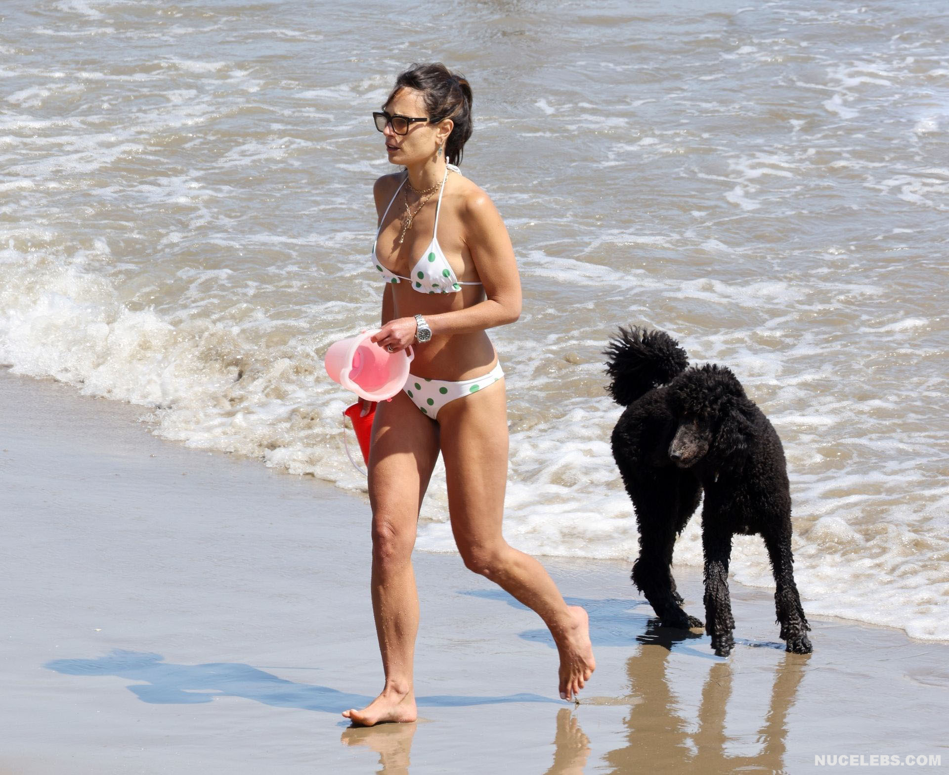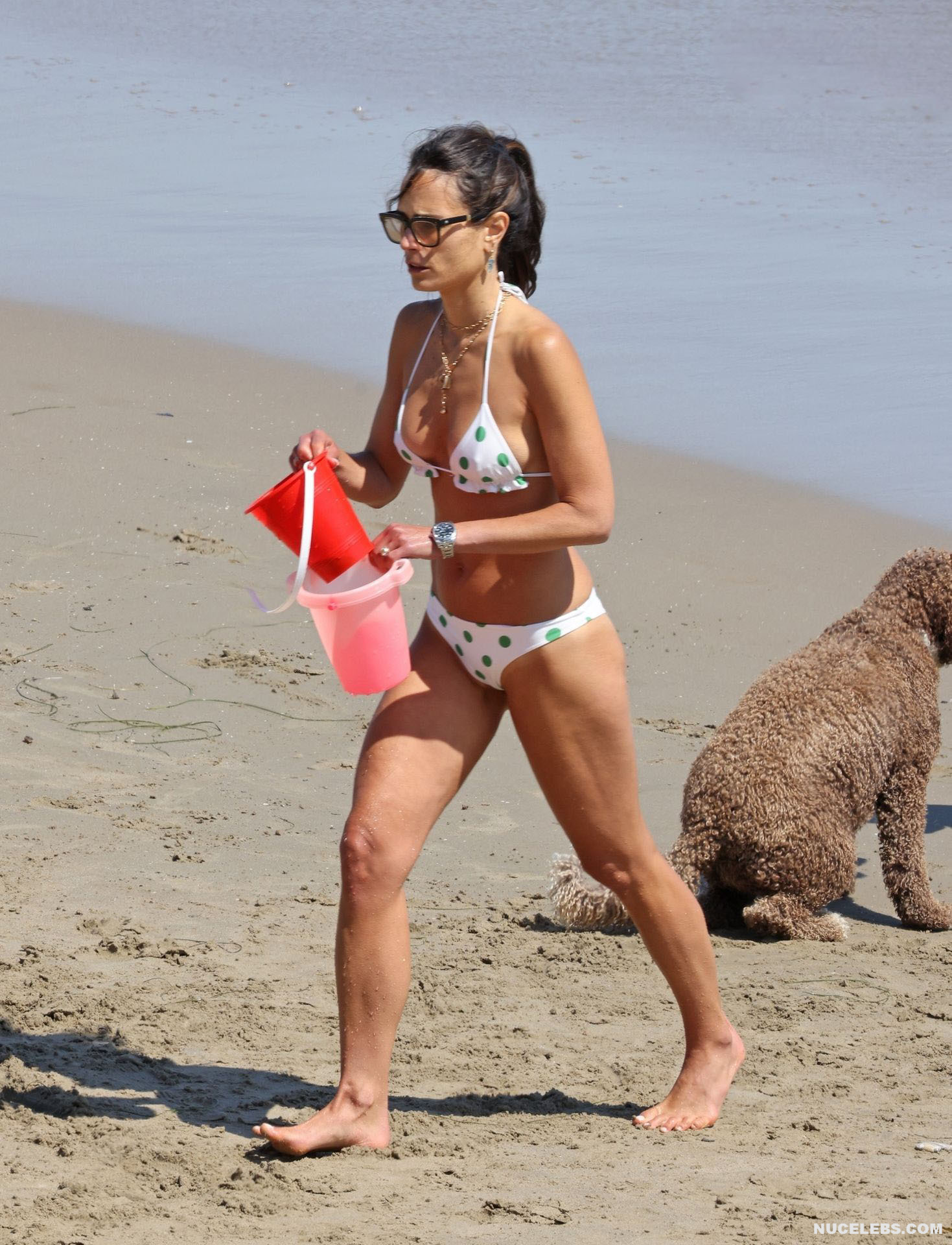 Dive into the world of glamor on the beach as Jordana Brewster dons bikinis that exude confidence and elegance. It seems that this American actress is already half a step away from sunbathing on the beach naked. At least Jordana Brewster’s nude boobs are covered with very small pieces of cloth. However, her pussy is also hidden under small thin panties, highlighting her awesome cameltoe.
