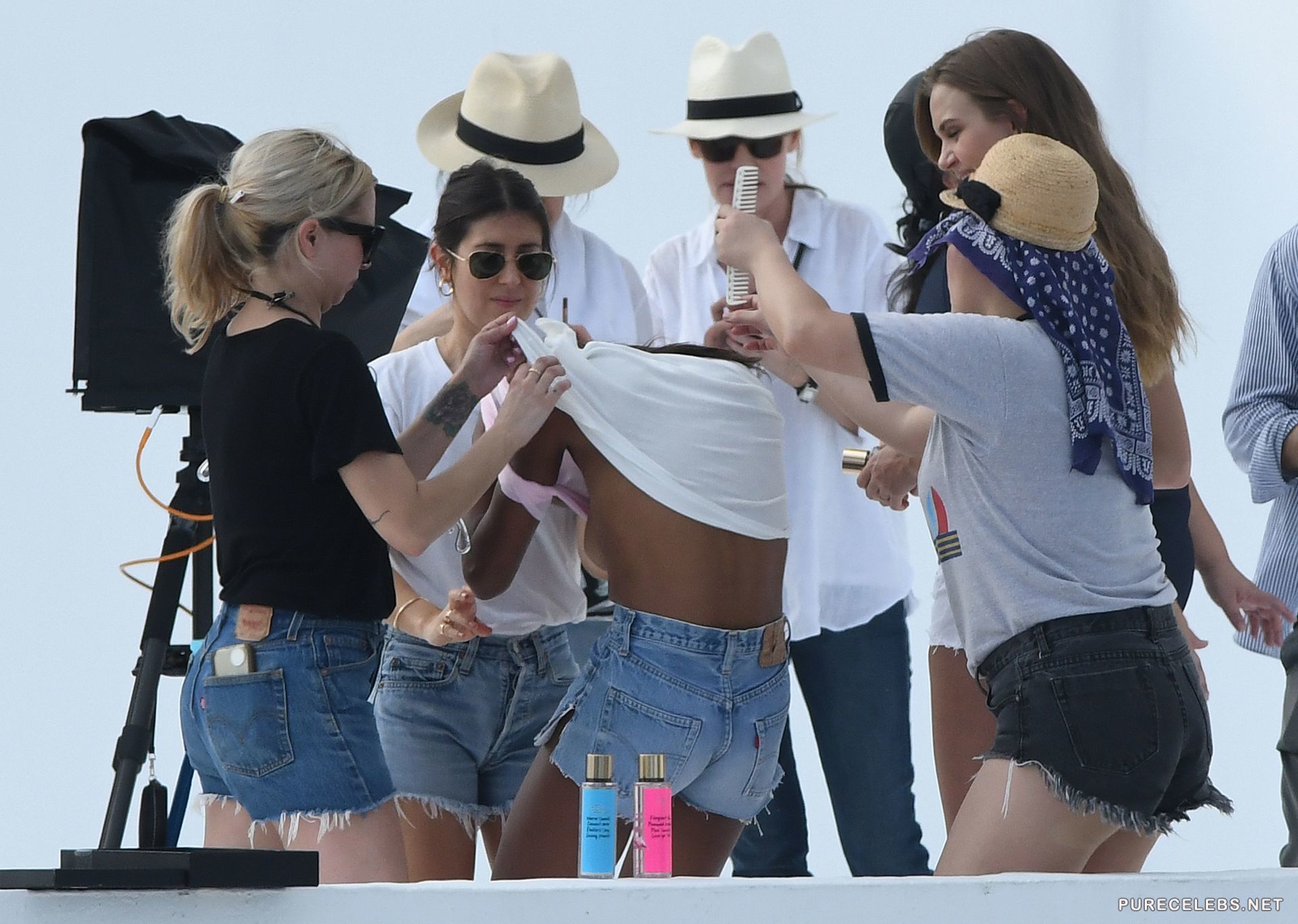 Gorgeous models, Josephine Skriver & Jasmine Tookes are always busy, which is not surprising if you know how they look like. Hot babes like that make a perfect black and white setting for all fans of interracial combinations. On days like this, when they are wearing see- through tops with no bras under for the photo-shooing and then even changing in front of everyone, we appreciate paparazzi work the most.